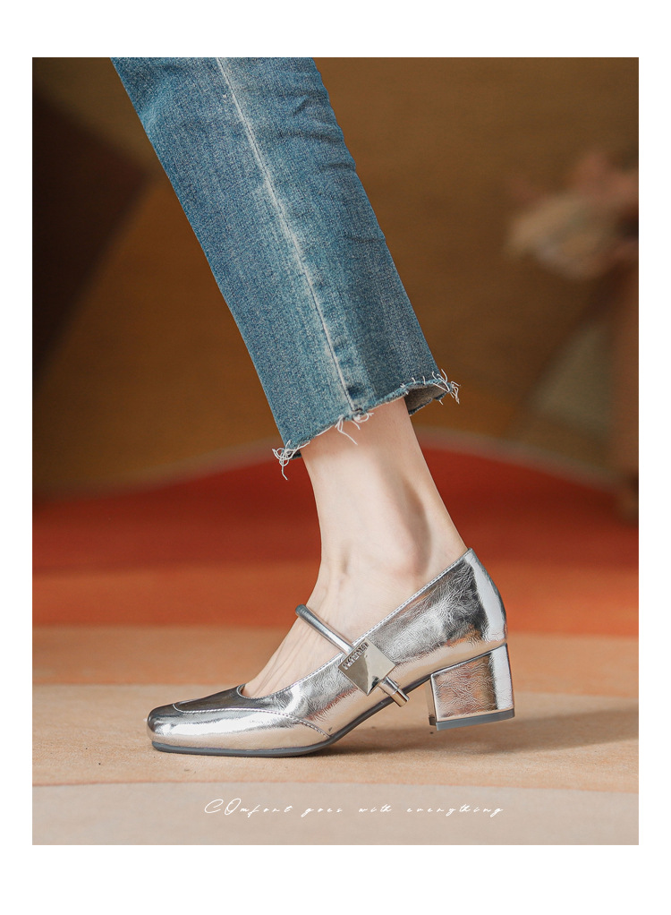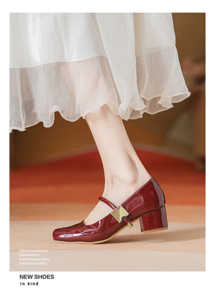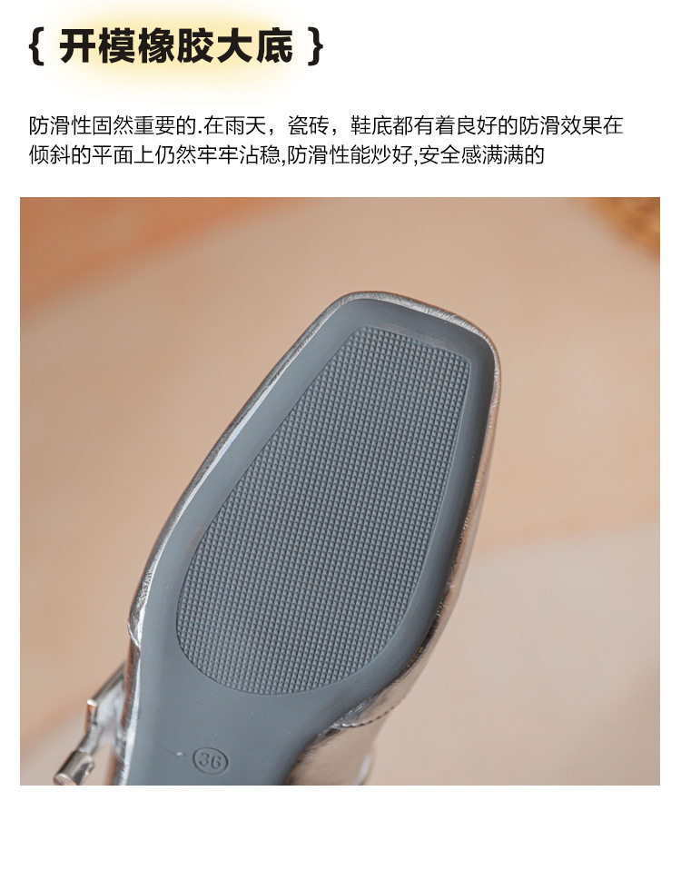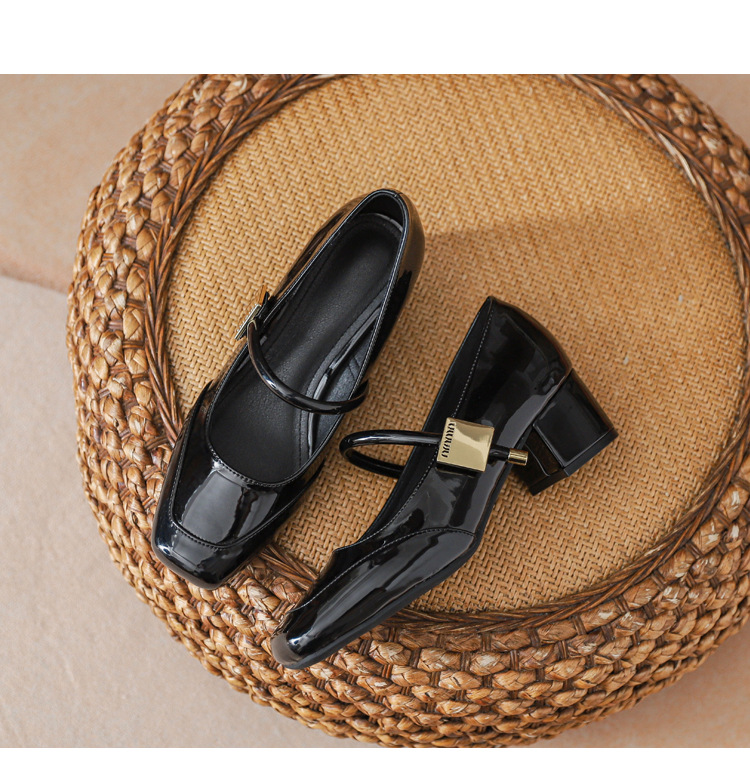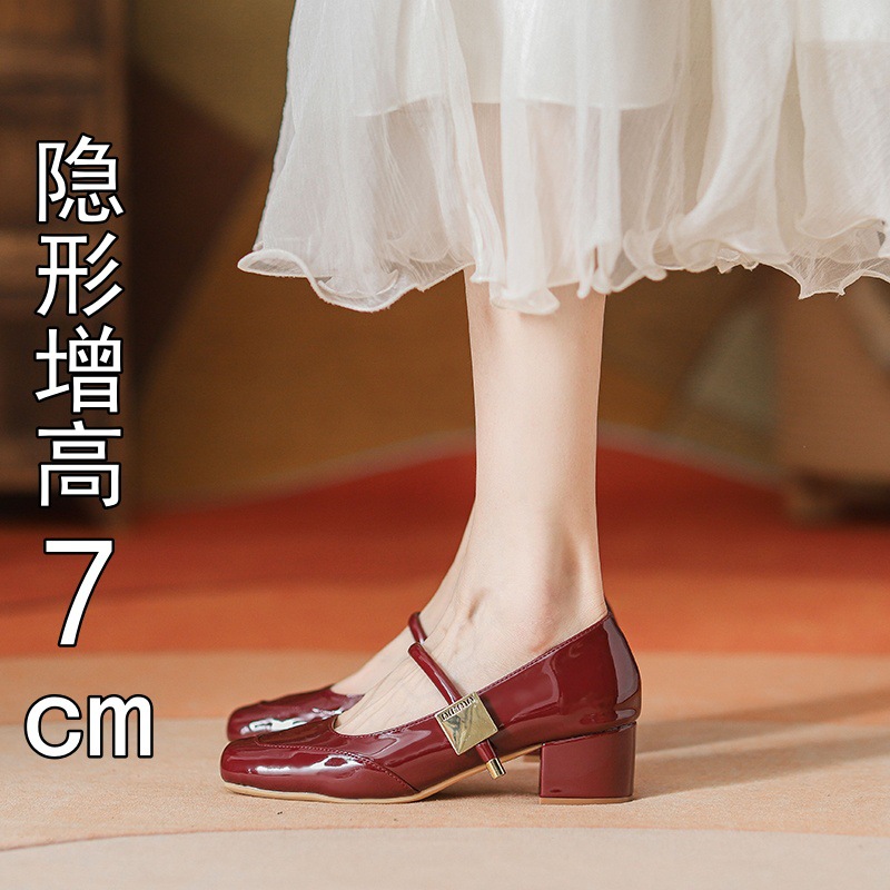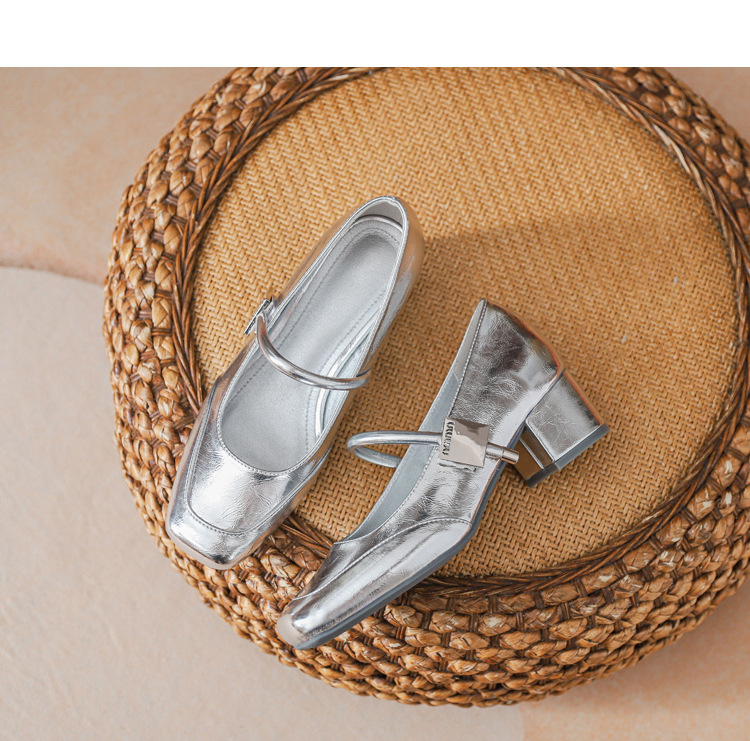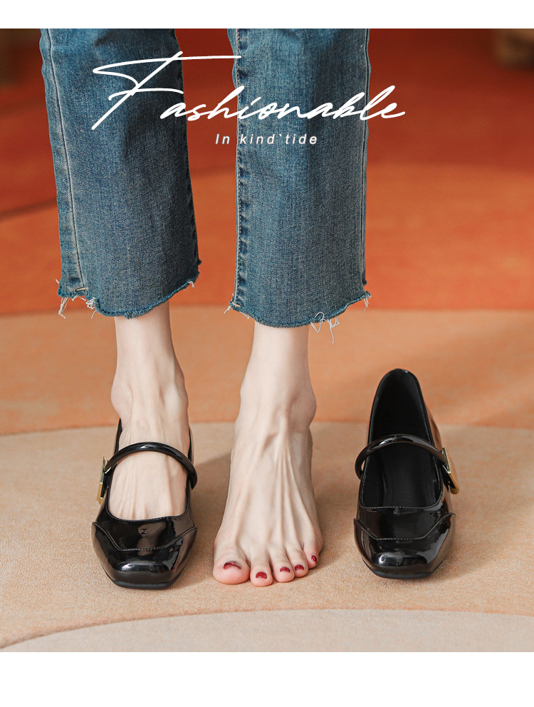 프렌치 스타일 하이힐 부드러운 가죽 얕은 굽 여성용 슈즈, 스퀘어토 슬립온, 2026년 신상, 키 작은 여성용 키높이 굽 두꺼운 굽 슈즈