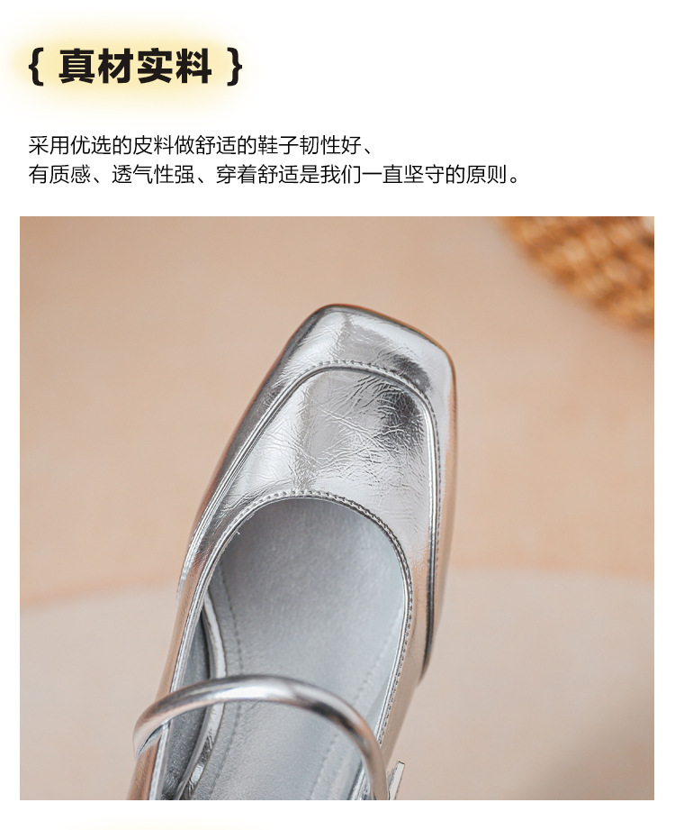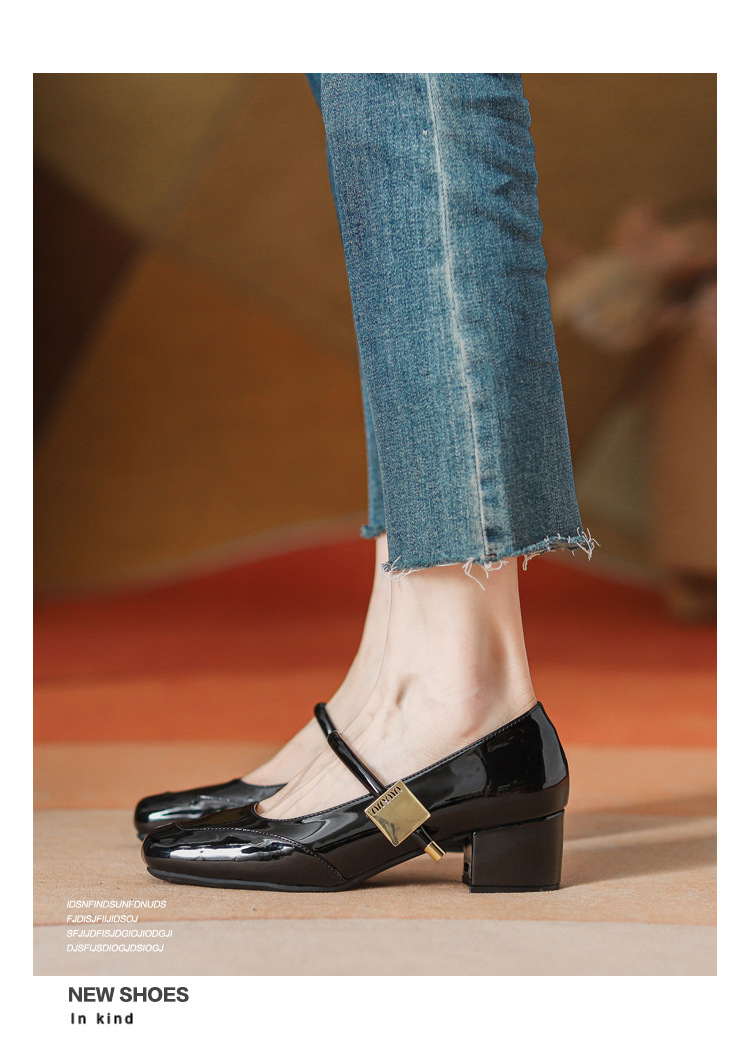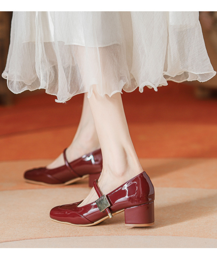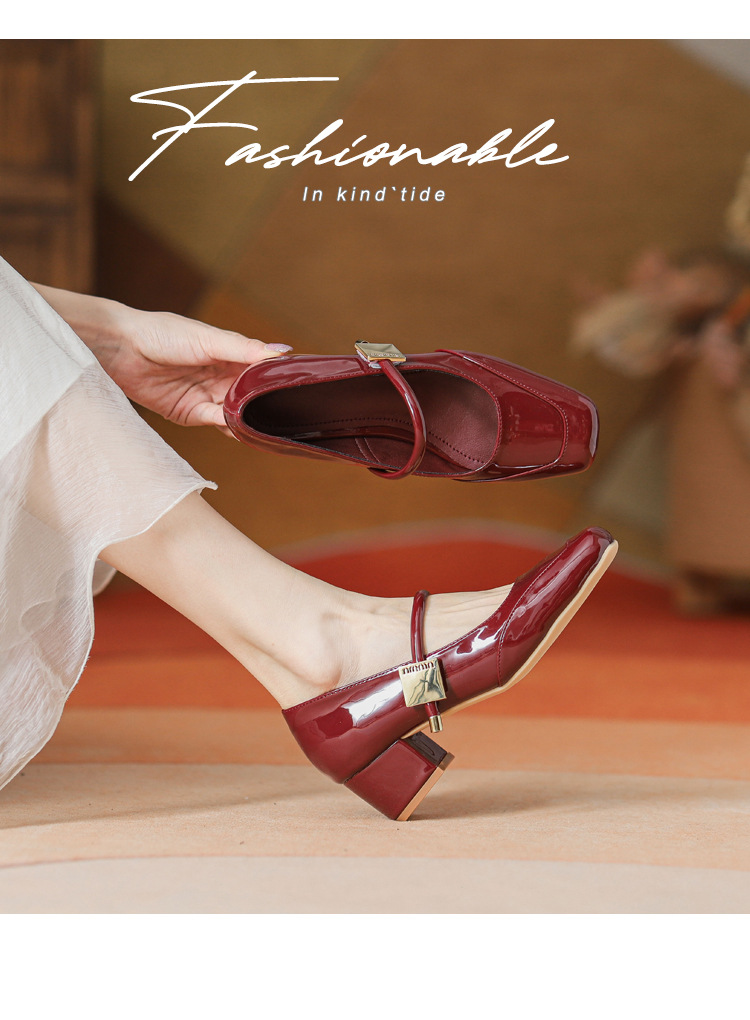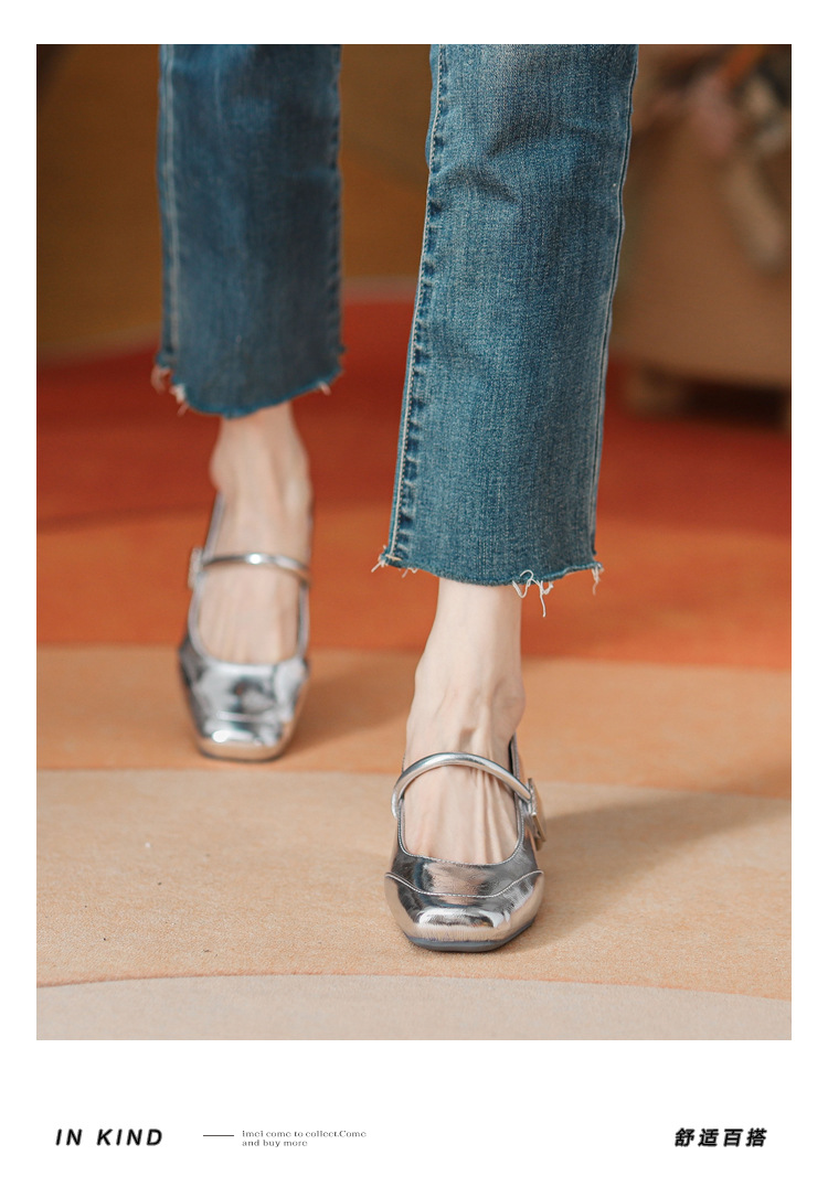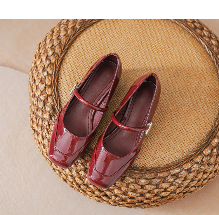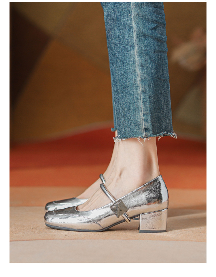 프렌치 스타일 하이힐 부드러운 가죽 얕은 굽 여성용 슈즈, 스퀘어토 슬립온, 2026년 신상, 키 작은 여성용 키높이 굽 두꺼운 굽 슈즈