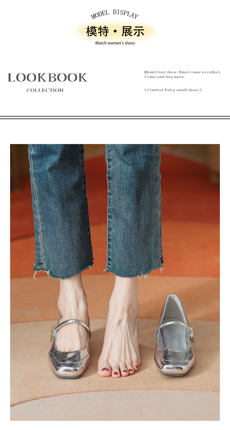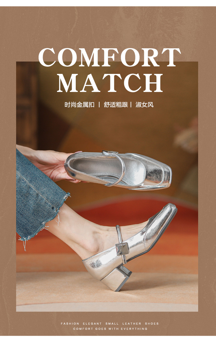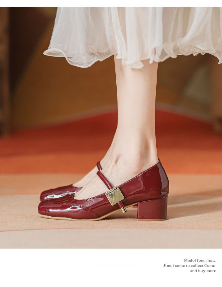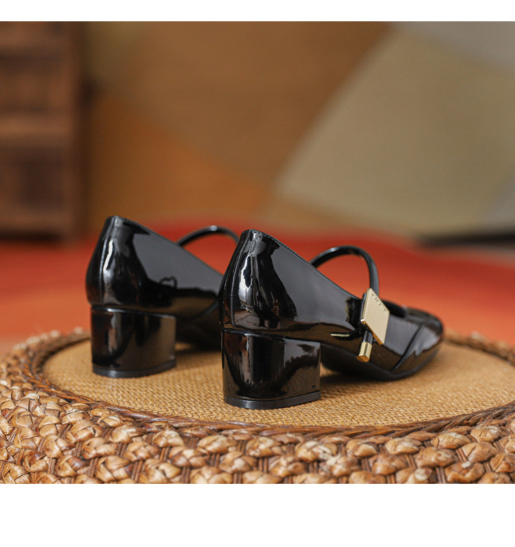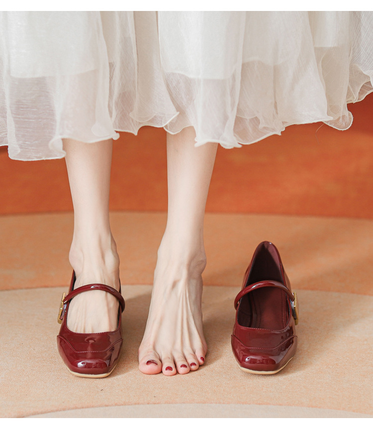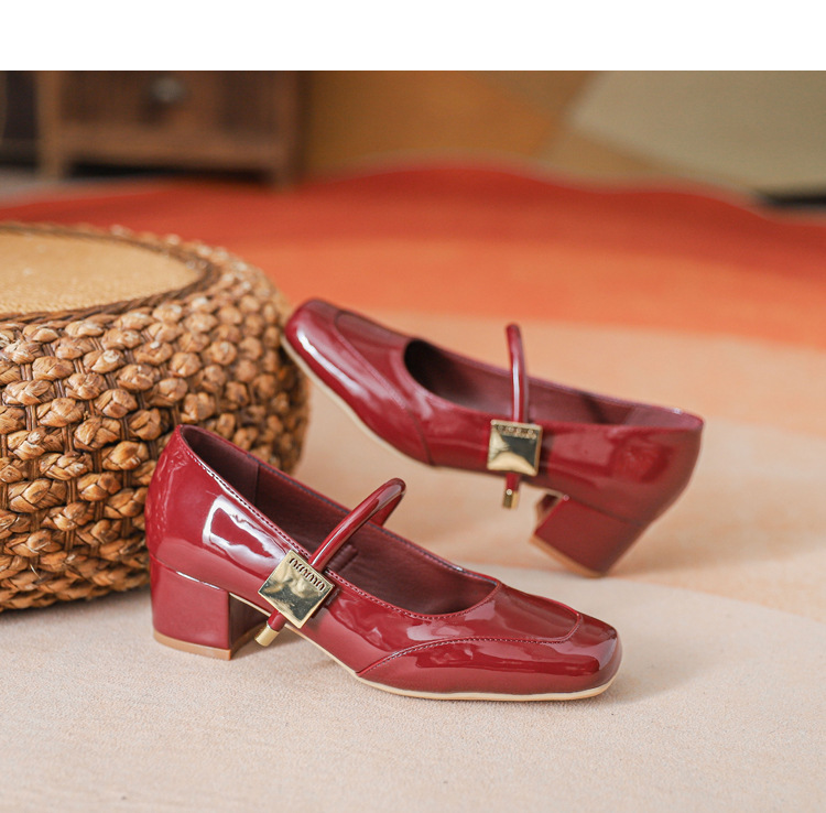 프렌치 스타일 하이힐 부드러운 가죽 얕은 굽 여성용 슈즈, 스퀘어토 슬립온, 2026년 신상, 키 작은 여성용 키높이 굽 두꺼운 굽 슈즈