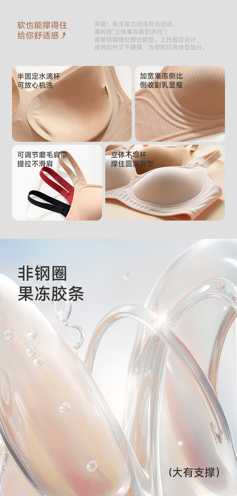 Traceless 속옷 여름 얇은 여성의 작은 가슴이 비어 있지 않은 컵 우유 수집 젤리 스트립 소프트 지원 테두리가없는 브래지어