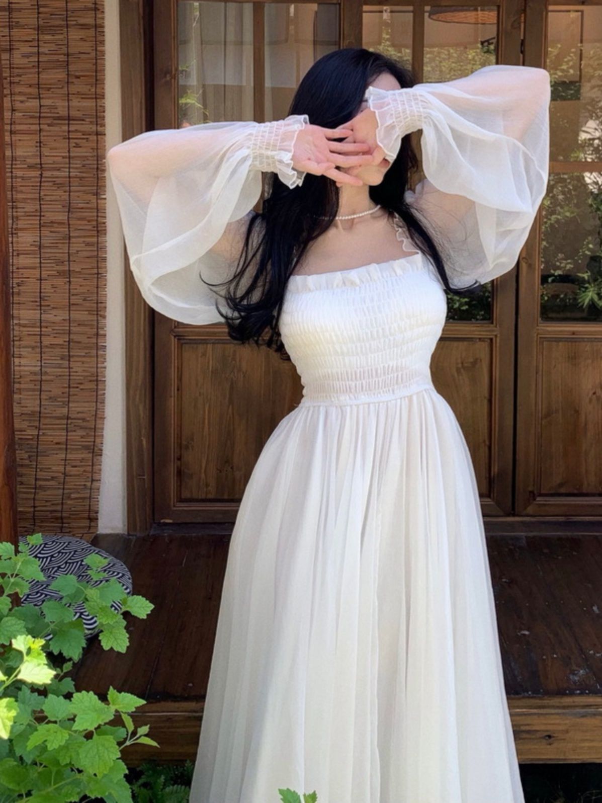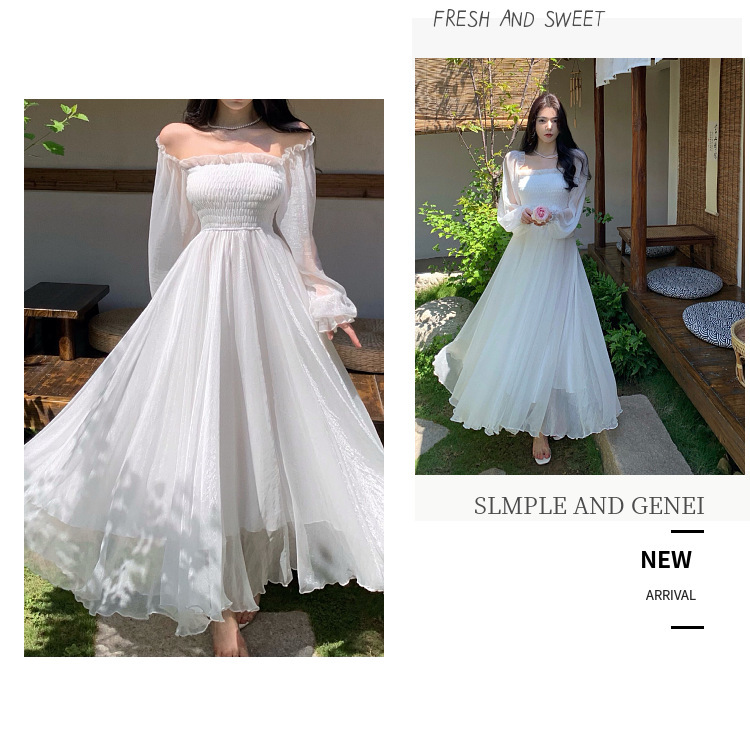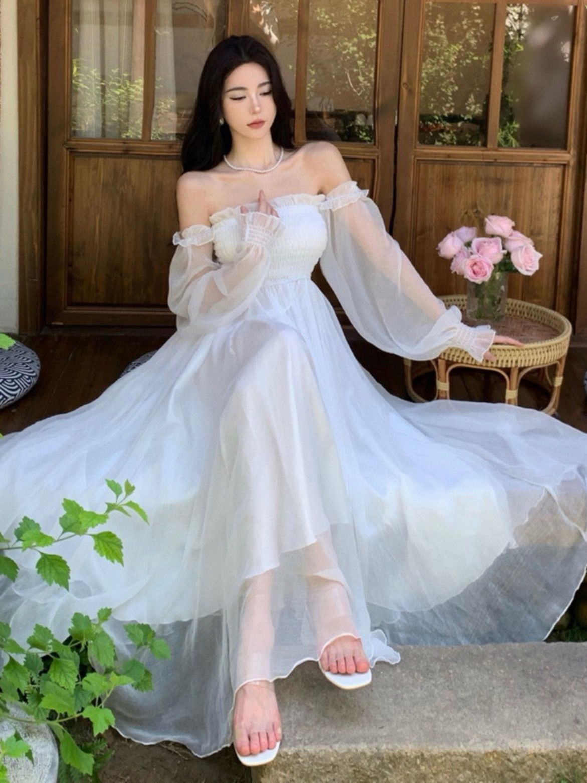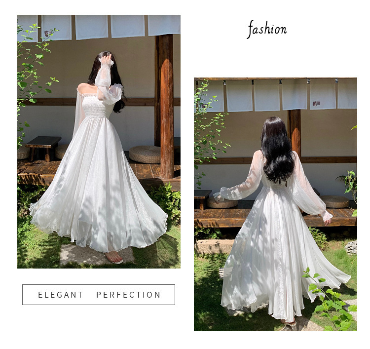 2026년 신상 삼야 해변 휴가용 드레스, 흰색 고급 쉬폰 비치 드레스, 롱 드레스