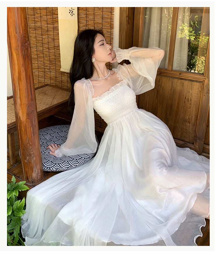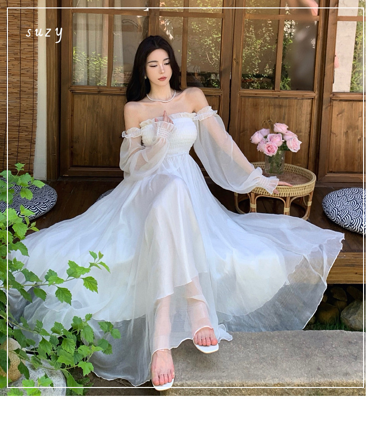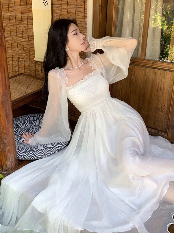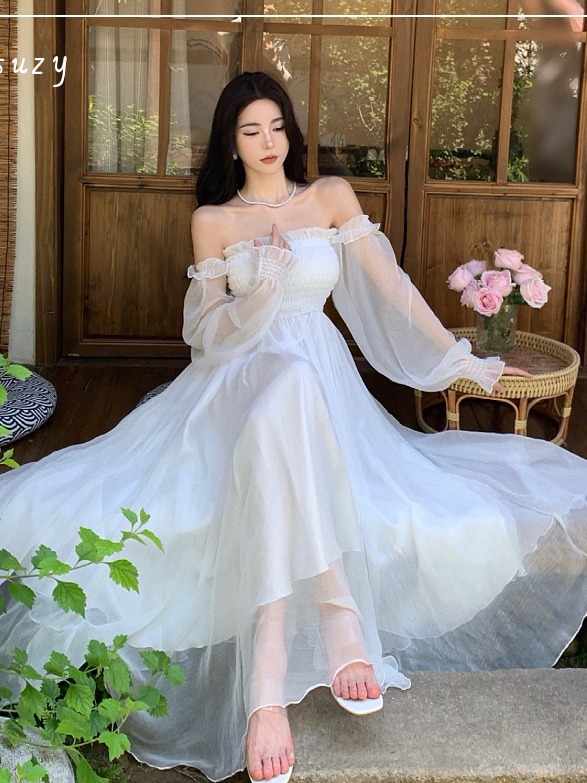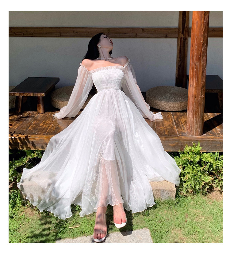 2026년 신상 삼야 해변 휴가용 드레스, 흰색 고급 쉬폰 비치 드레스, 롱 드레스