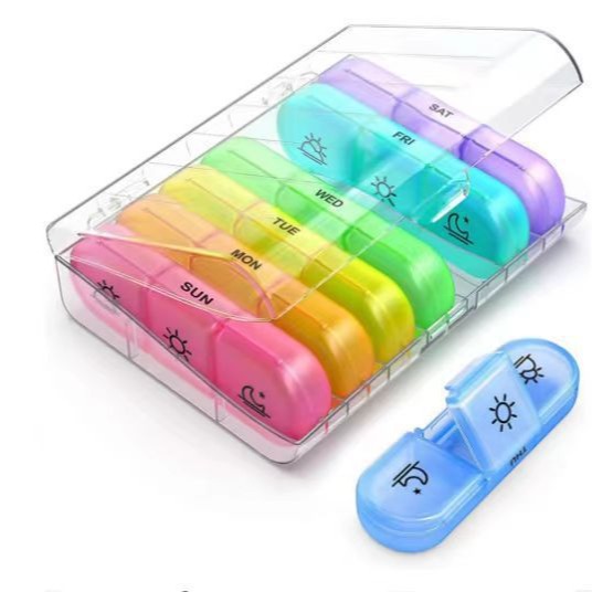 아마존 신형 약통 휴대용 21칸 무지개색 보관함 방습 방진 밀봉 약품 분류 보관