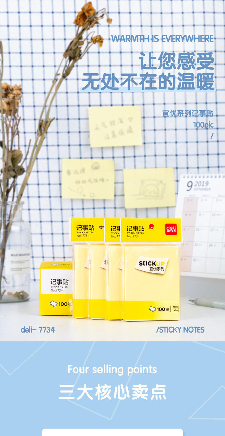 Deli 7734 Post-it Office Supplies 76*101mm 긴급 포스트잇 노트 포스트잇 노트