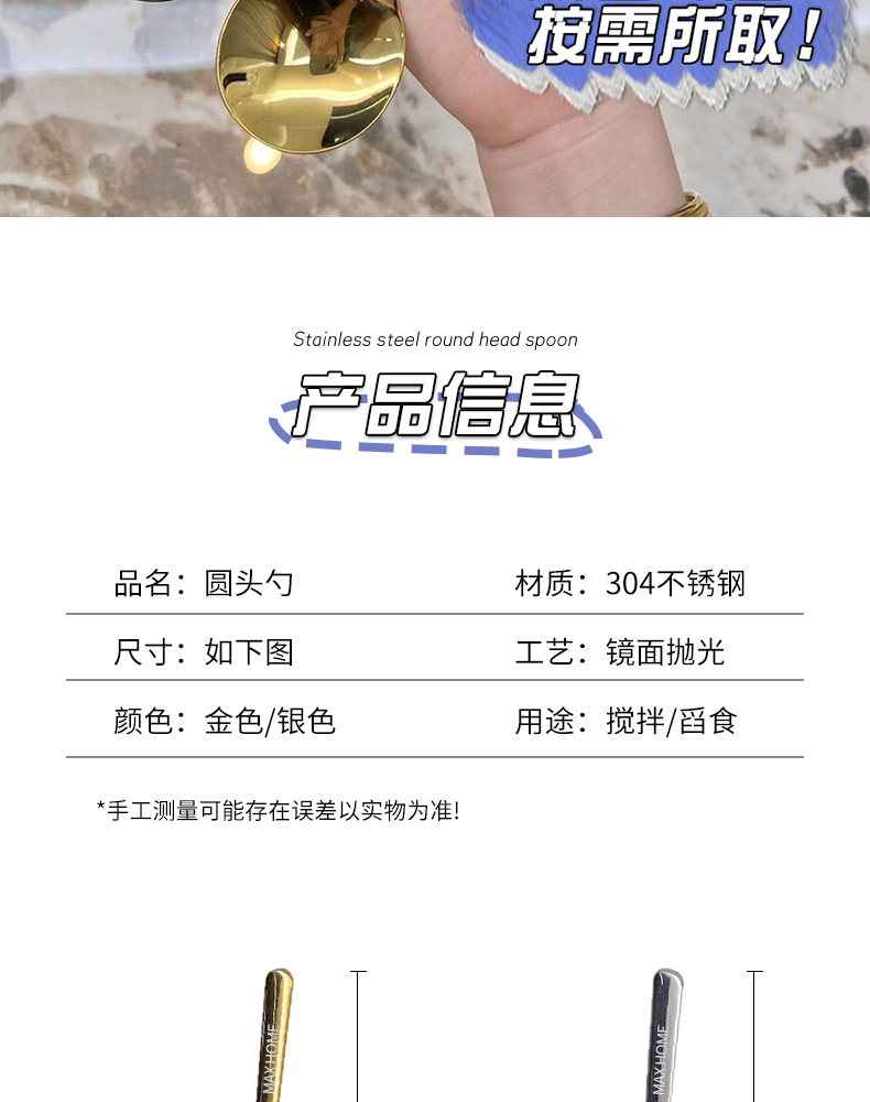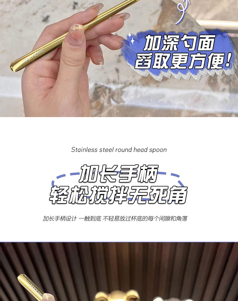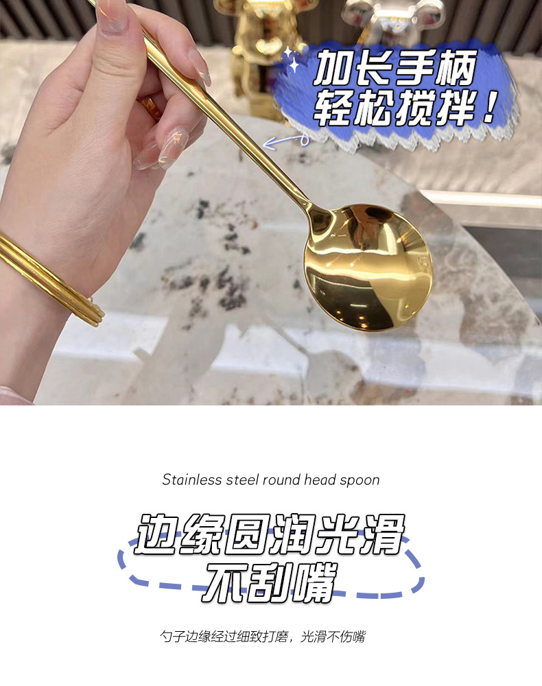 긴 손잡이 둥근 머리 숟가락 [로즈 골드] 4