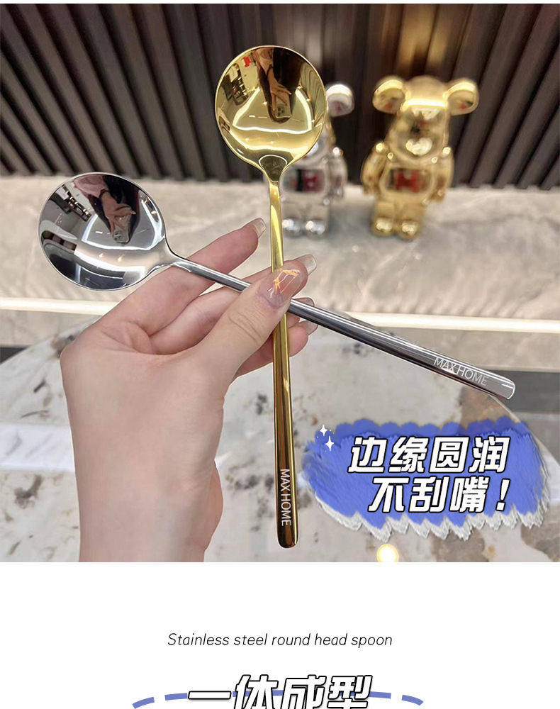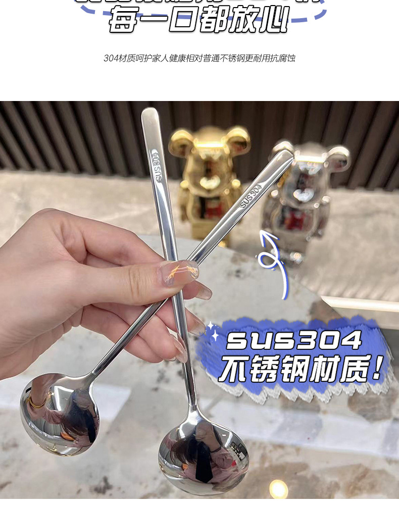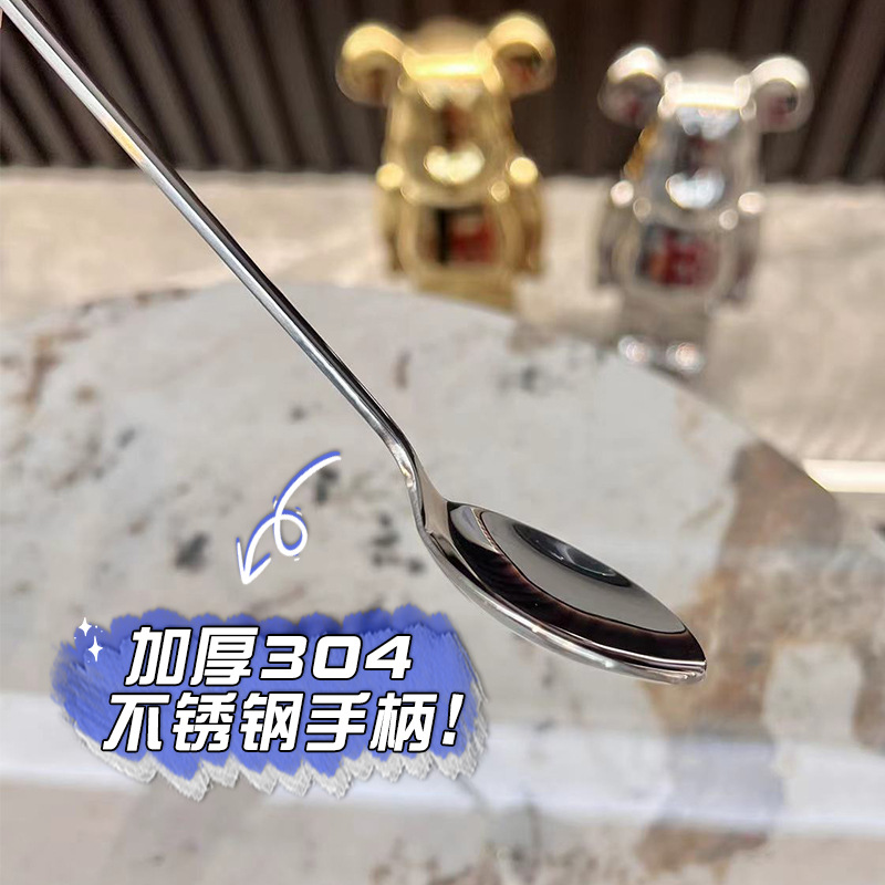304 스테인레스 스틸 스푼 가정용 롱 핸들 고급 스푼 절묘한 먹는 숟가락 음식 등급 심화 수프 스푼