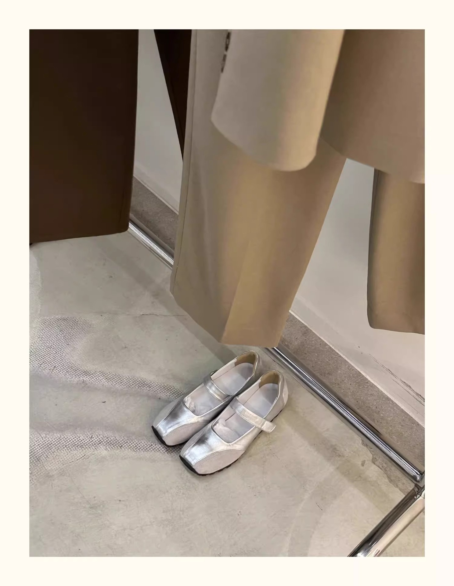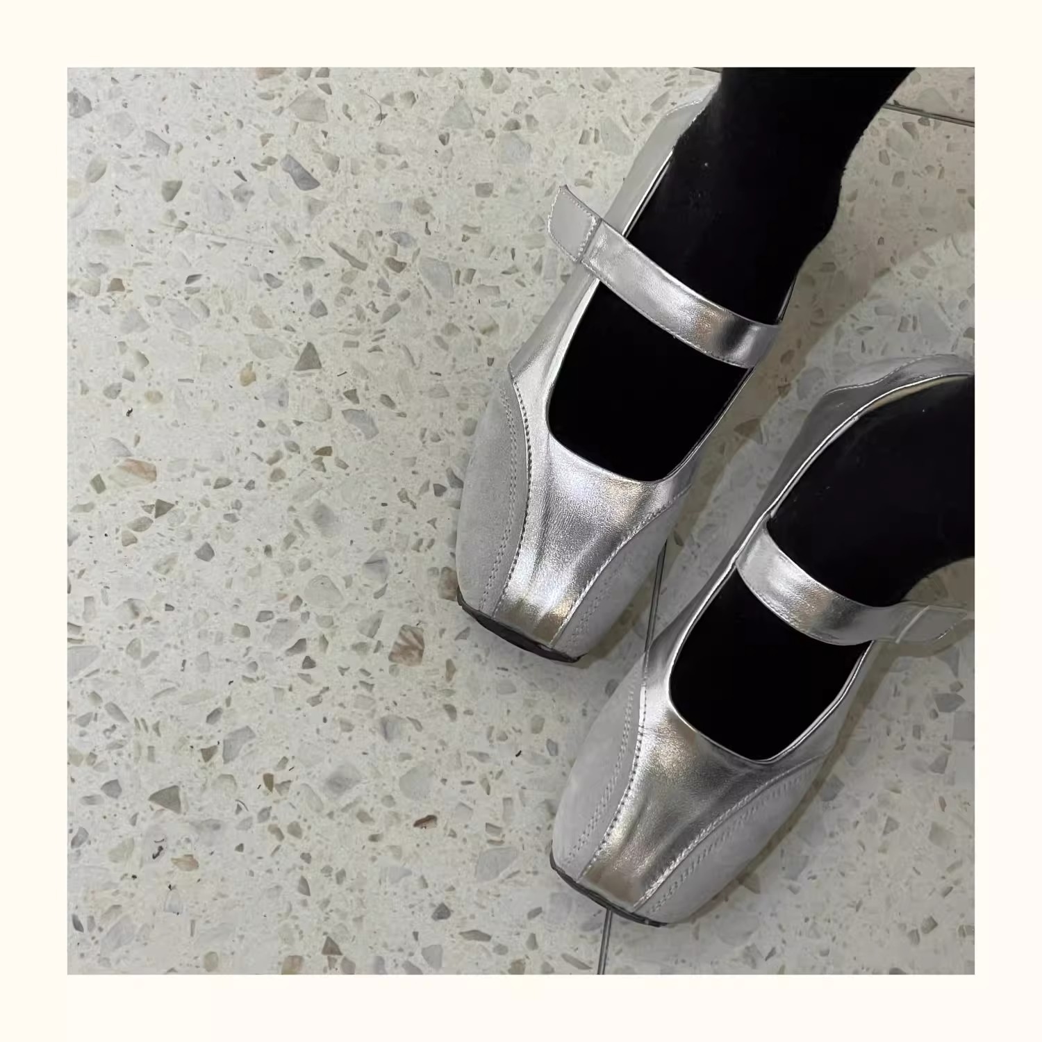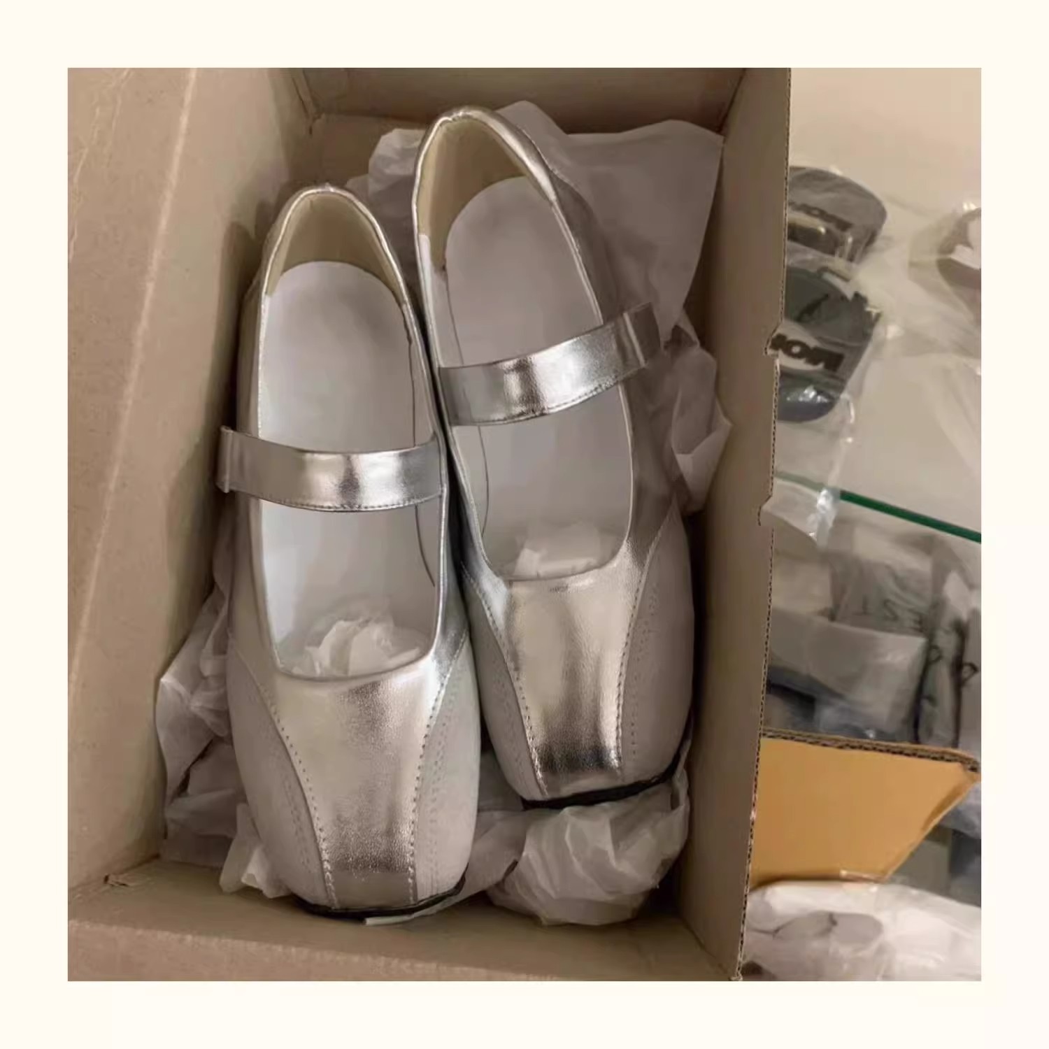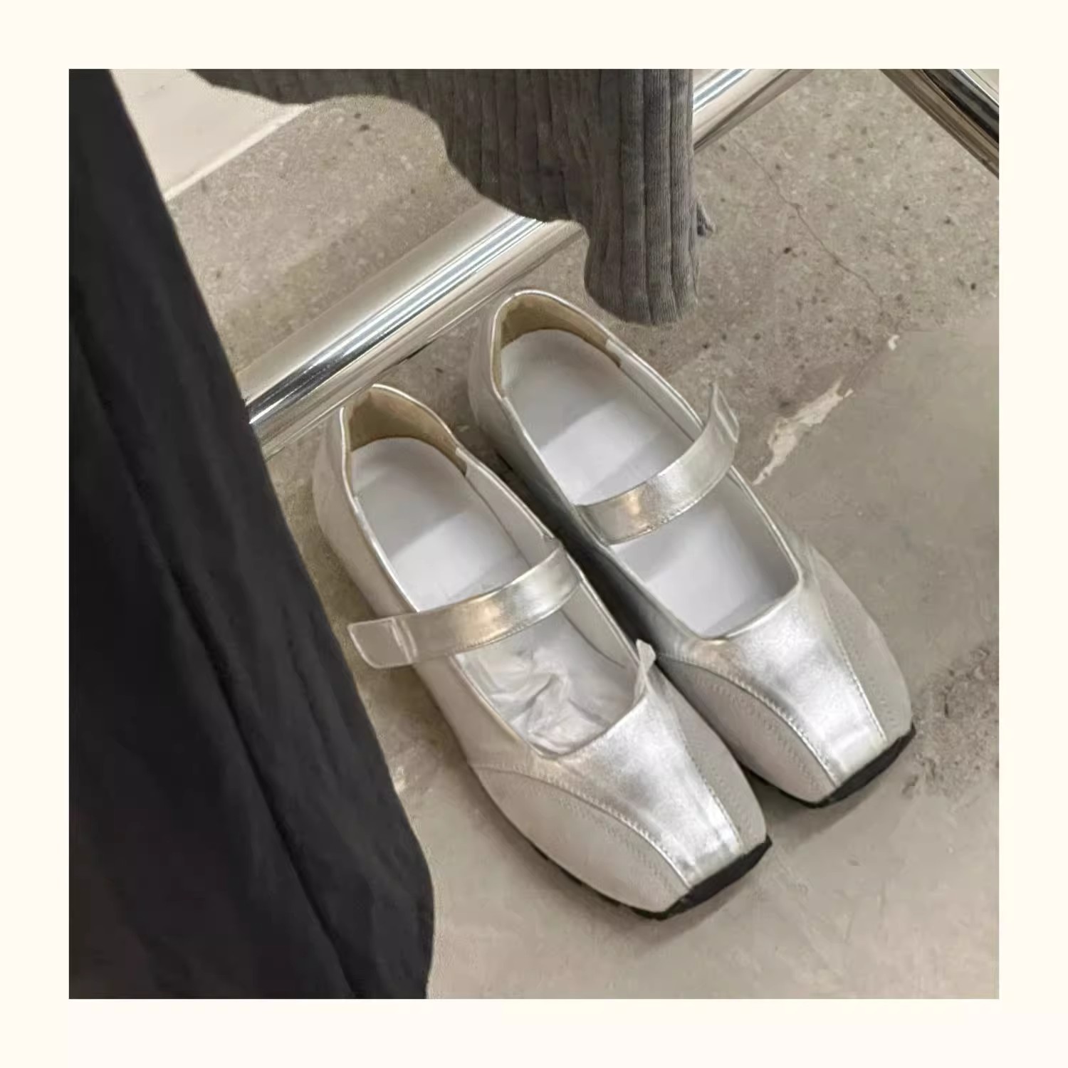 재고 있음 즉시 배송! 프렌치 스타일 스퀘어토 플랫 메리제인 여성화 2026년 신상 천연가죽 다용도 벨크로 슈즈