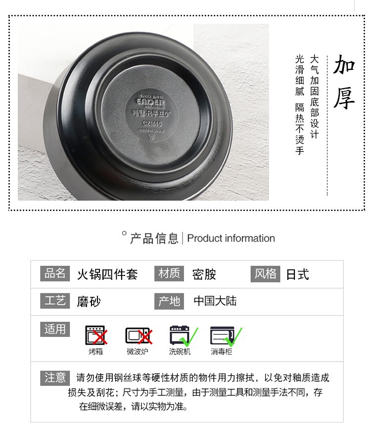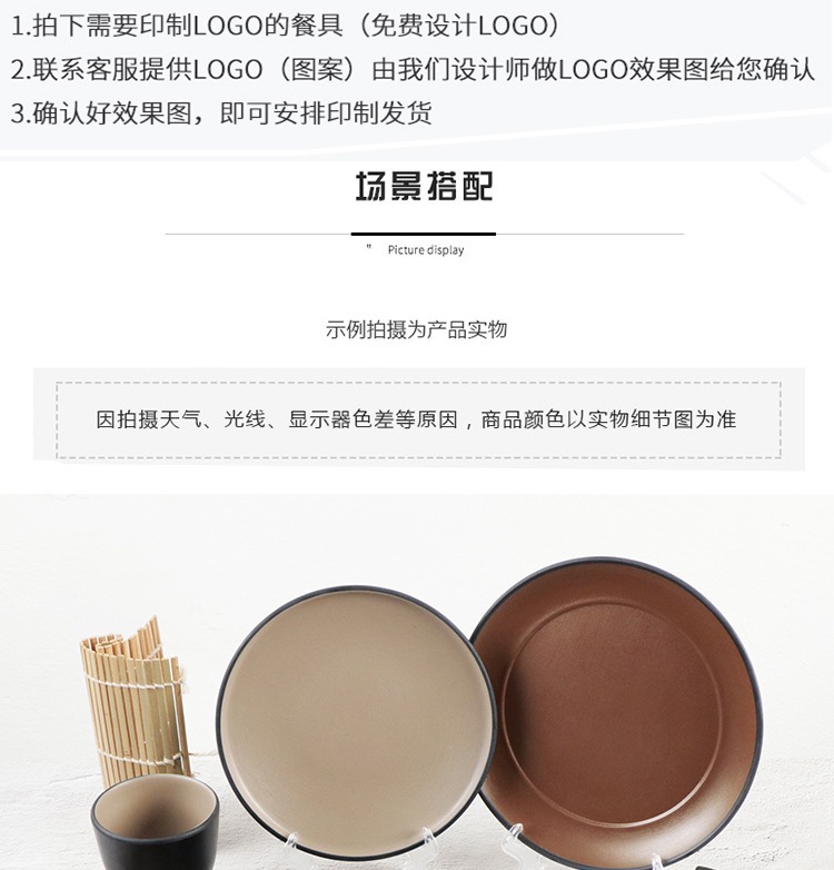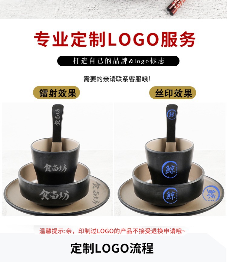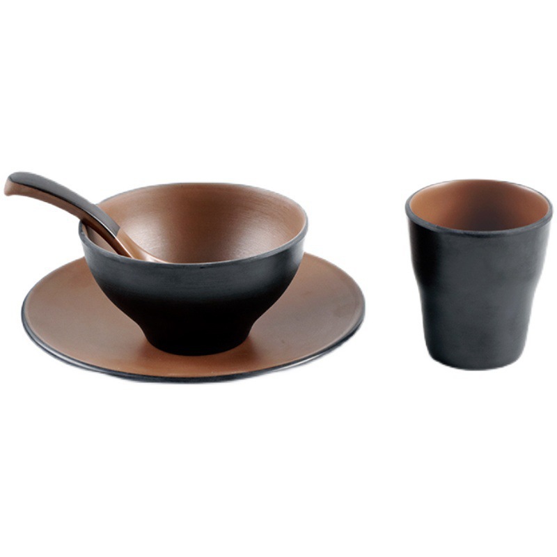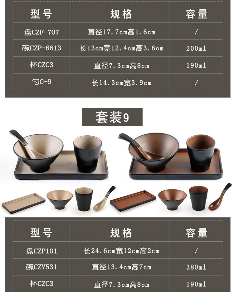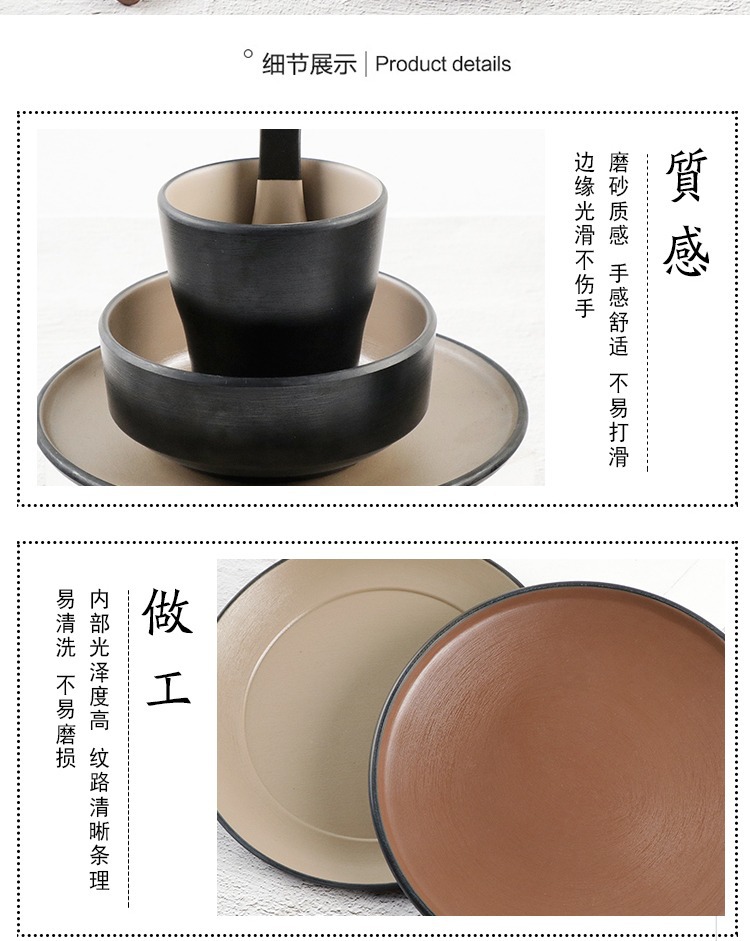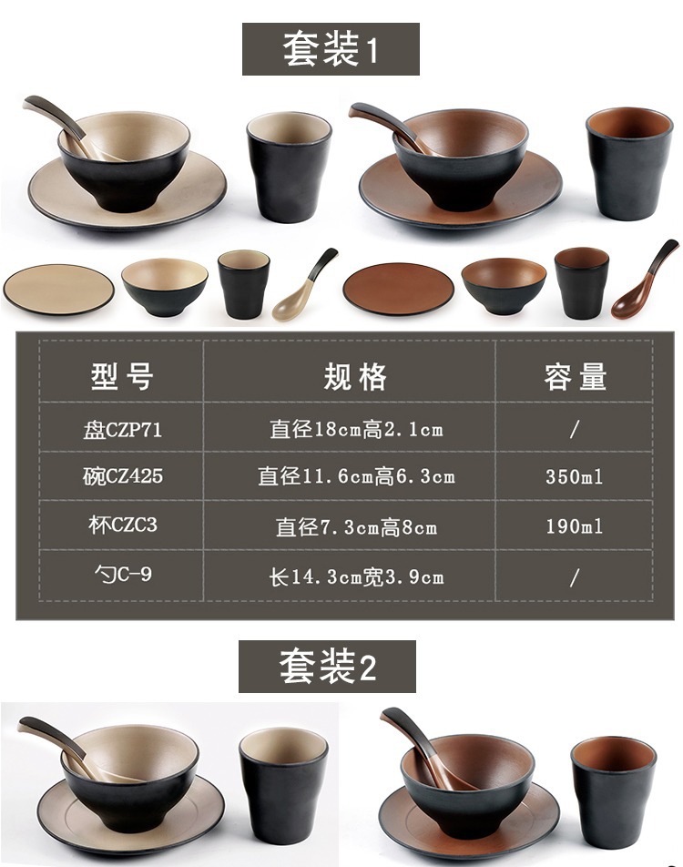 레트로 일본식 4 피스 세트 레스토랑 핫팟 식기 멜라민 모방 도자기 플레이트 보울 컵 스푼 세트 상업