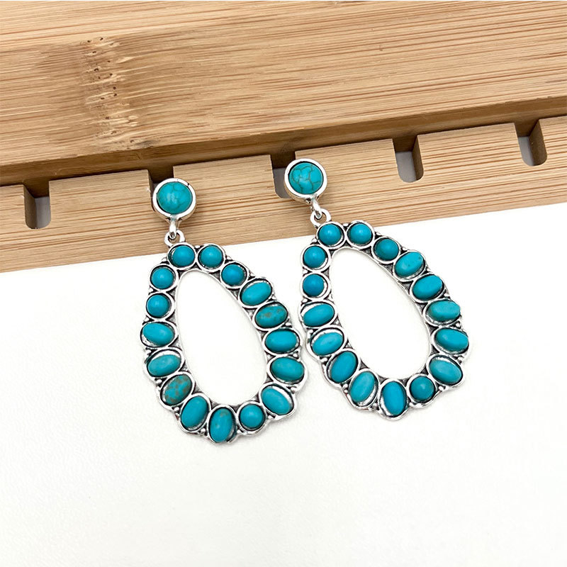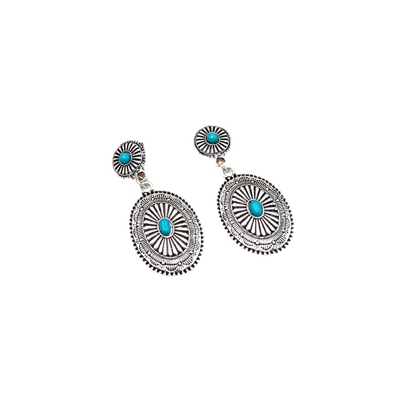 유럽과 미국의 국경 간 청록색 귀걸이 세트 여성 빈티지 보헤미안 올 매치 틈새 패션 민족 스타일 귀걸이