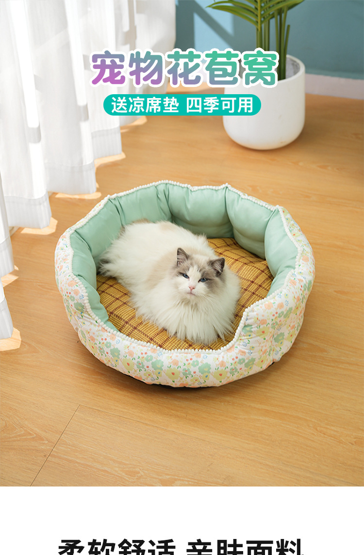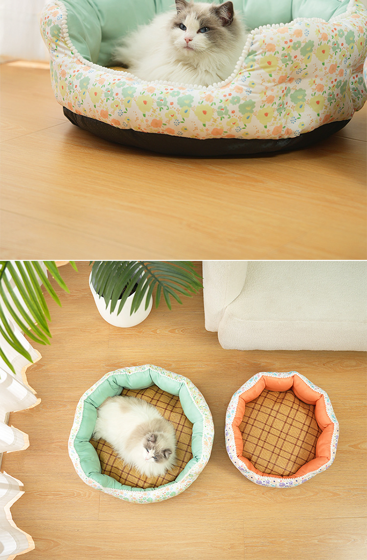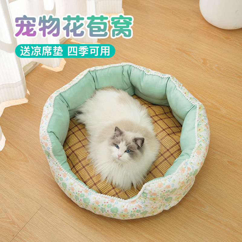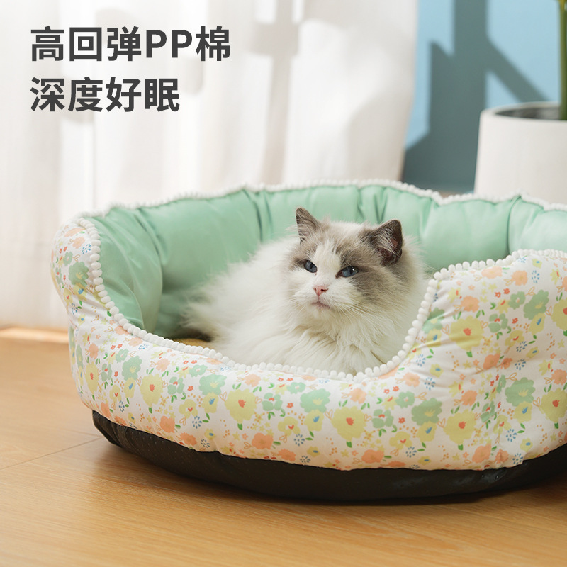 공주풍 고양이 침대 사계절 따뜻한 매트 깊은 수면 고양이 강아지 침대 애완동물 침대 용품 쿨링 기술