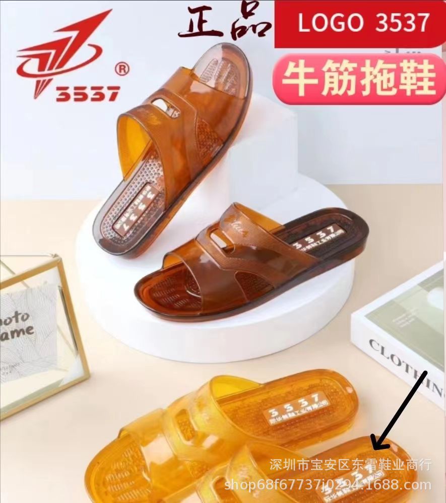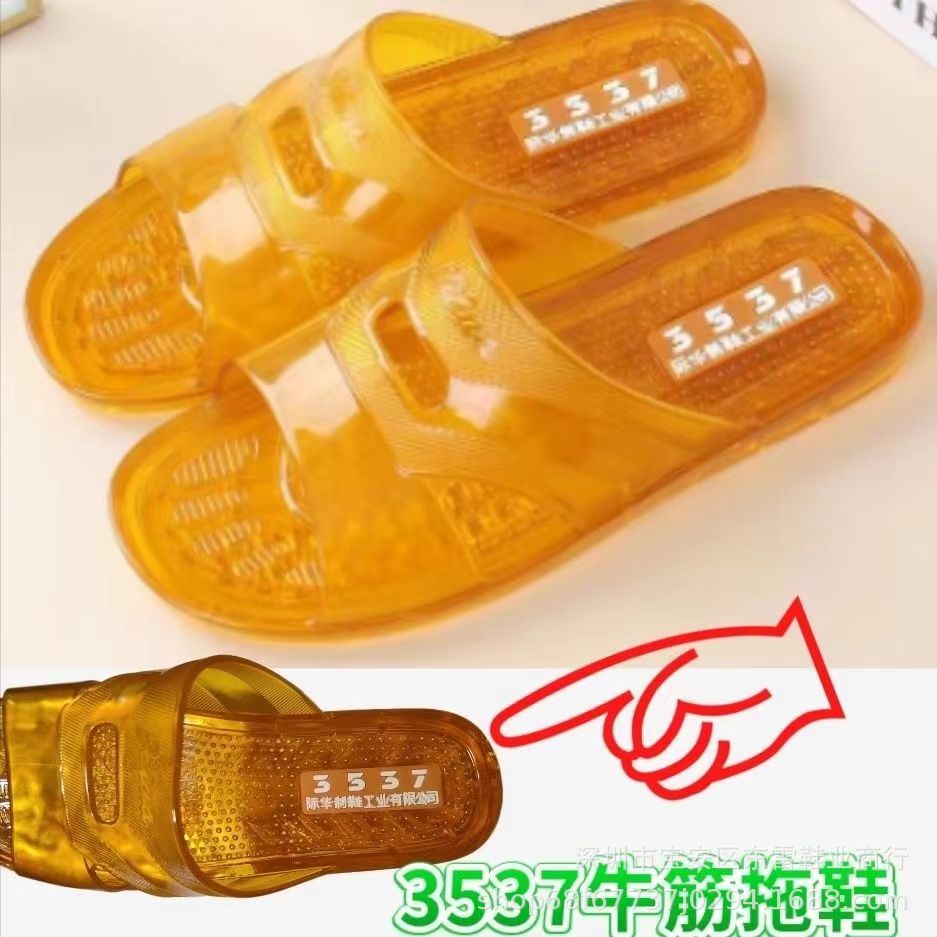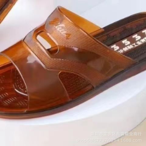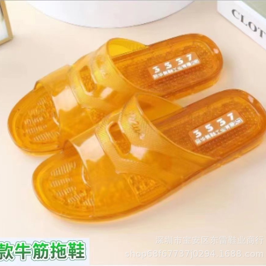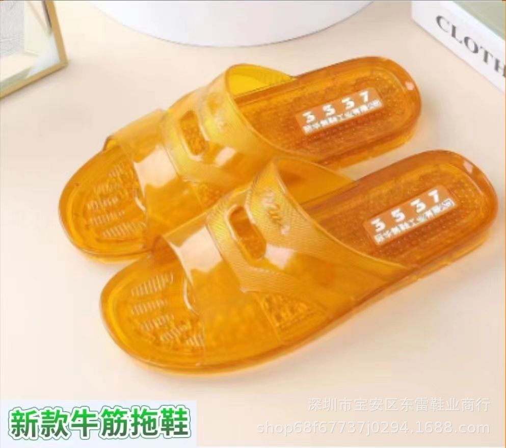 3537 플라스틱 힘줄 슬리퍼 남성용 미끄럼 방지 고무 신발 부드러운 젤리 욕실 내마모성 탈취제 크리스탈 샌들