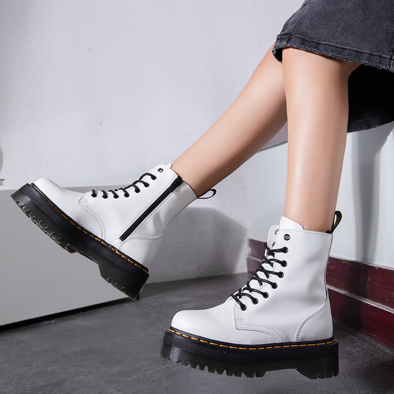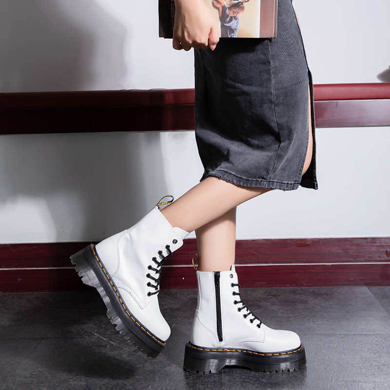 국경을 넘는 새로운 여성 부츠 8 홀 dr 두꺼운 바닥 마틴 부츠 사이드 지퍼 유럽과 미국 패션 소가죽 부츠 자동차 스티칭