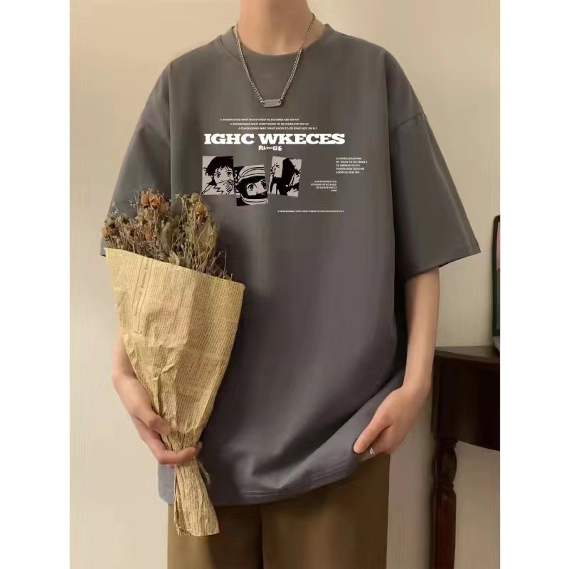다크 그레이 만화 그림 짧은 소매 230 그램