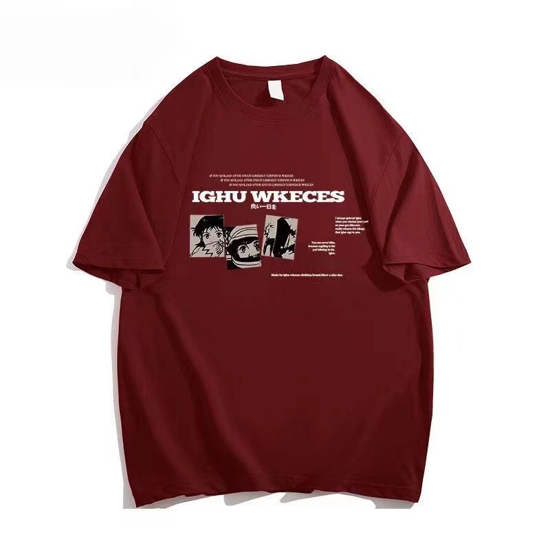버건디 만화 그림 짧은 소매 230 그램