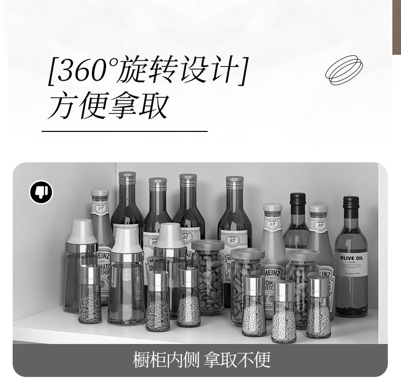 주방 회전 조미료 저장 랙 카운터 탑 가정용 다기능 오일, 소금, 소스 및 식초 조미료 보관 랙