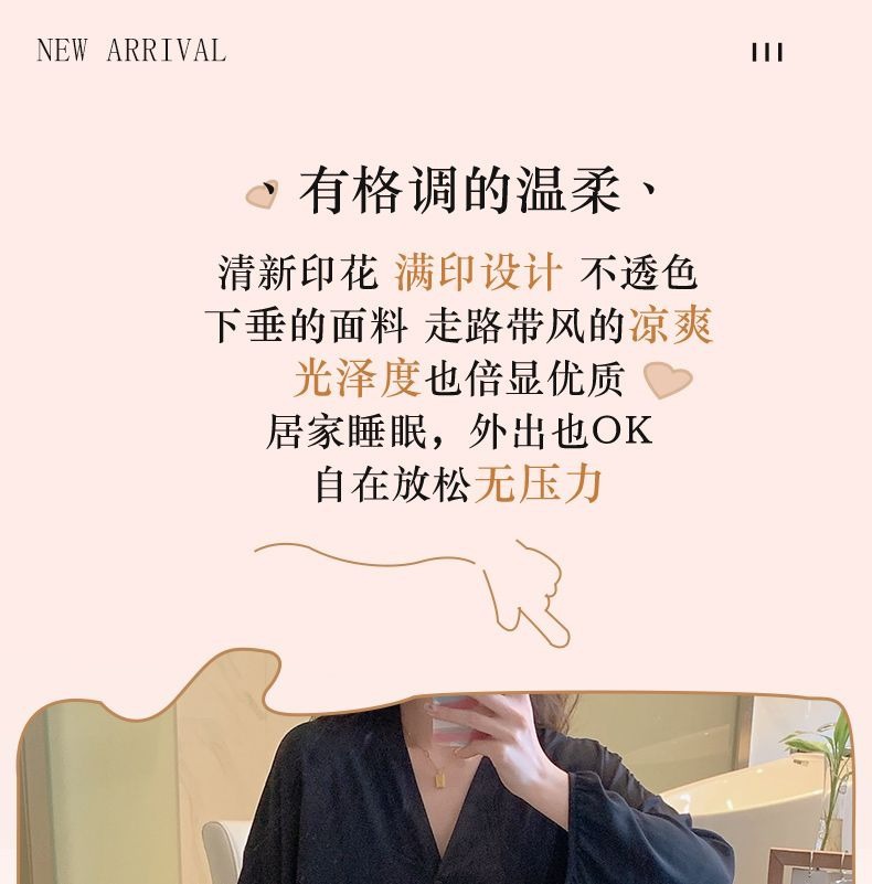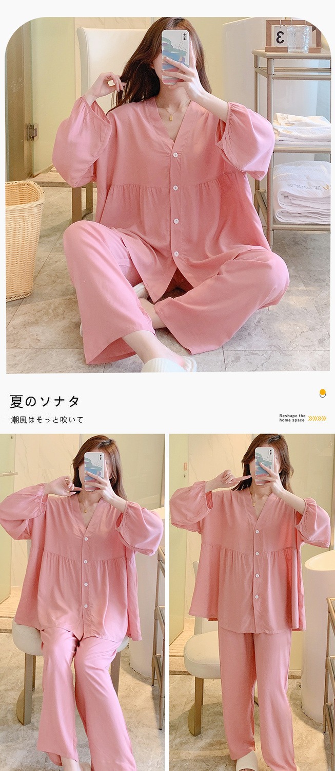 40 7 소매면 실크 잠옷 여성의 얇은 세트 단색 편안한 통기성 달 옷은 가정 옷 밖에서 입을 수 있습니다.