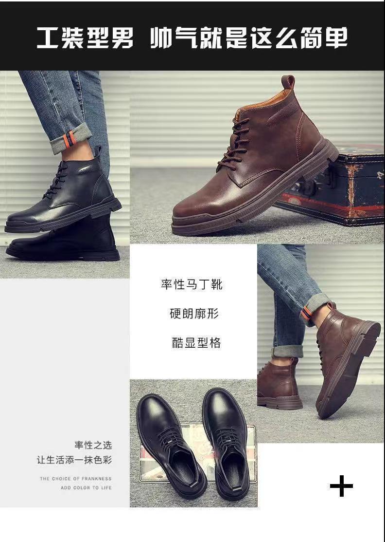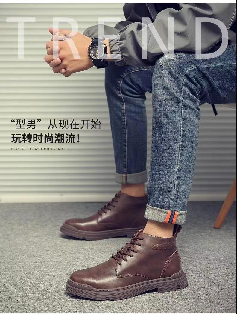 [정품 가죽 남성화] 사계절 마틴 부츠 남자 하이 탑 정품 캐주얼 트렌드 초두께 부동액 아메리칸 스타일