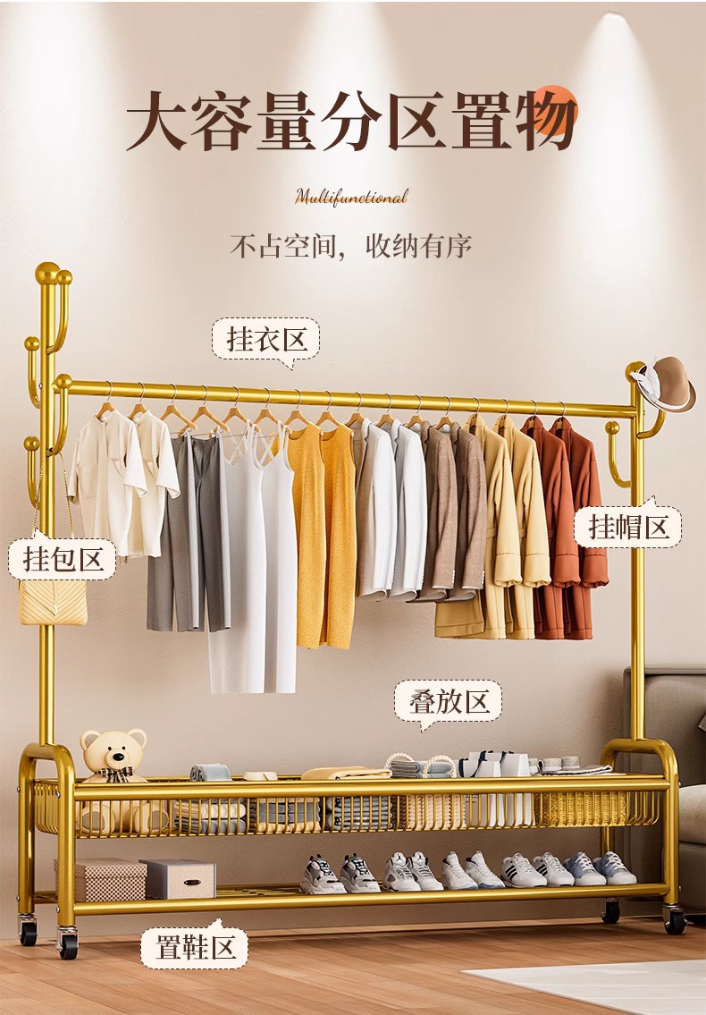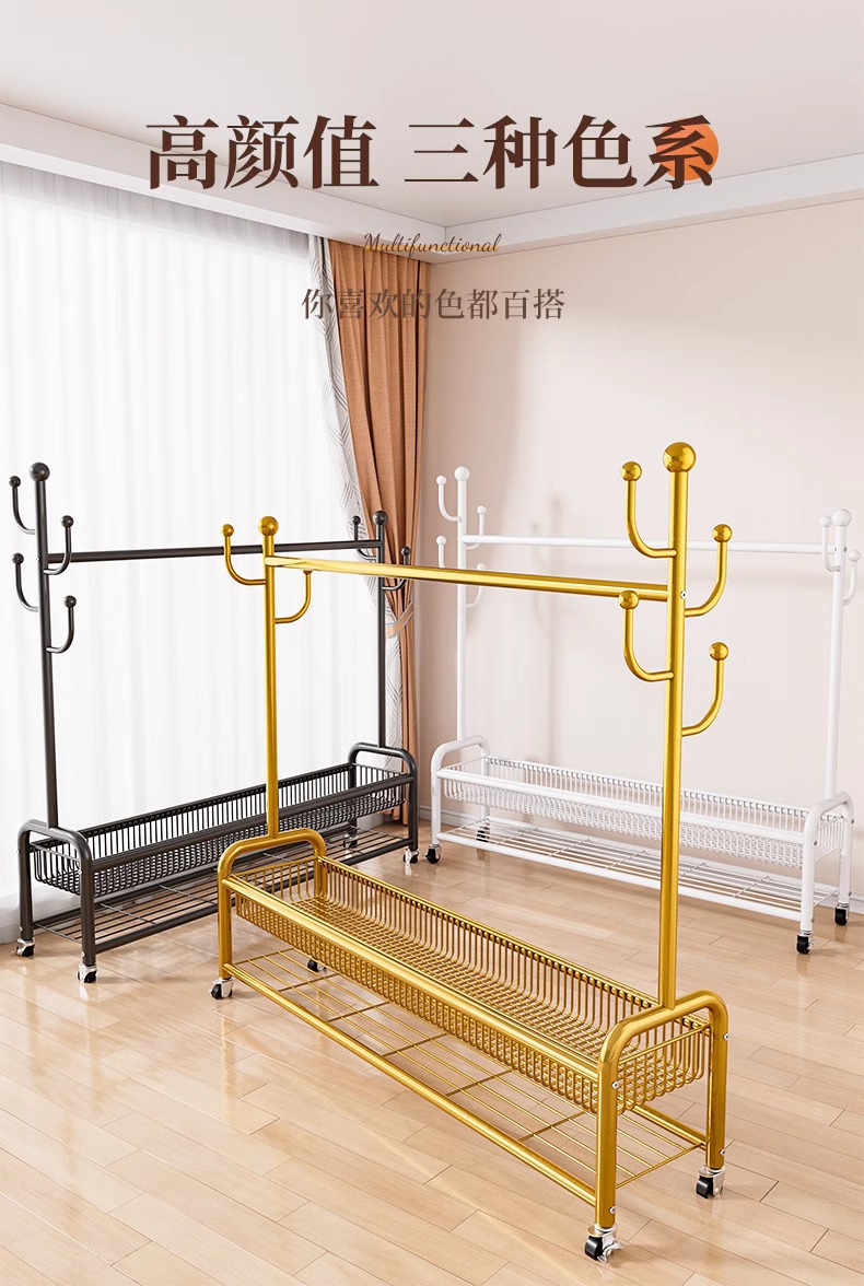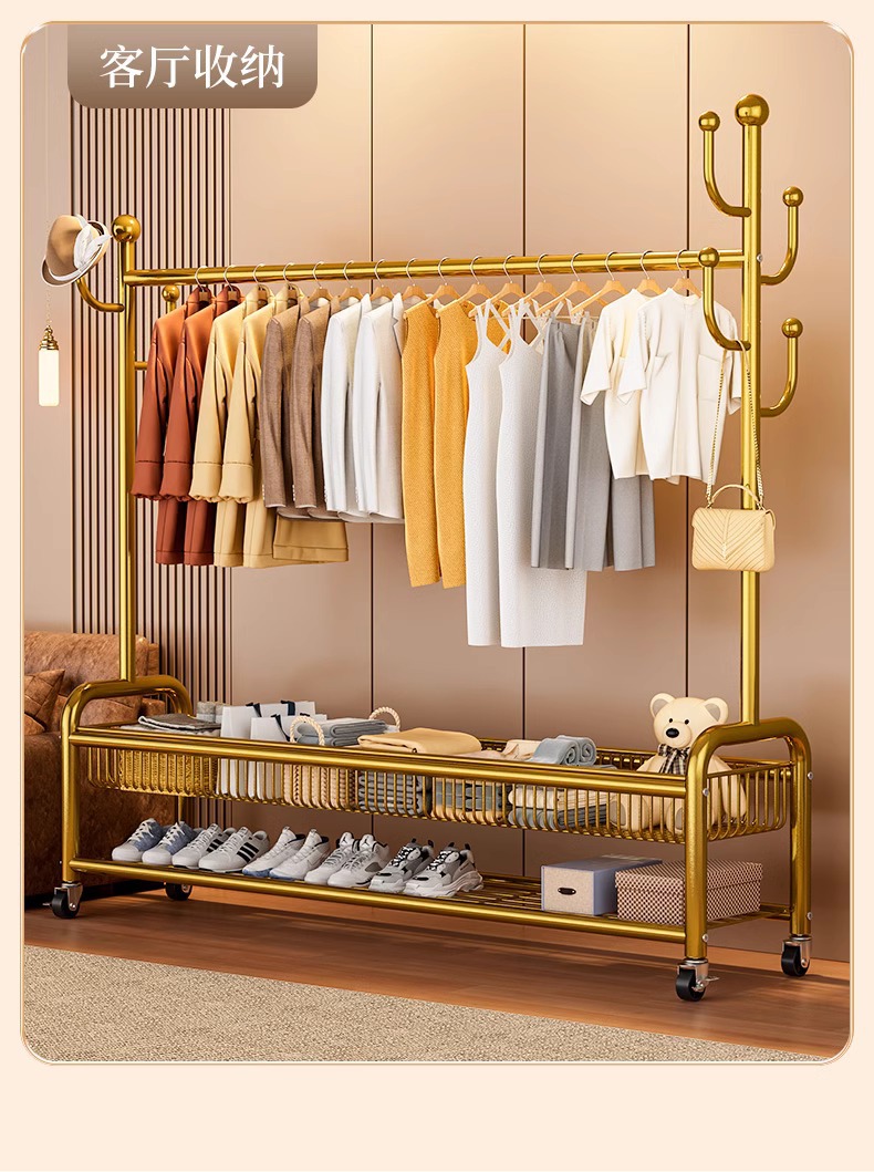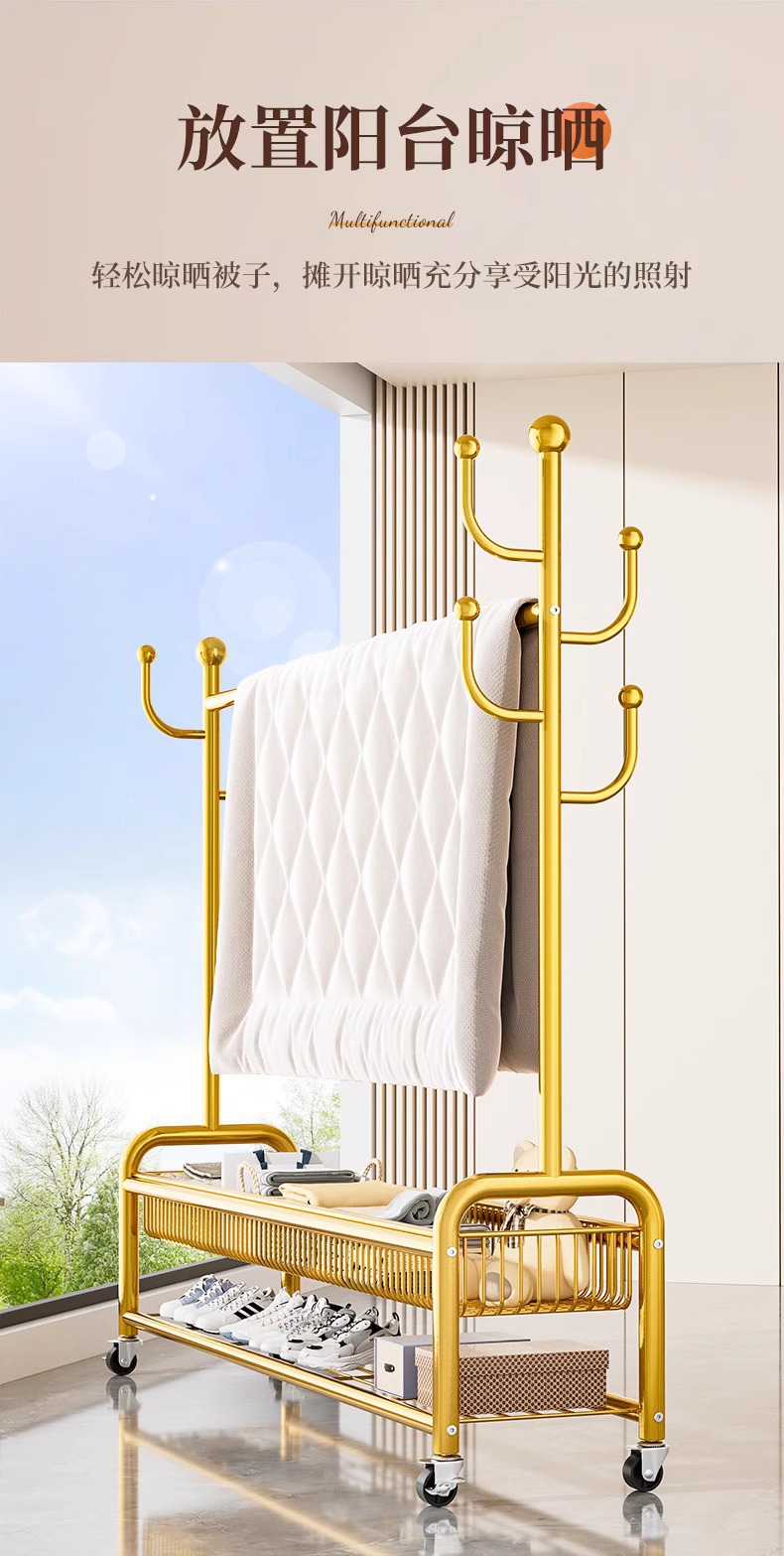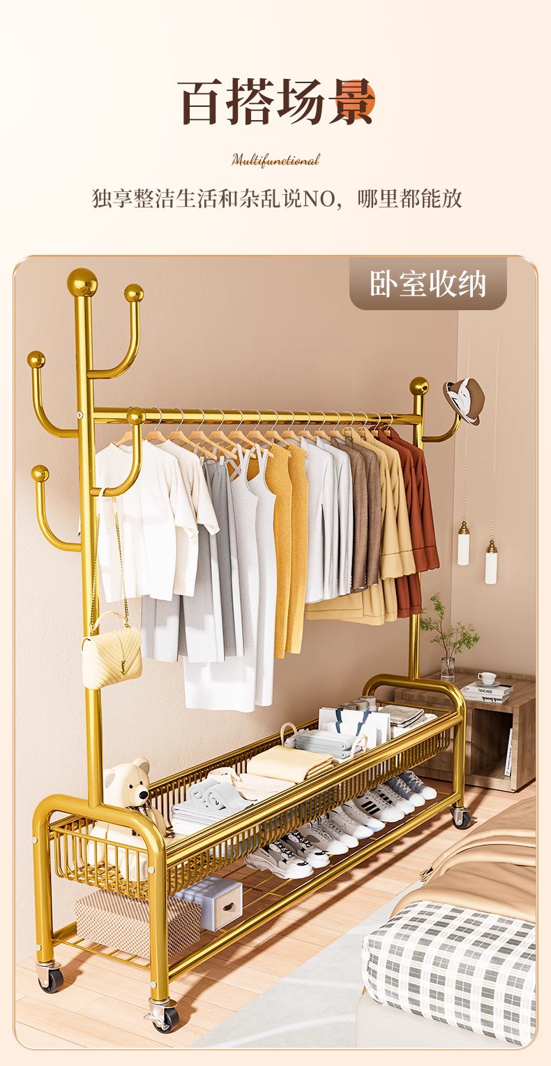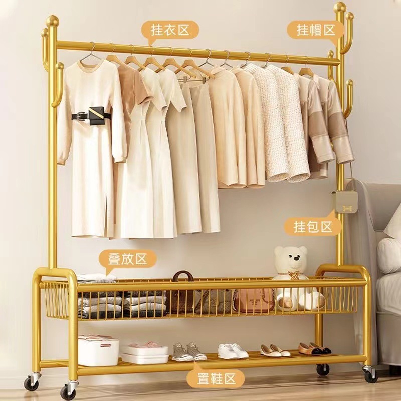 옷 랙 바닥 침실 가정용 이동식 의류 랙 발코니 의류 랙 랙 실내 간단한 막대 코트 랙