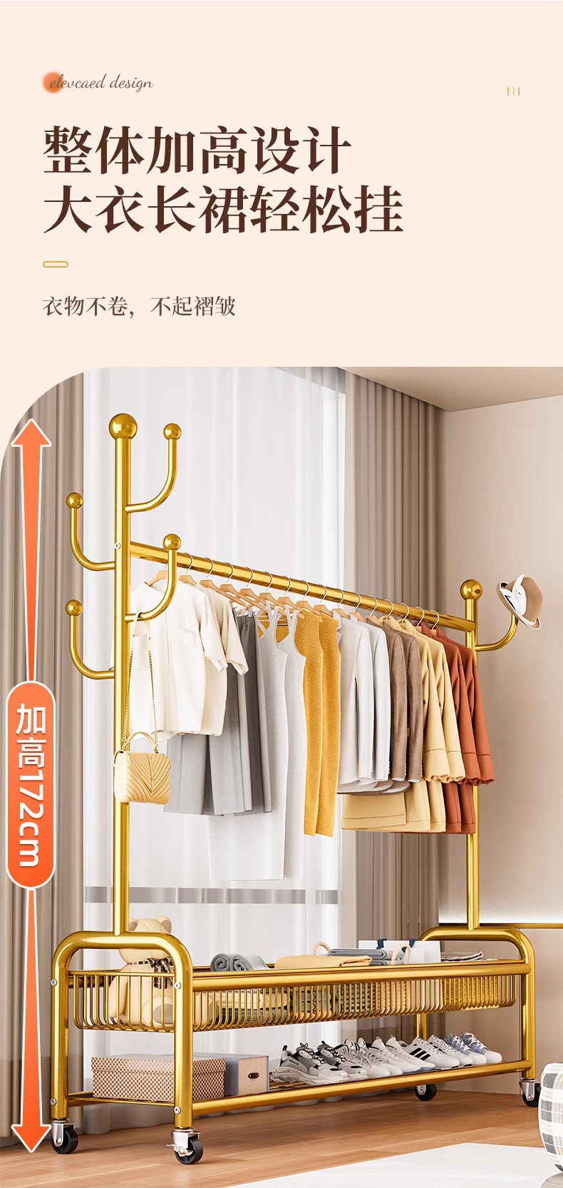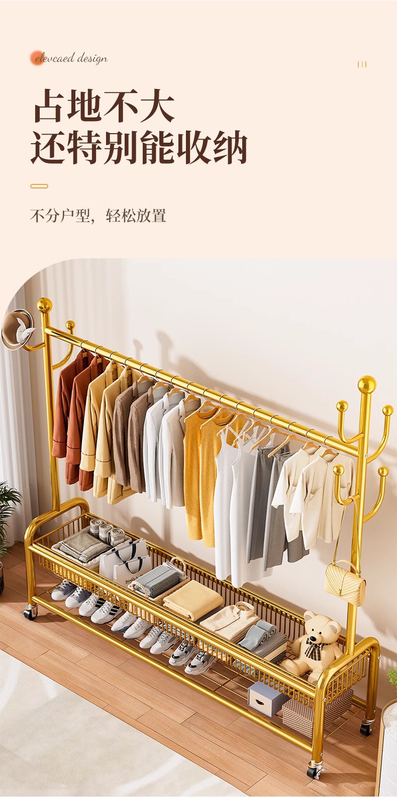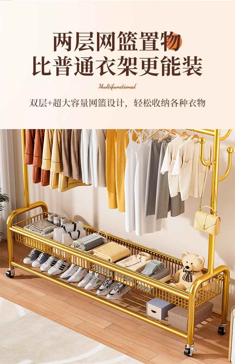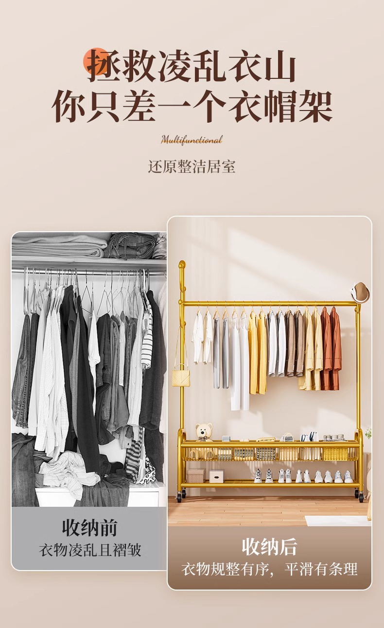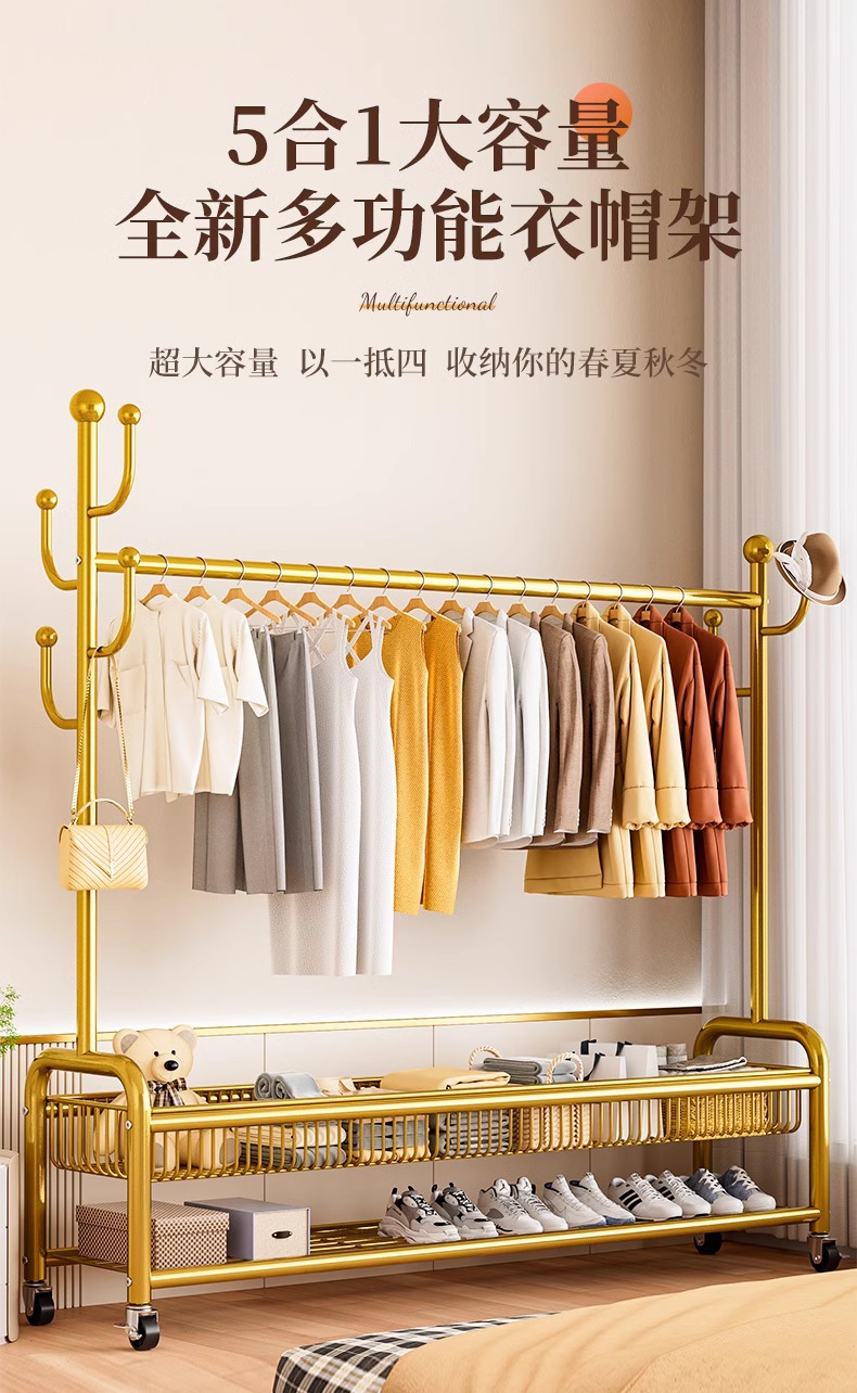 옷 랙 바닥 침실 가정용 이동식 의류 랙 발코니 의류 랙 랙 실내 간단한 막대 코트 랙