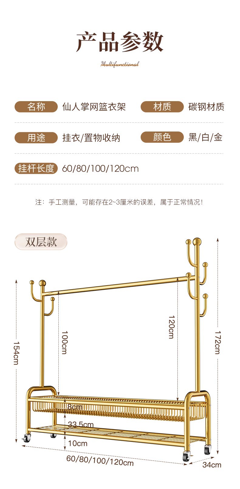 60 더블 레이어 라이트 럭셔리 골드 메탈 유니버설 휠