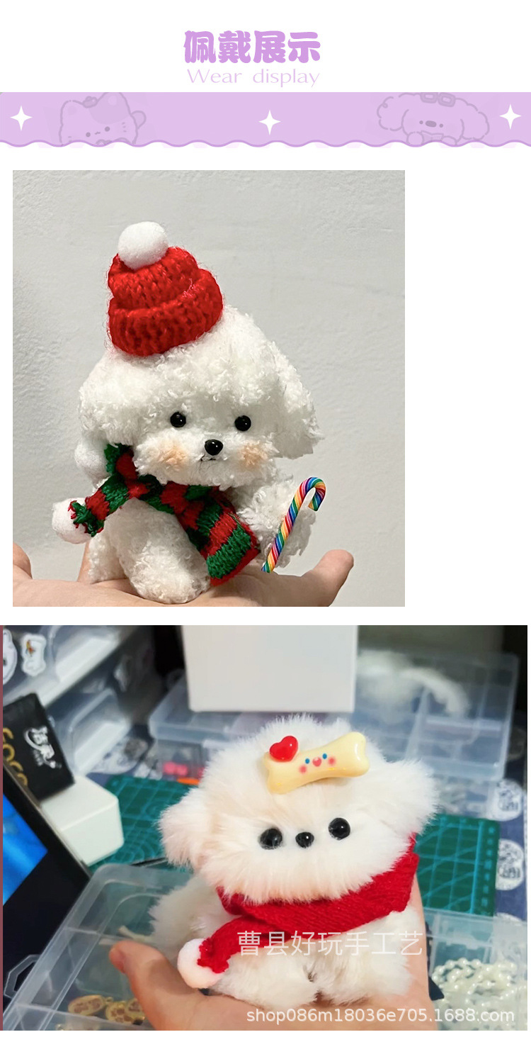 크로스보더 미니 크리스마스 울 스카프 모자 플러시 강아지 인형 액세서리 와인병 장식 트렌디 액세서리