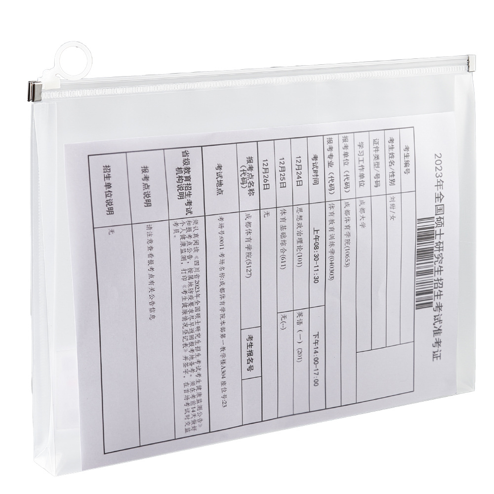 시험 지퍼 가방 입학 시험 입장권 가방 a5 문서 가방 문구 연필 가방 a6 대용량 a4