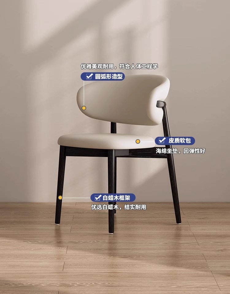 노르딕 엔트리 럭셔리 솔리드 우드 다이닝 의자 로그 크림 스타일 가정용 블랙 애쉬 카페 메이크업 의자 책상 의자