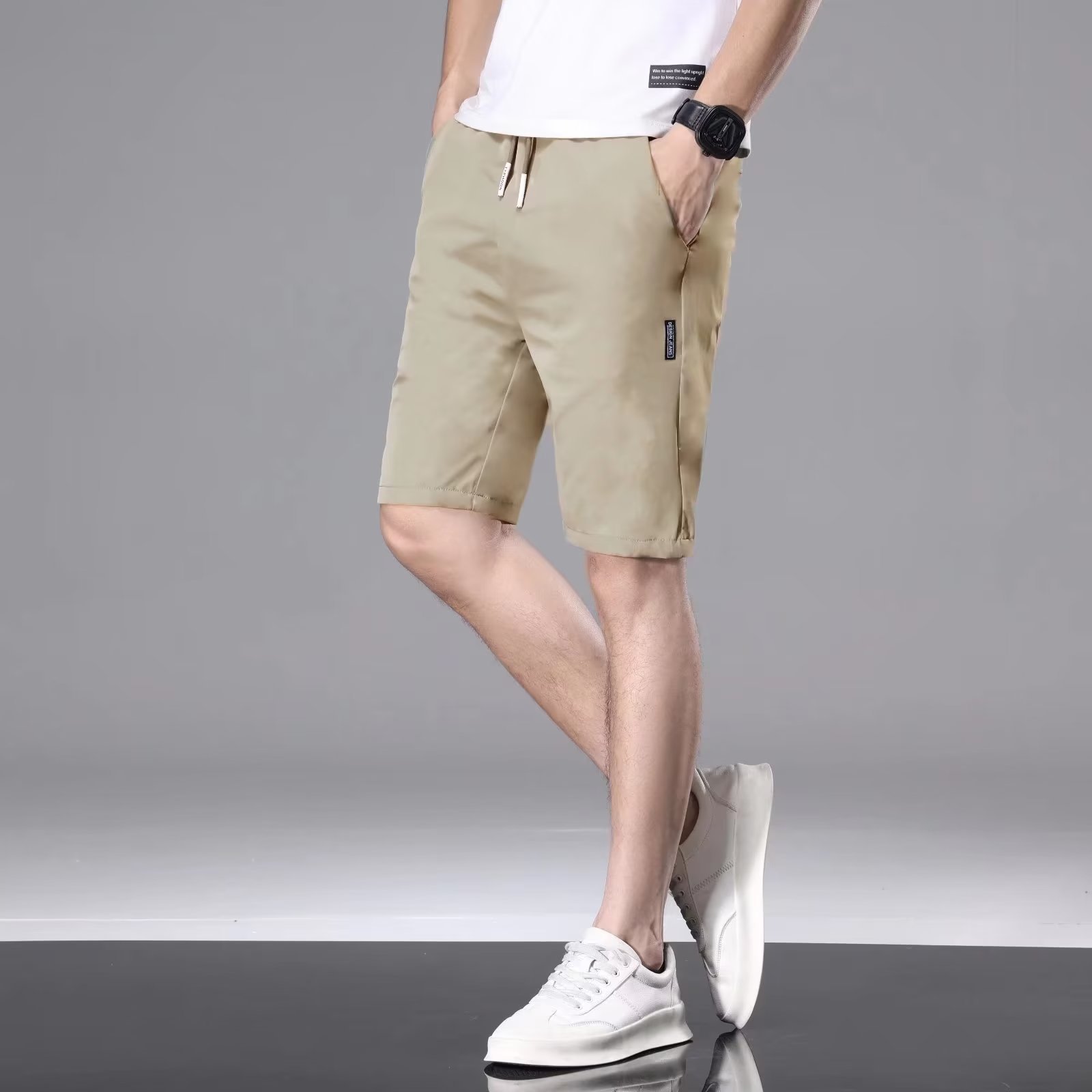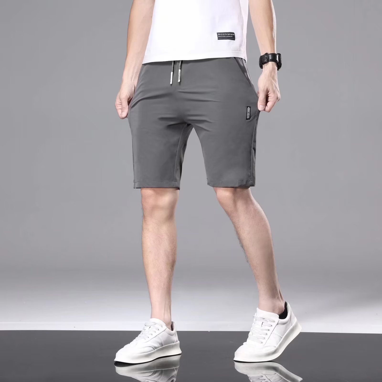 여름 얇은 남성 반바지, 청소년 홈 캐주얼 5부 팬츠, 트렌디한 아우터 팬츠, 아이스 실크 스포츠 팬츠