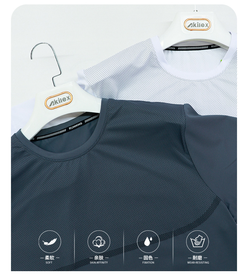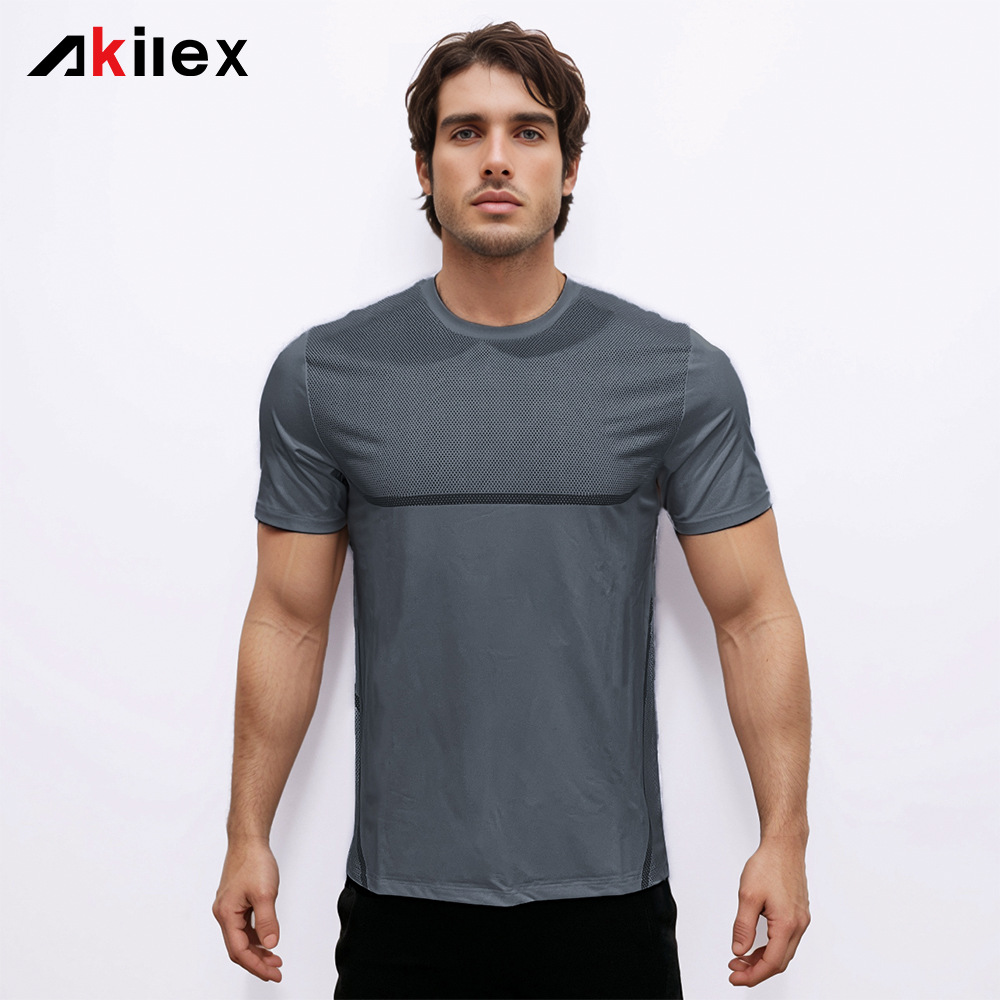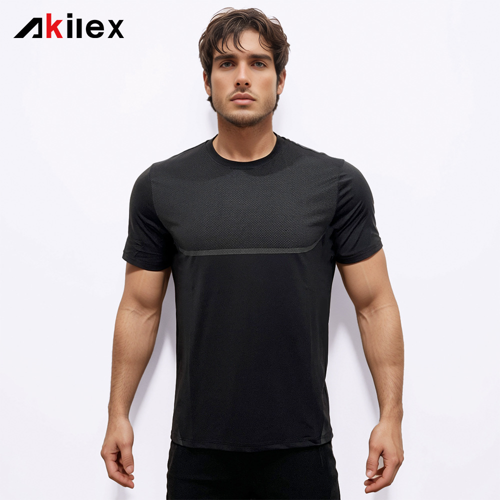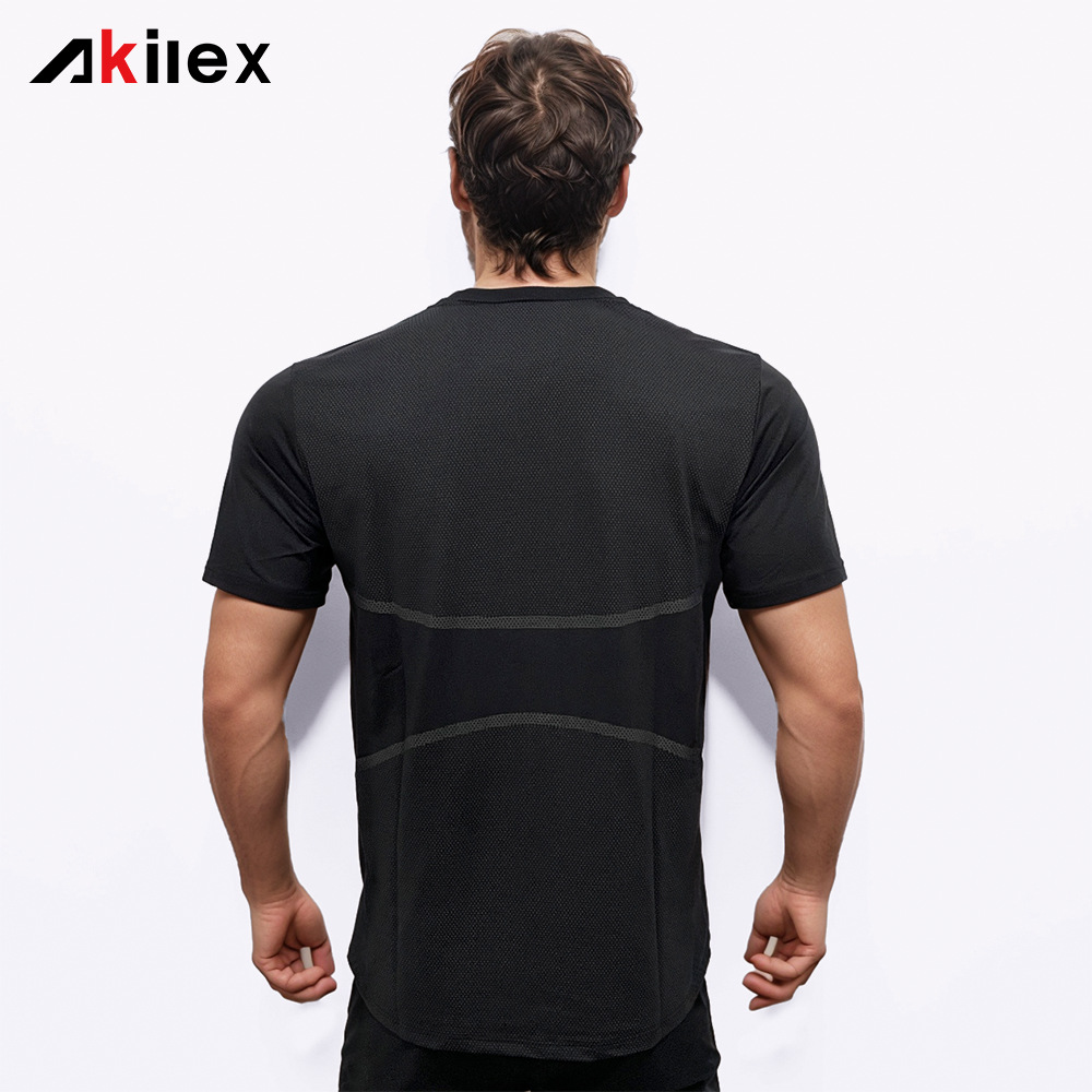 Akilex 통기성 스포츠 짧은 소매 남자 단색 여름 피트니스 달리기 티셔츠 탄성 야외 스포츠 최고 남자