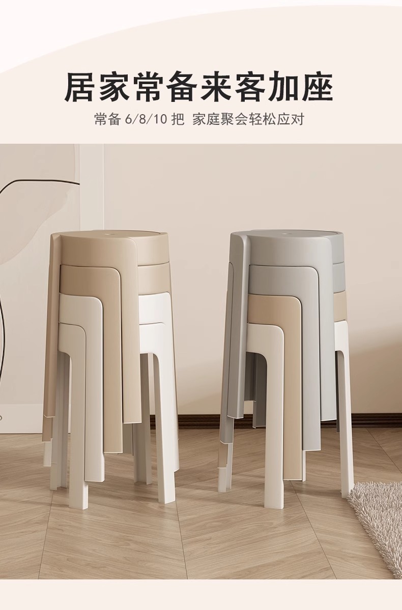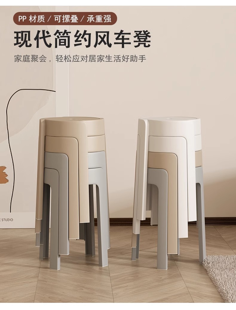플라스틱 의자 쌓을 수 있는 가정용 두꺼운 풍차 의자 현대 간단한 식탁 높은 벤치 사이클론 의자 둥근 고무 의자