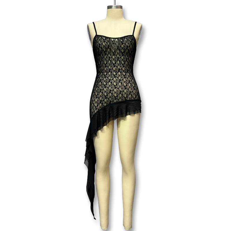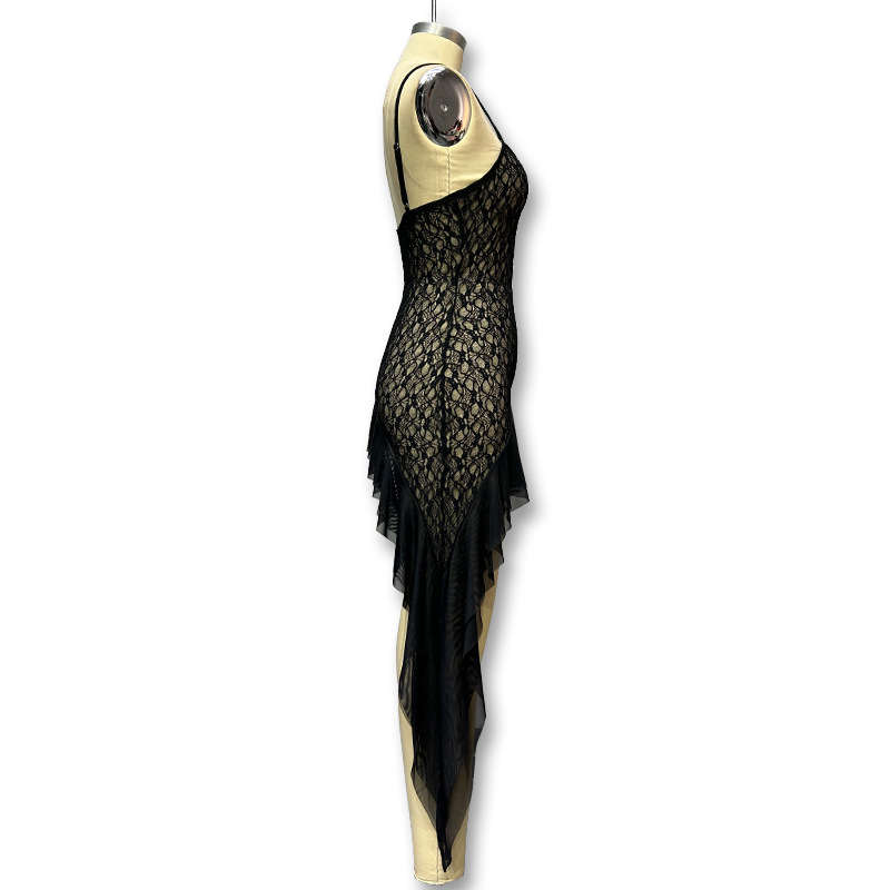 유럽과 미국의 국경 간 여성 2024 년 여름 새로운 관점 메쉬 슬링 중간 길이 원피스 대외 무역 추세 섹시한 원피스