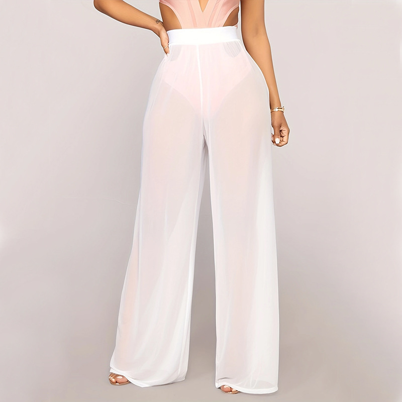 유럽과 미국의 국경 핫 메쉬 넓은 다리 바지 섹시한 관점 높은 허리 스트레이트 바지 단색 느슨한 바지 도매