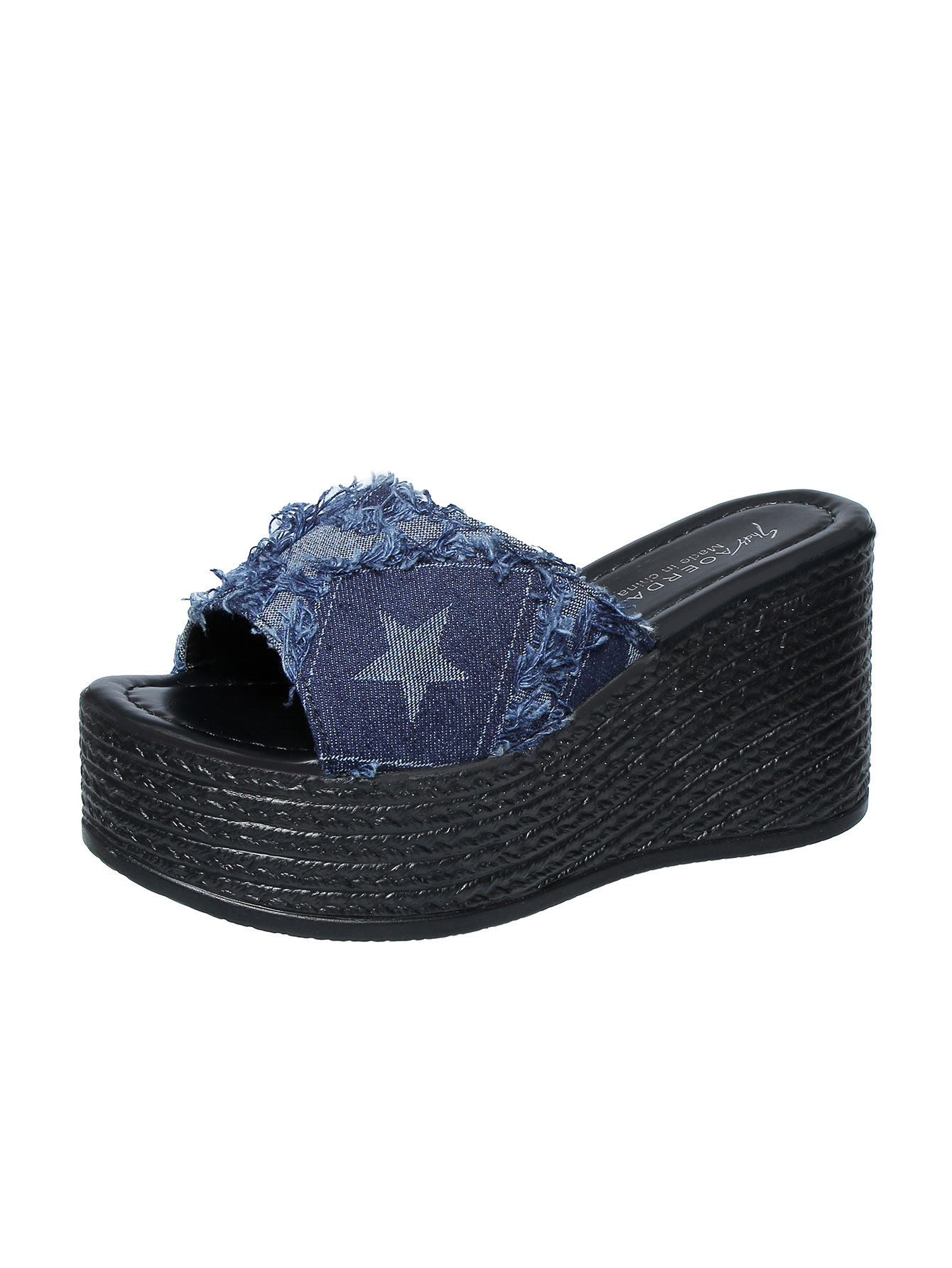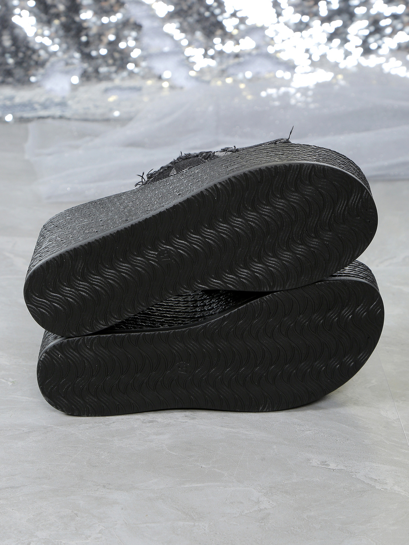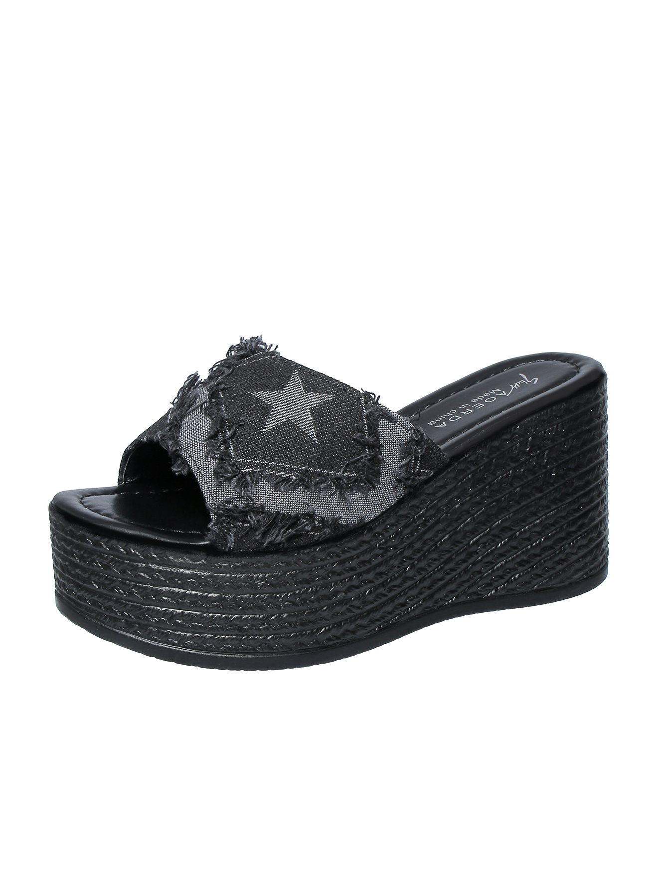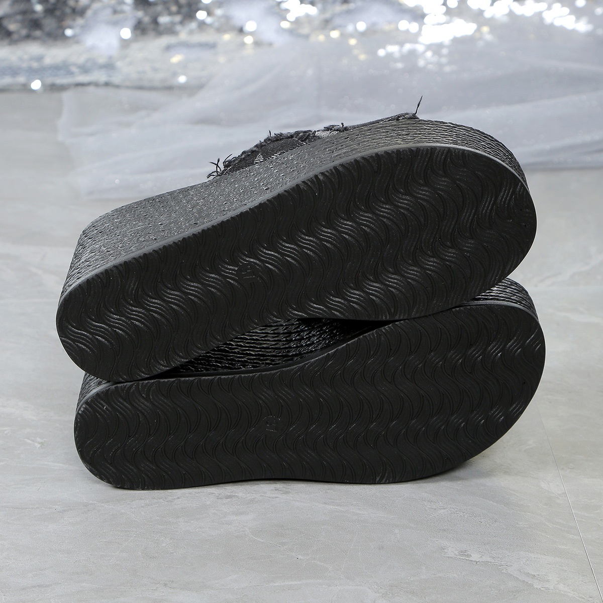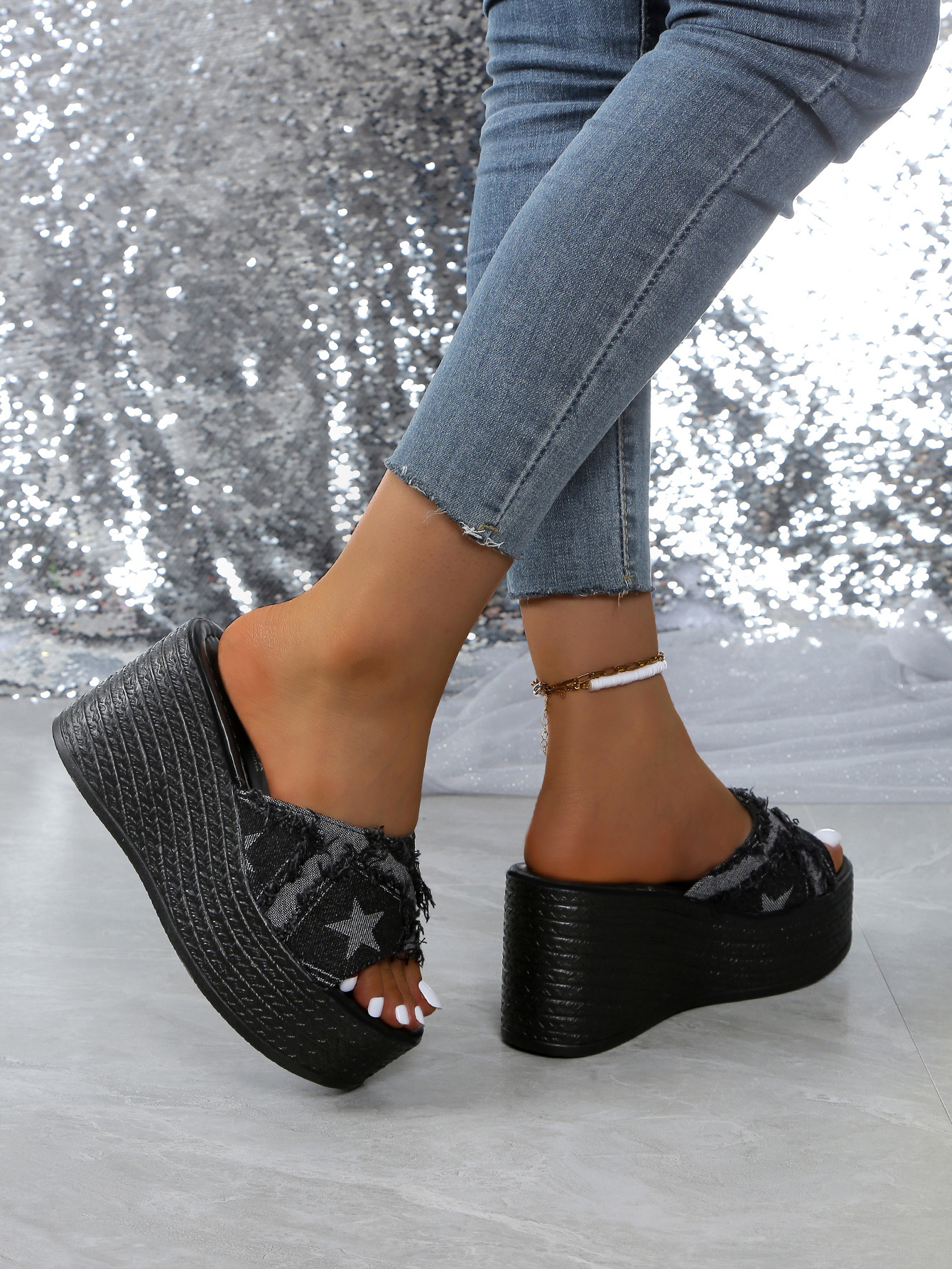 2024 여름 여성을위한 크로스 보더 대형 슬리퍼 유럽과 미국의 새로운 스타일 두꺼운 밑창 웨지 데님 캐주얼 샌들