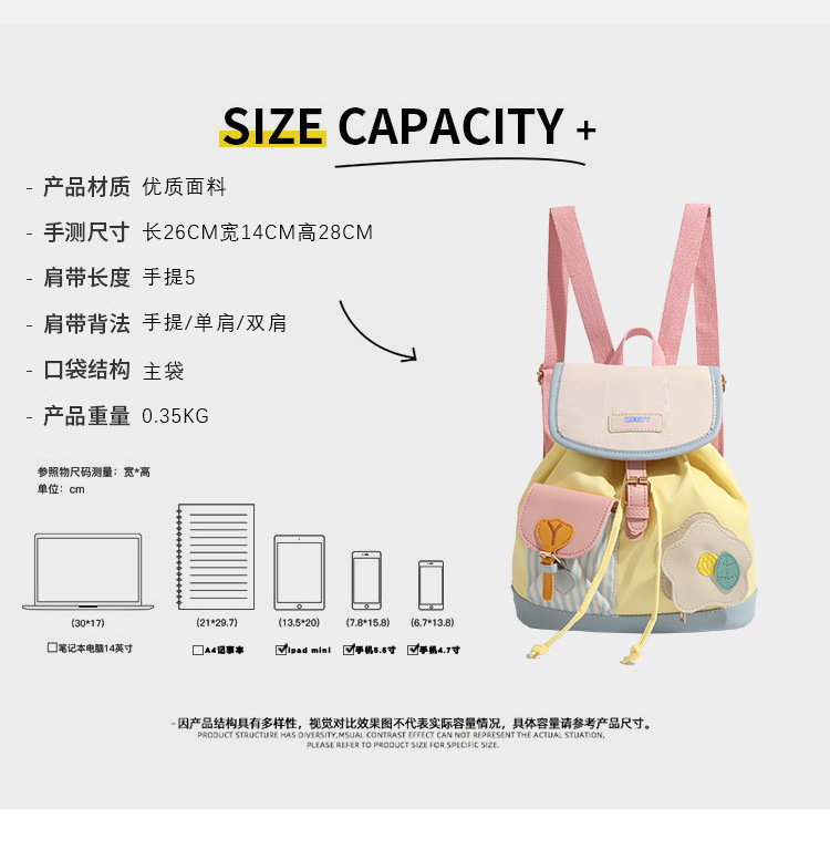 CHARHP & KEJNT 공식 정품 미니 배낭 2024 새로운 학생 귀여운 명암 통근 Schoolbag