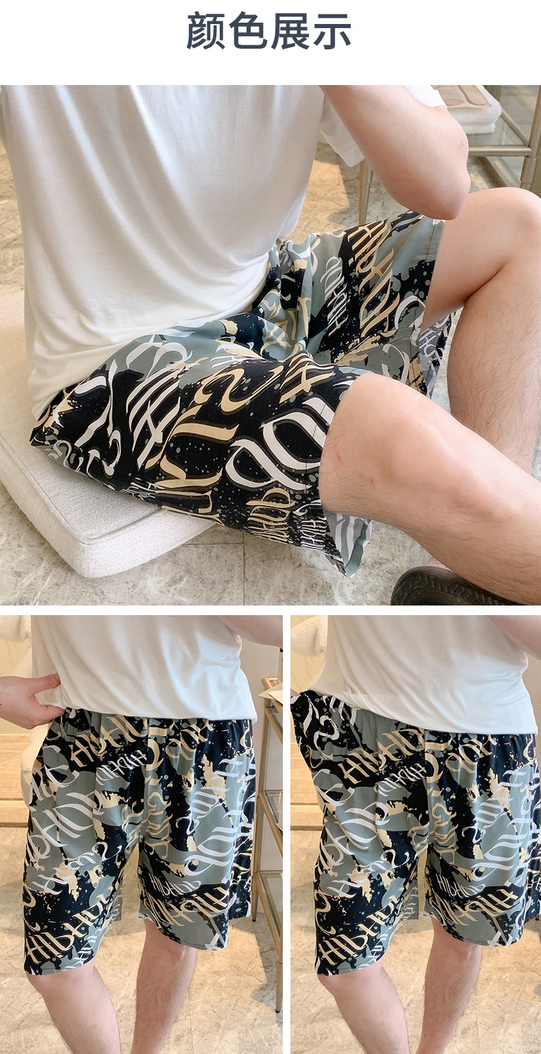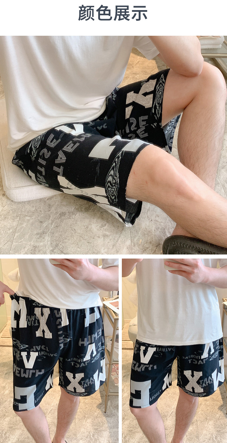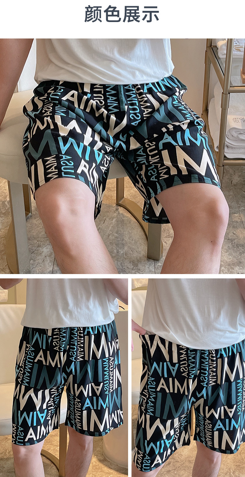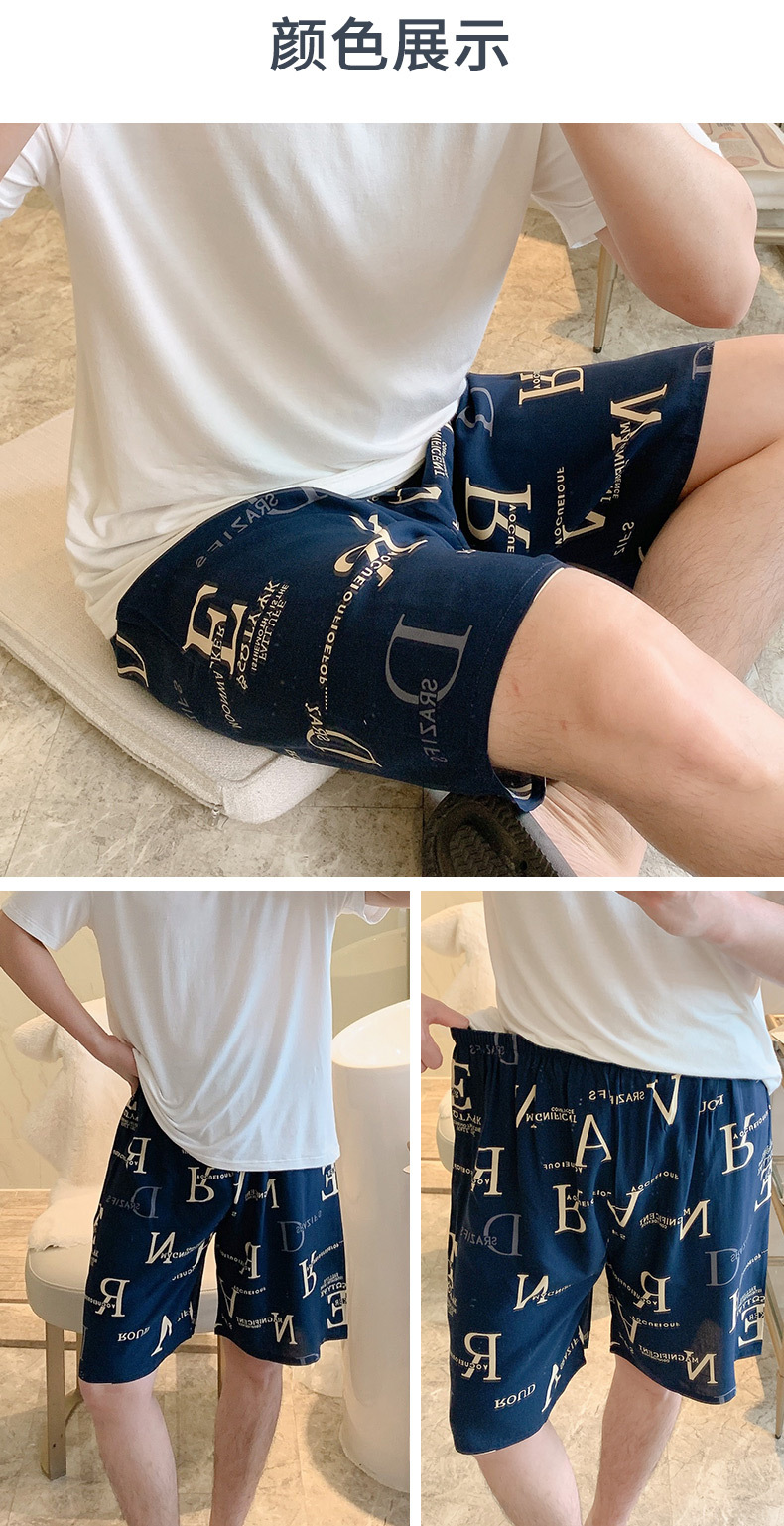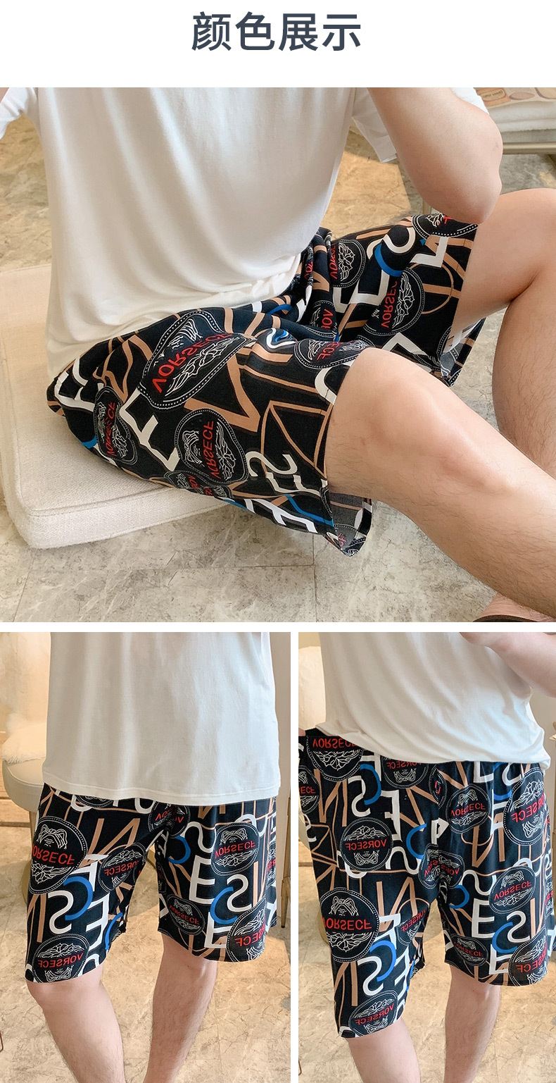 파자마 바지 남성용 코튼 실크 반바지 여름 얇은 홈 바지 느슨한 편지 큰 바지 겉옷 인공 면화 비치 바지