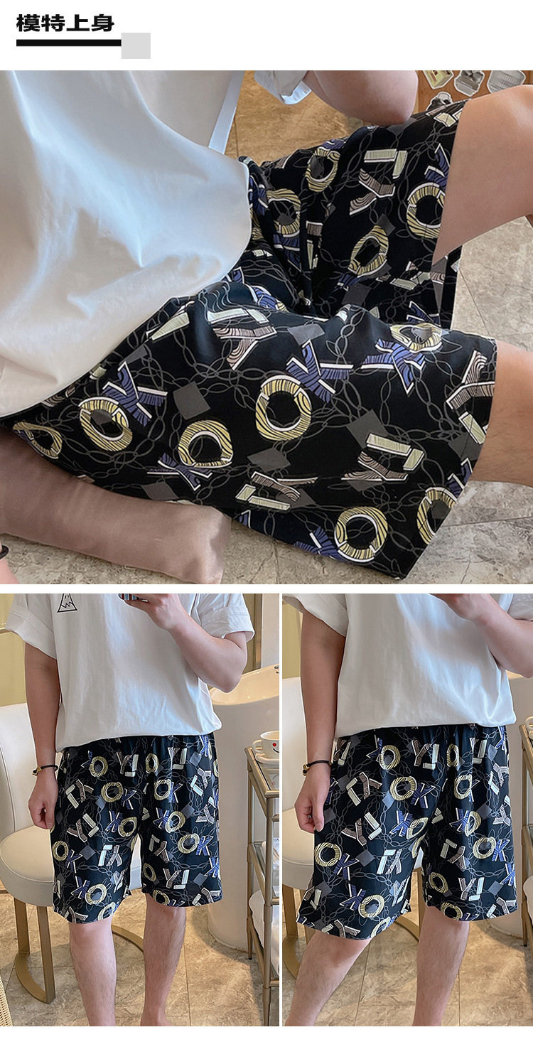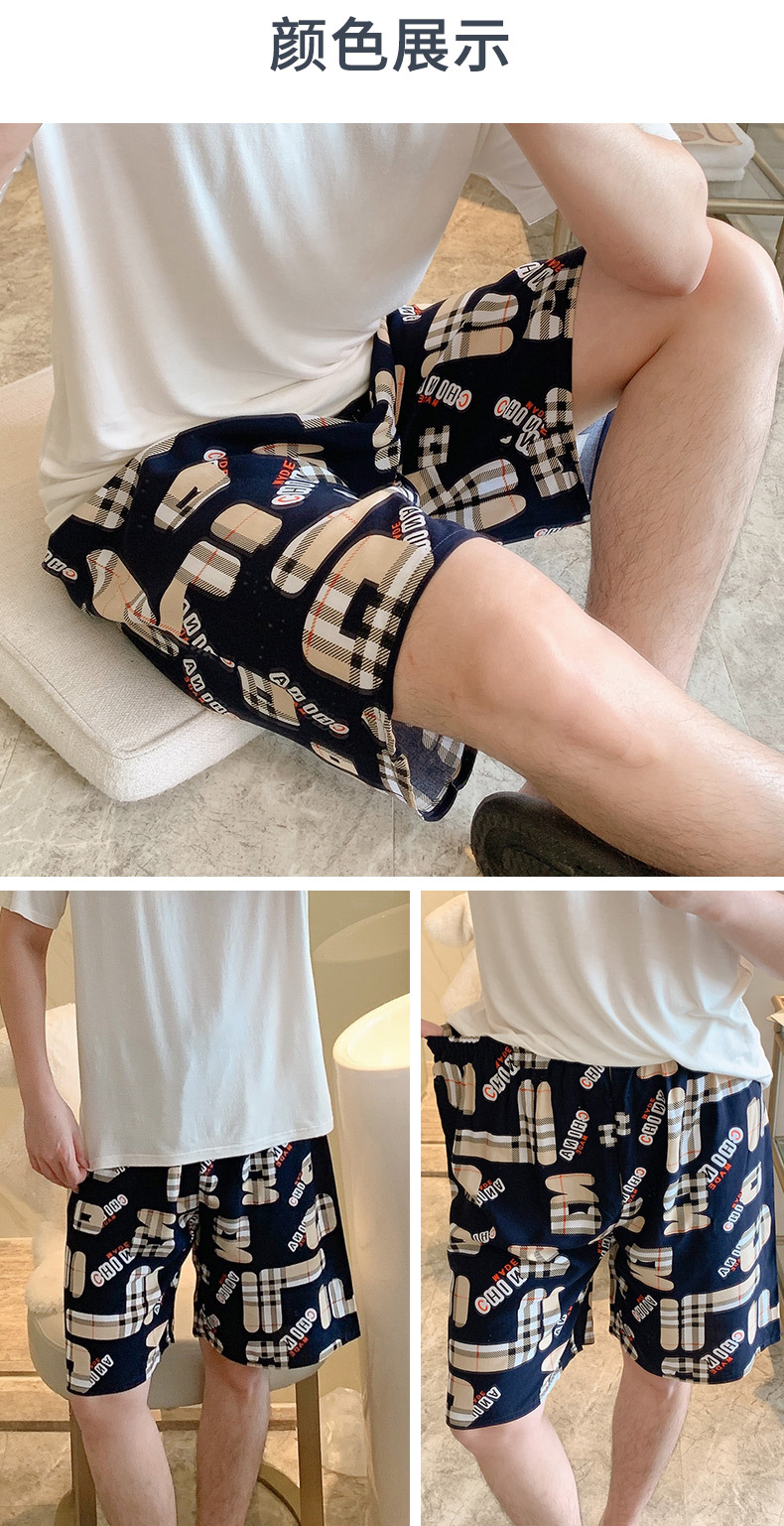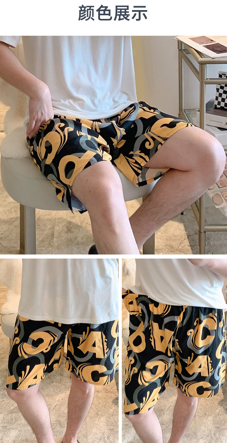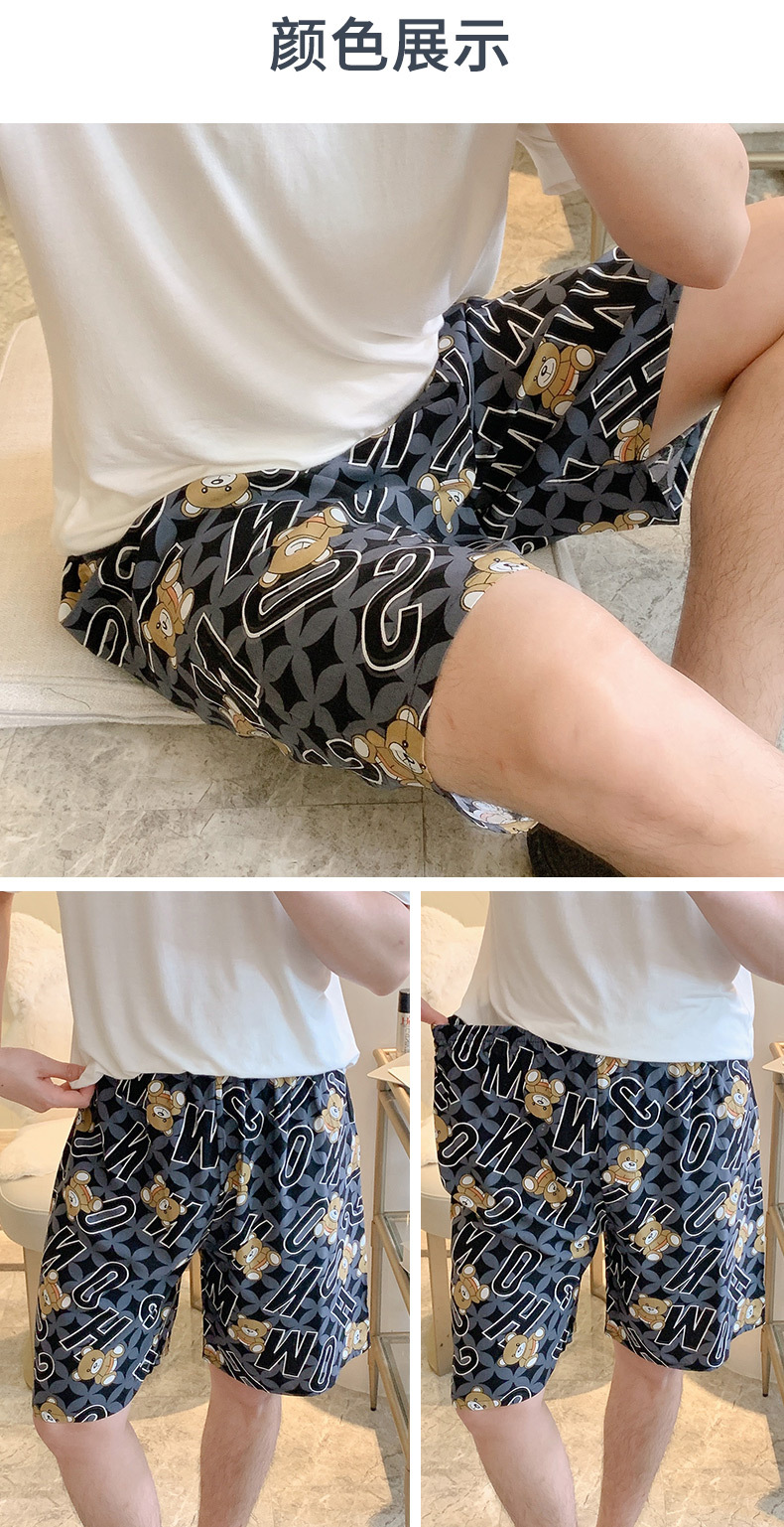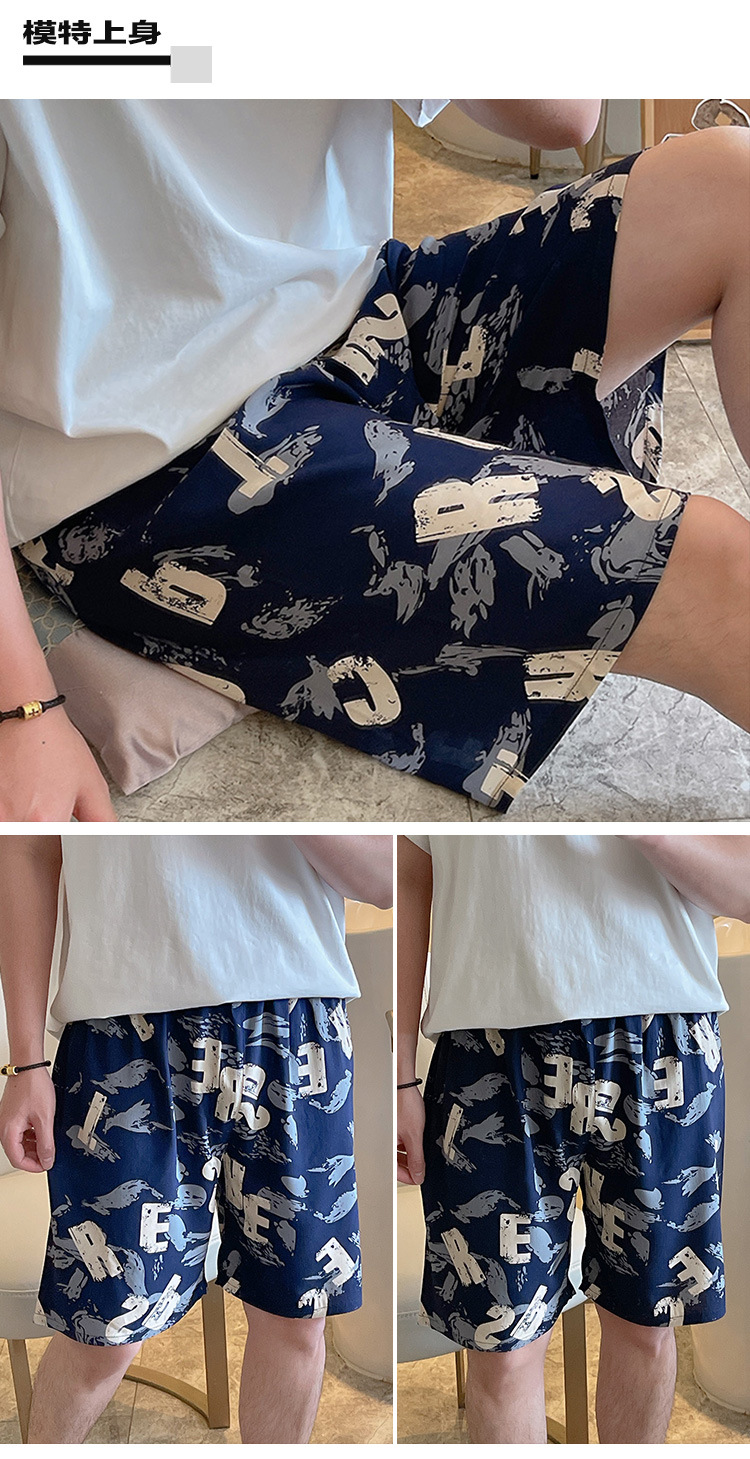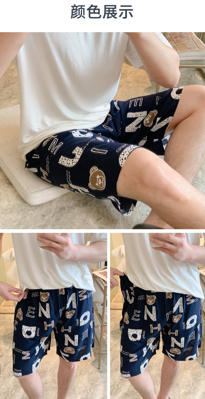 파자마 바지 남성용 코튼 실크 반바지 여름 얇은 홈 바지 느슨한 편지 큰 바지 겉옷 인공 면화 비치 바지
