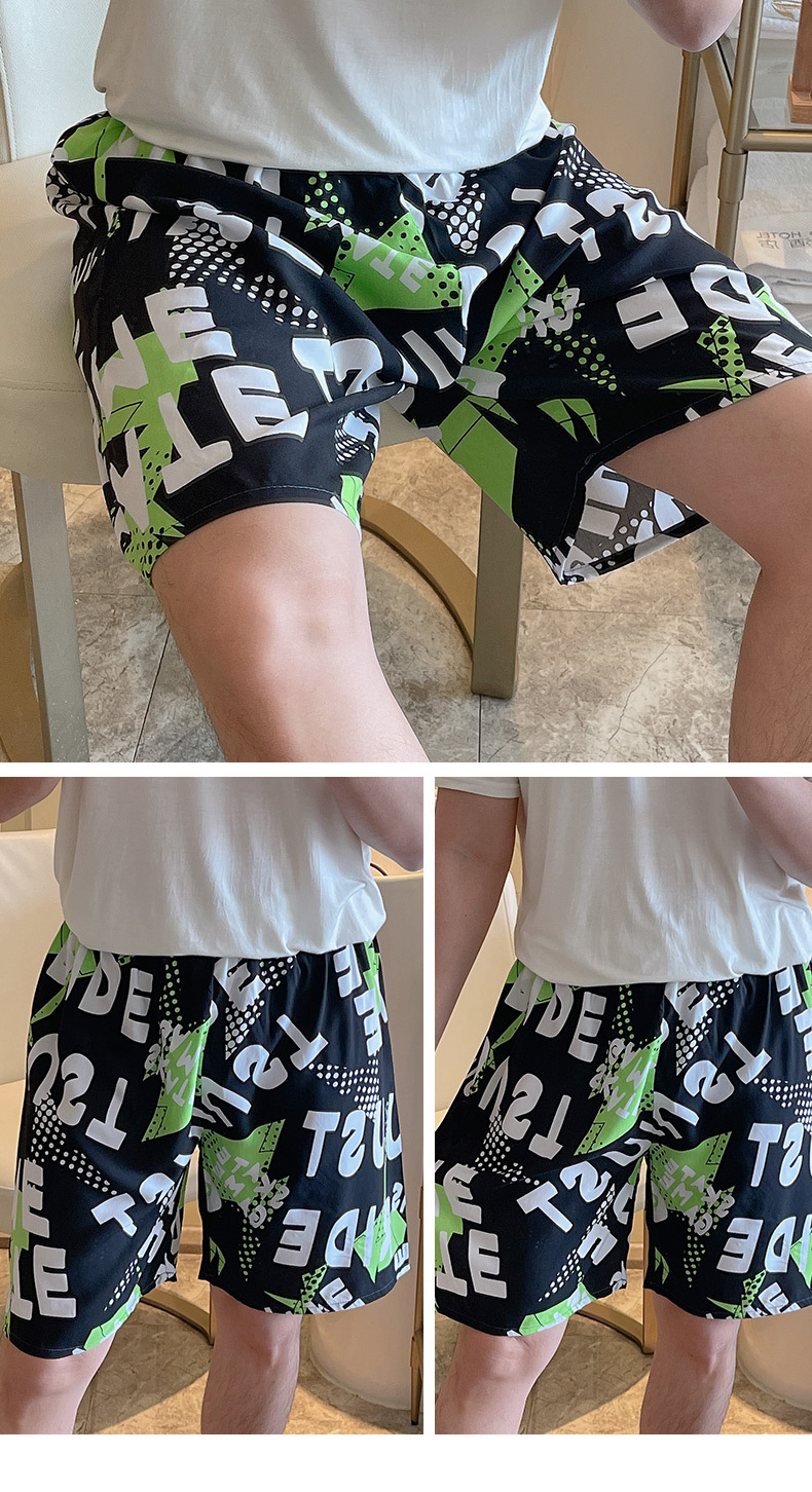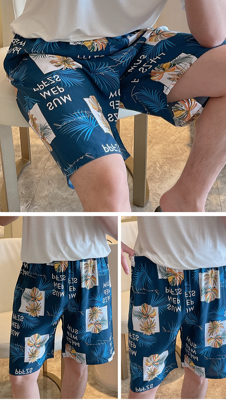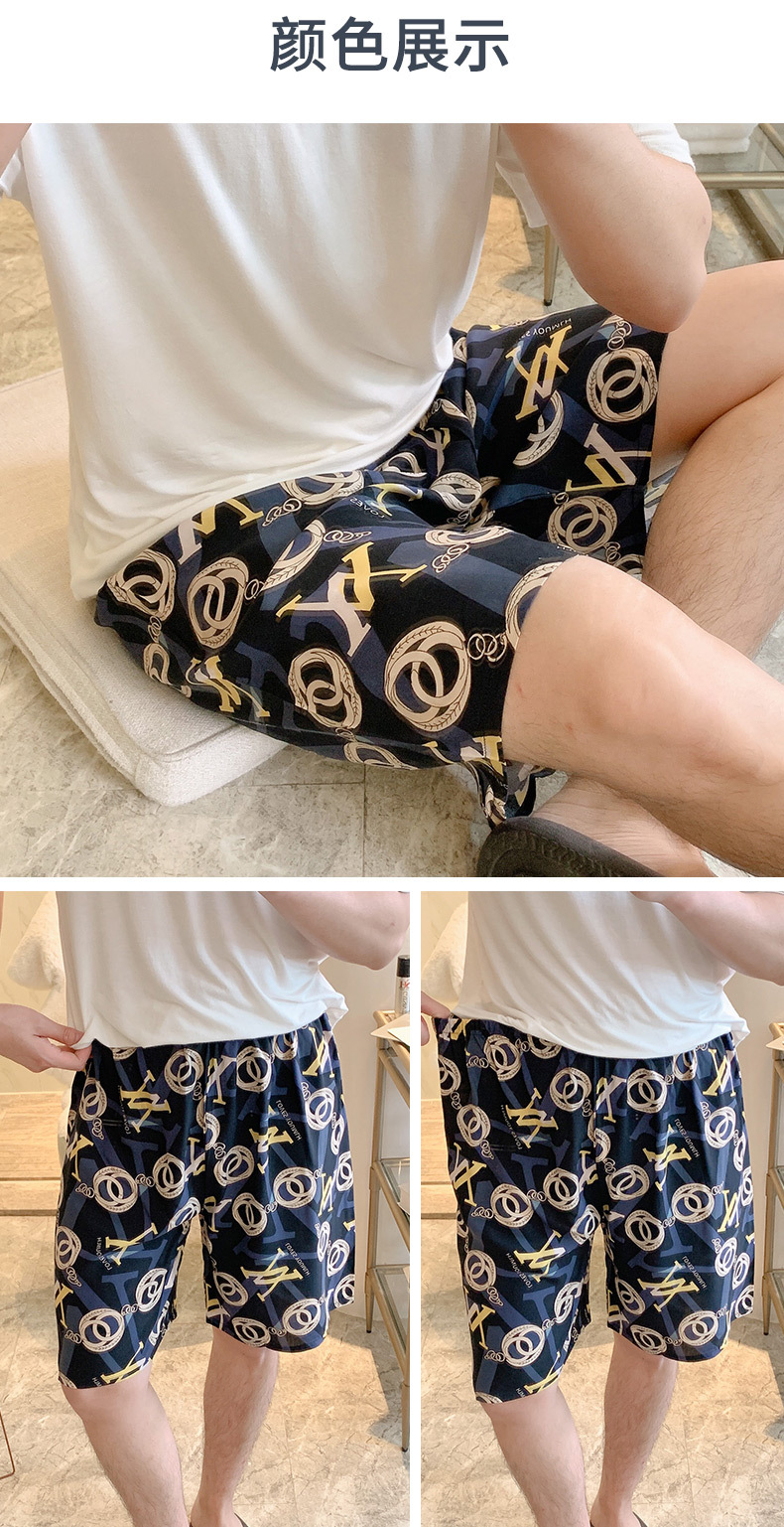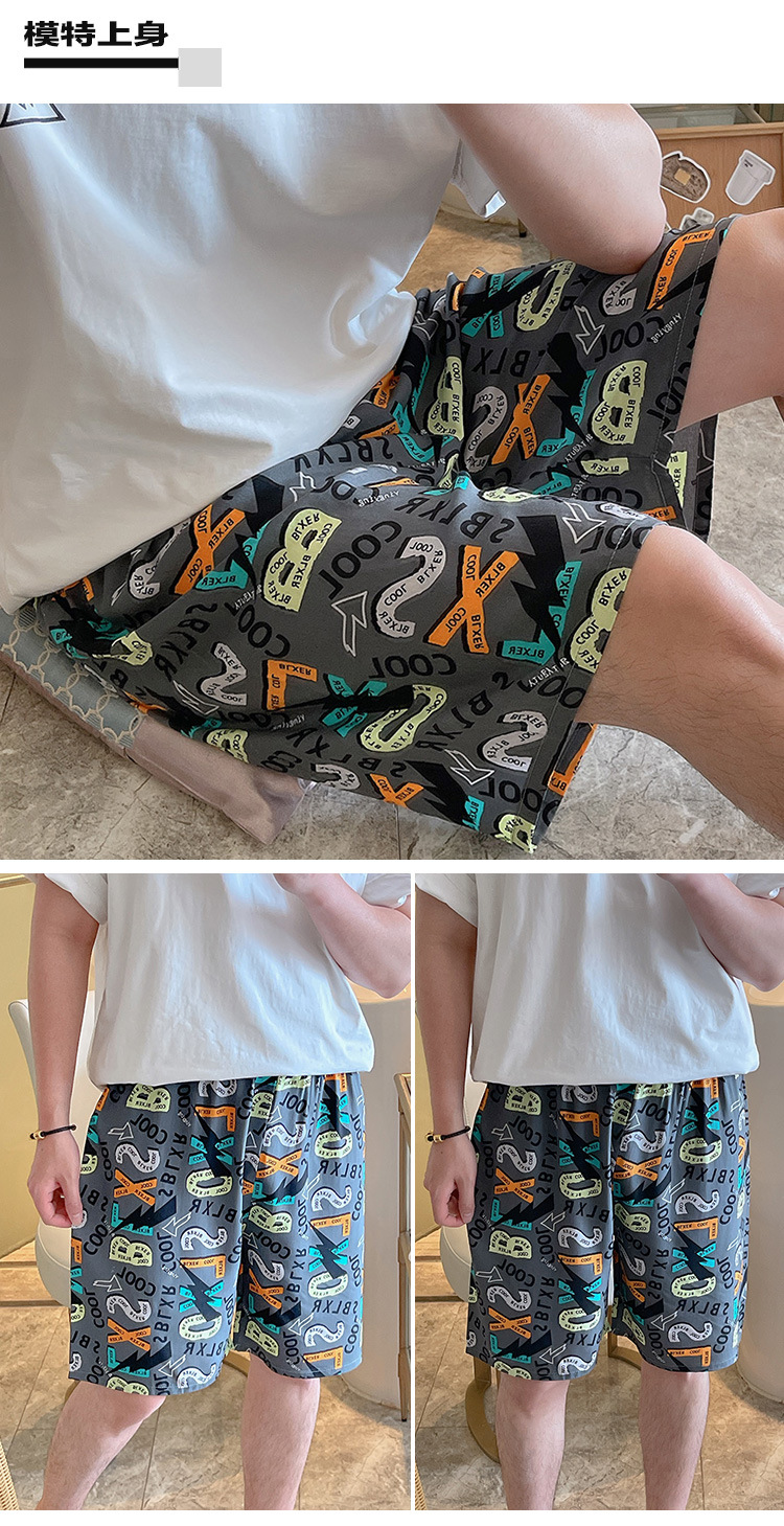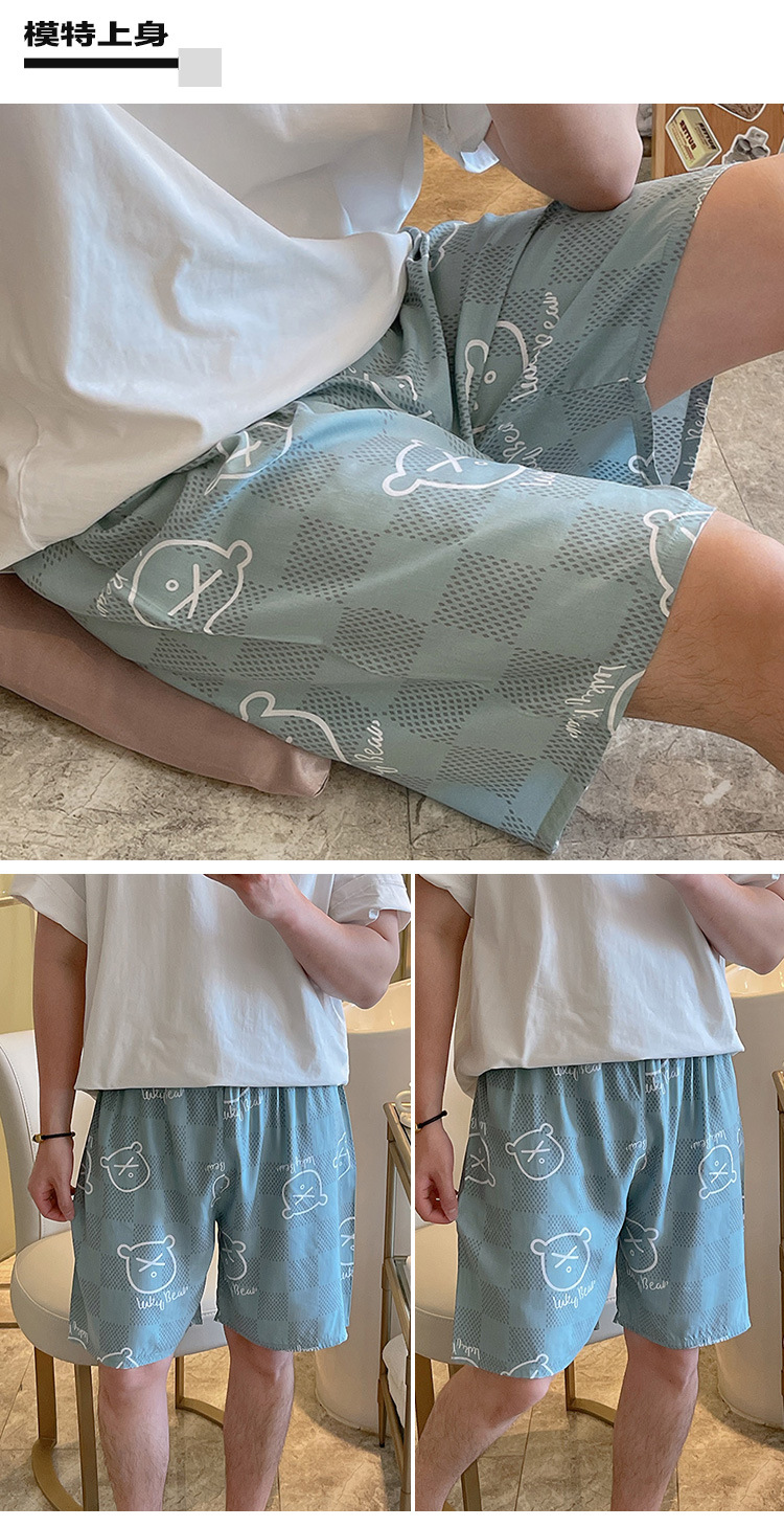 파자마 바지 남성용 코튼 실크 반바지 여름 얇은 홈 바지 느슨한 편지 큰 바지 겉옷 인공 면화 비치 바지