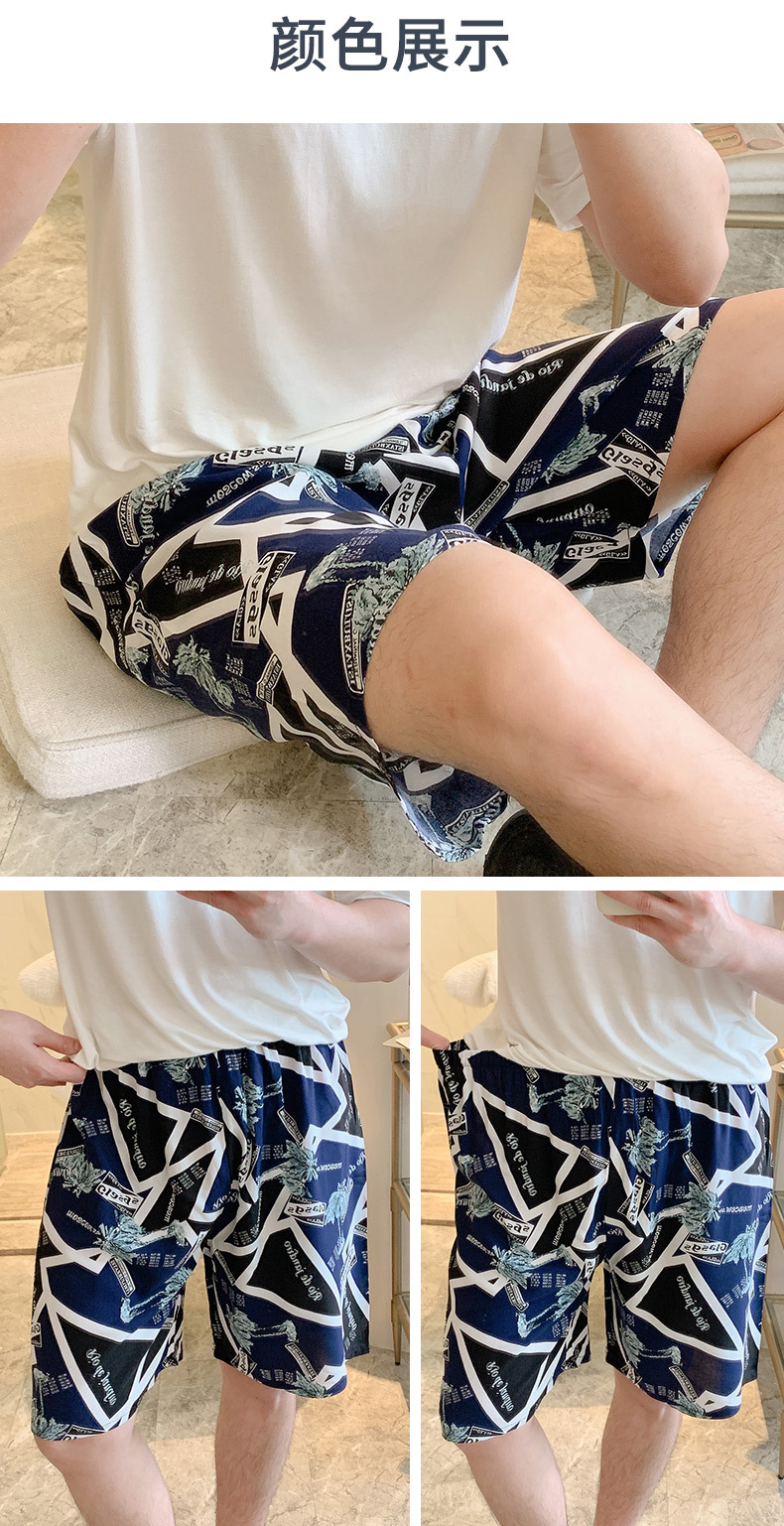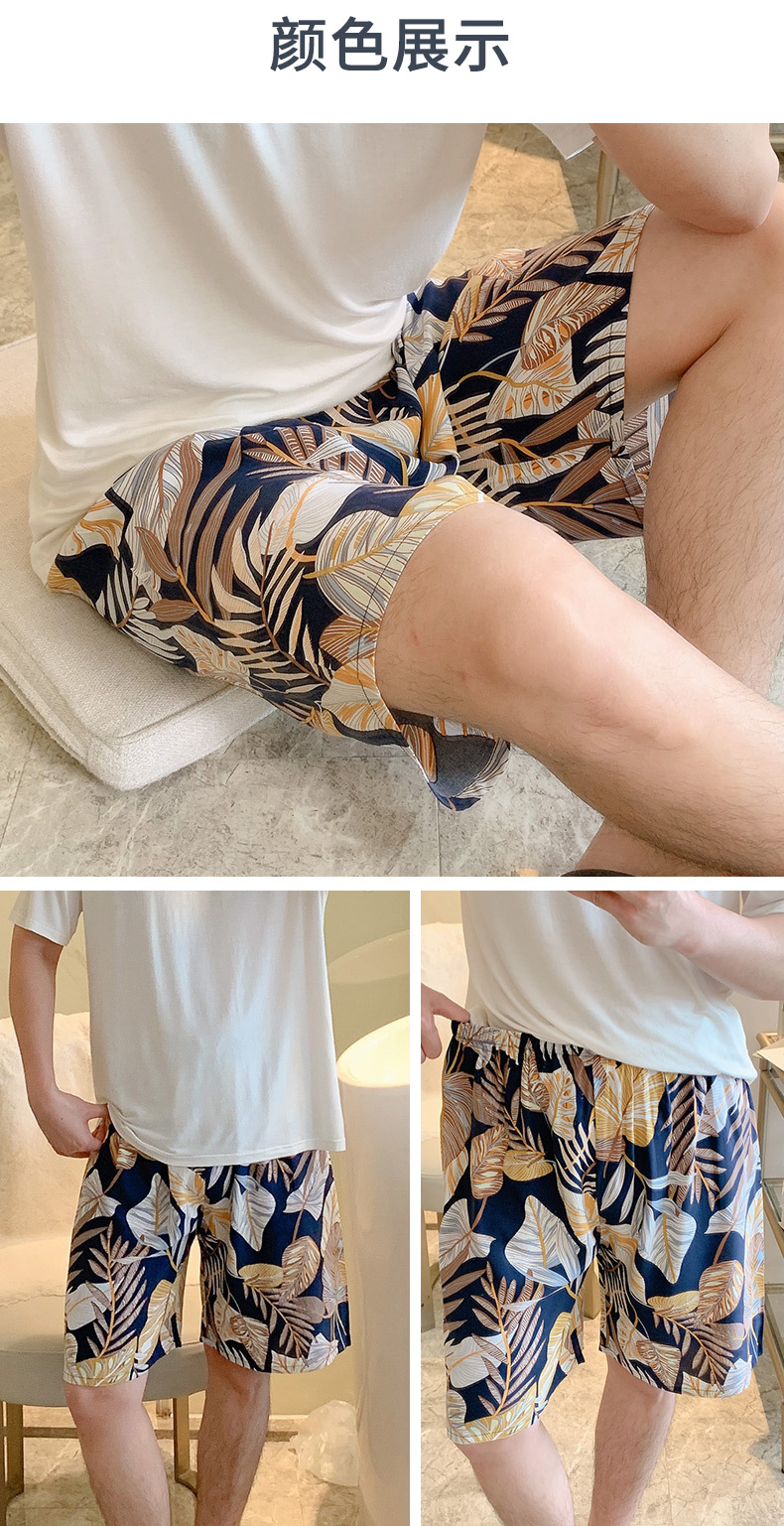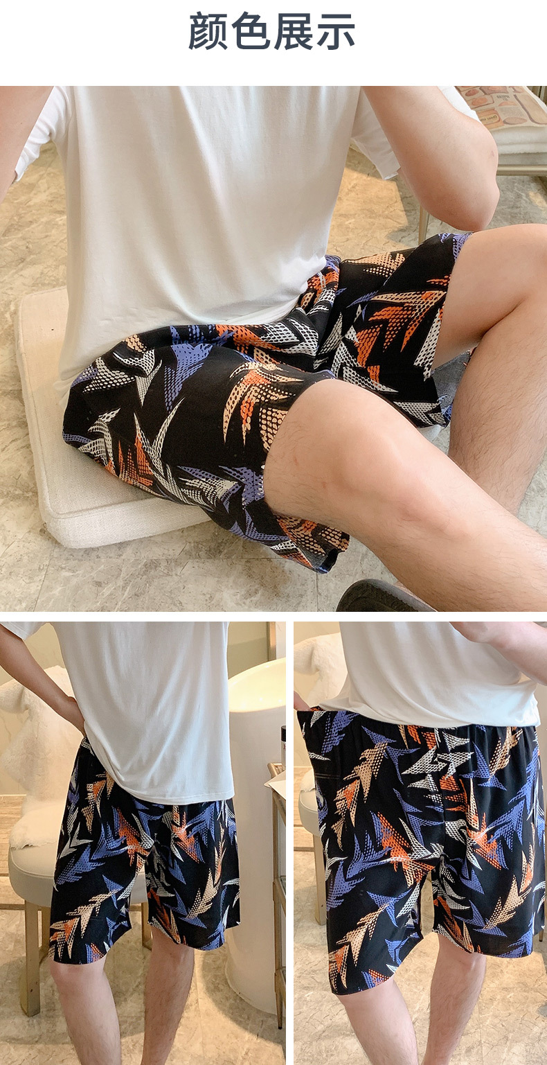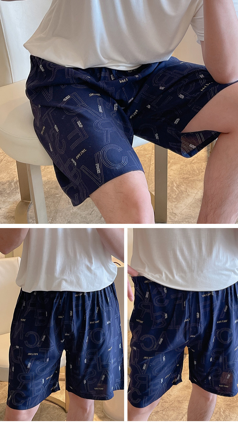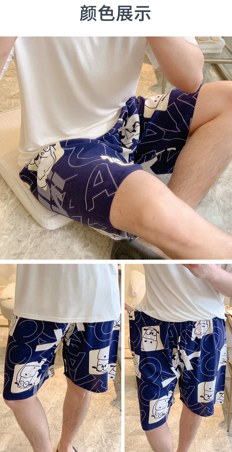 파자마 바지 남성용 코튼 실크 반바지 여름 얇은 홈 바지 느슨한 편지 큰 바지 겉옷 인공 면화 비치 바지