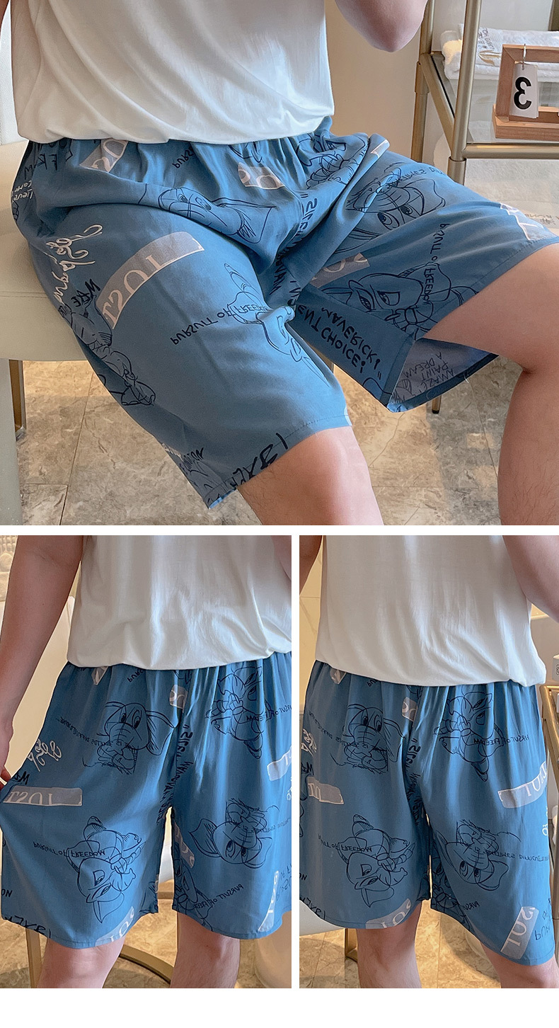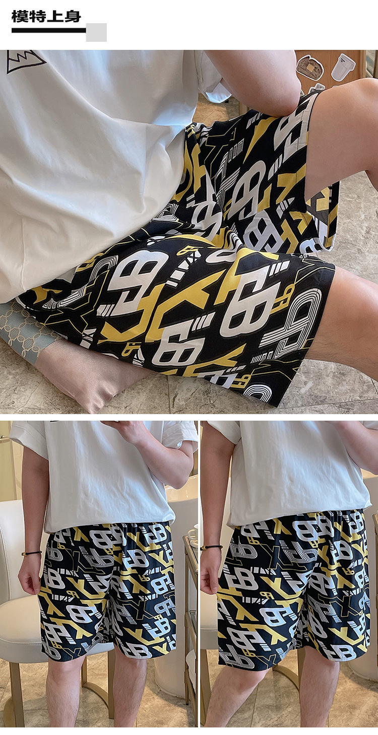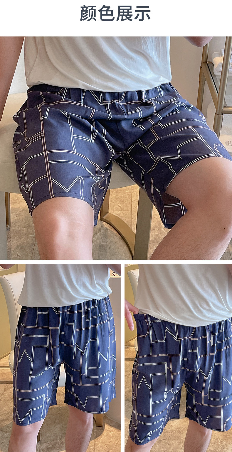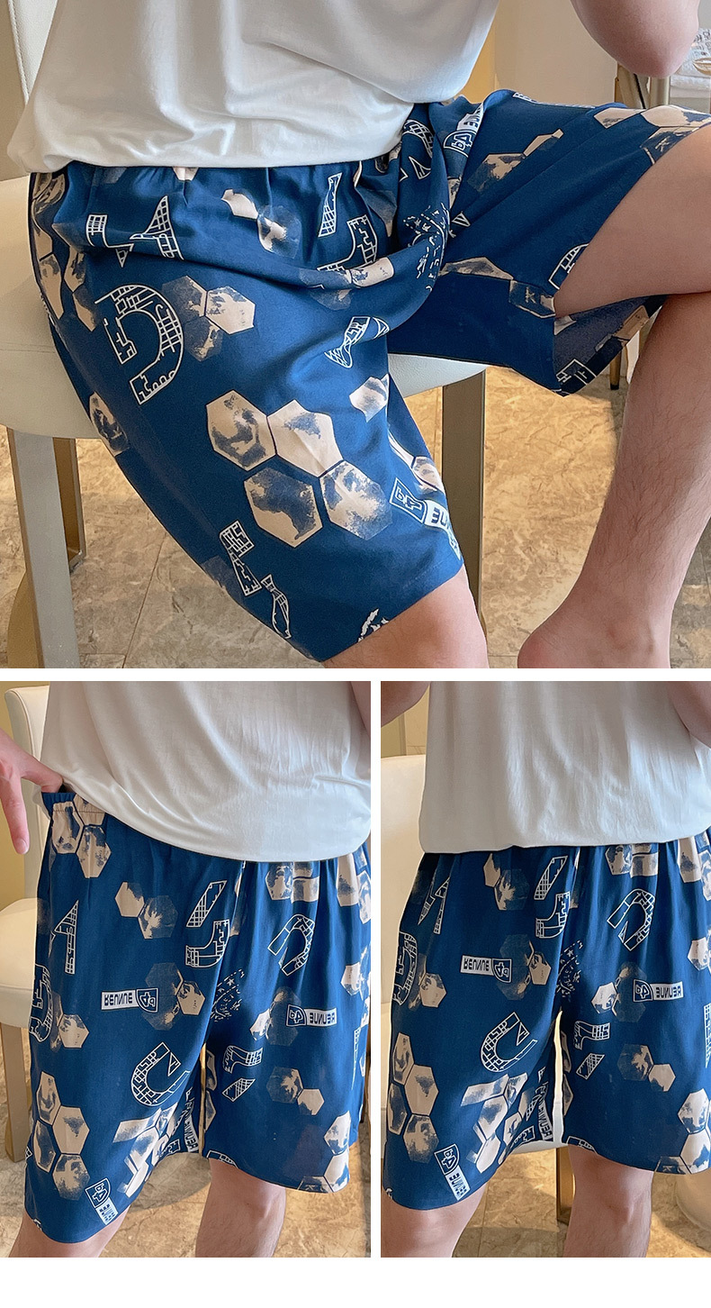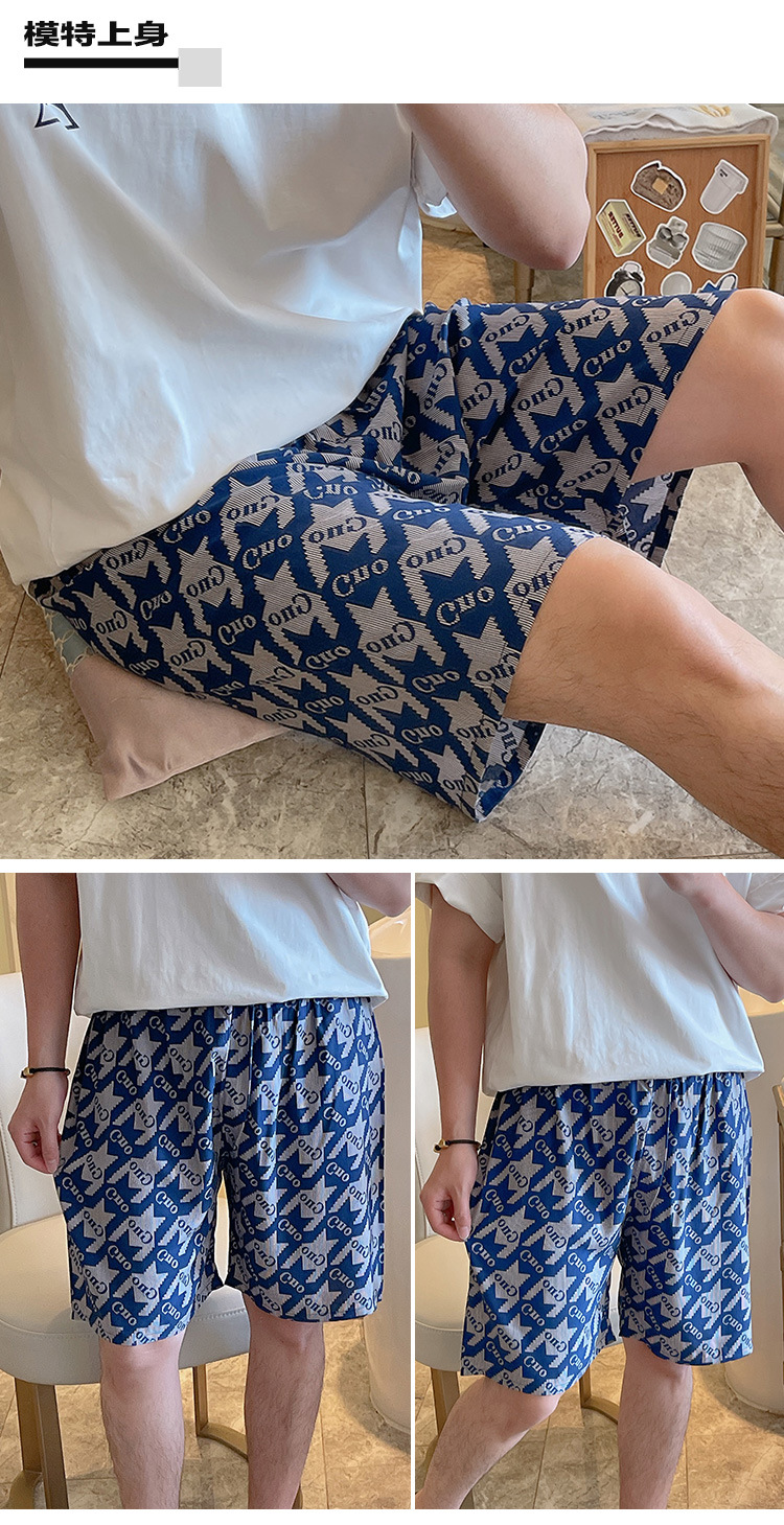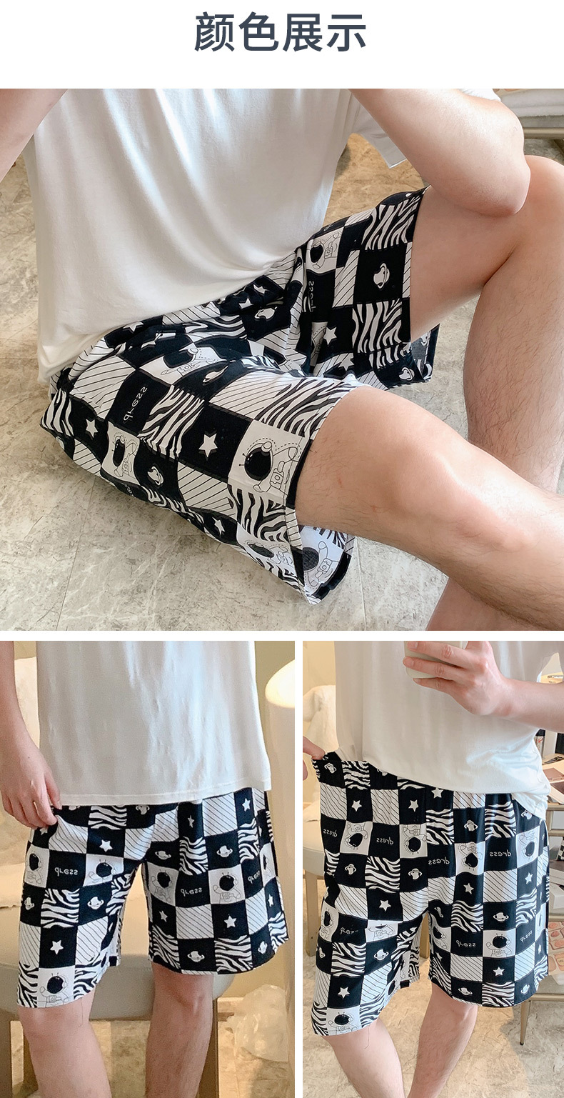 파자마 바지 남성용 코튼 실크 반바지 여름 얇은 홈 바지 느슨한 편지 큰 바지 겉옷 인공 면화 비치 바지