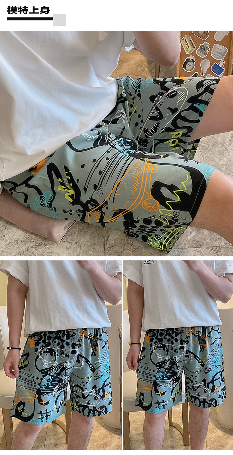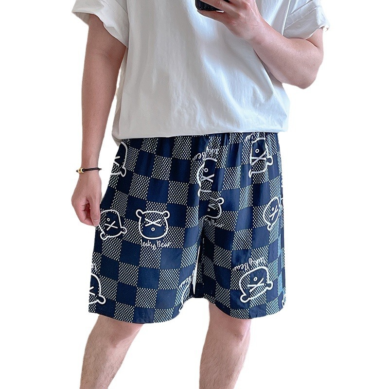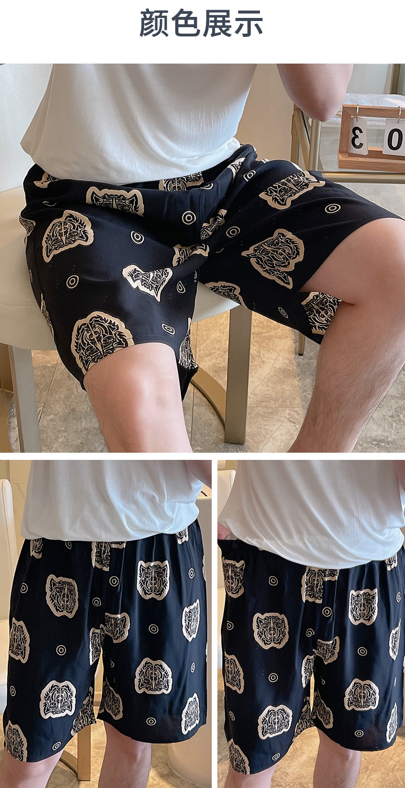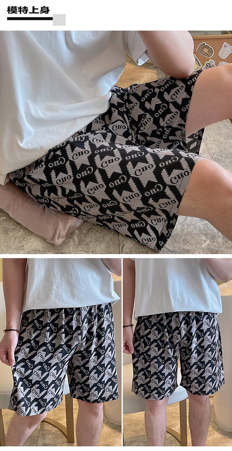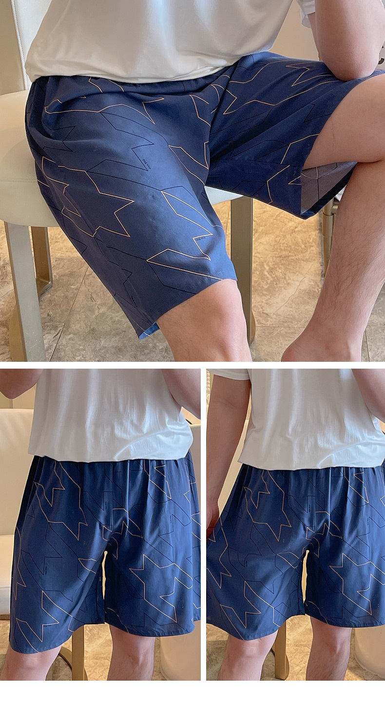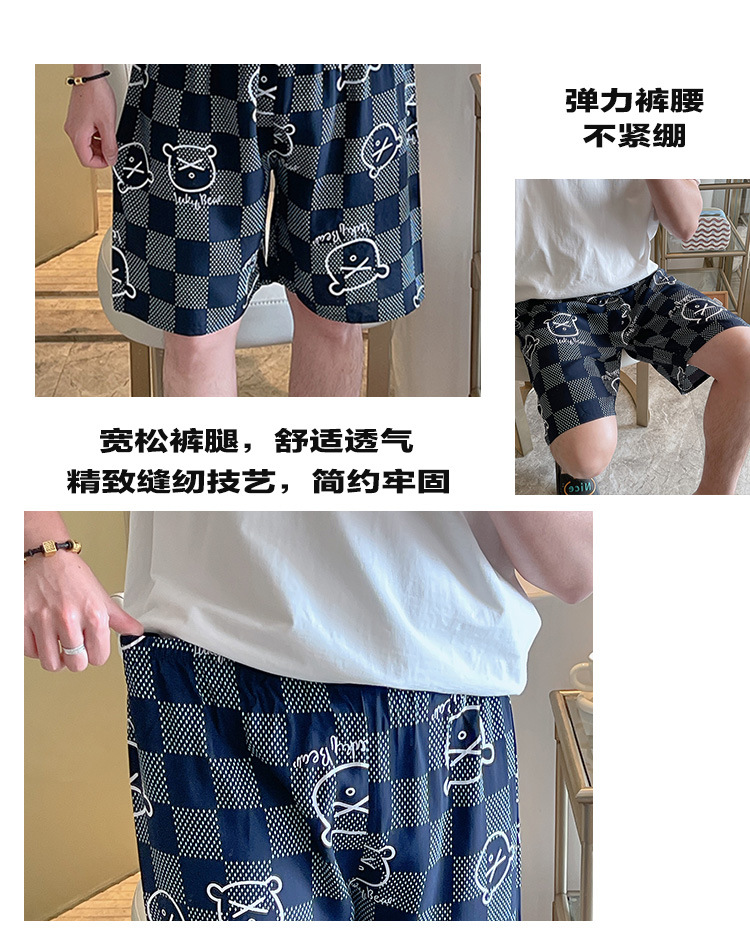 파자마 바지 남성용 코튼 실크 반바지 여름 얇은 홈 바지 느슨한 편지 큰 바지 겉옷 인공 면화 비치 바지