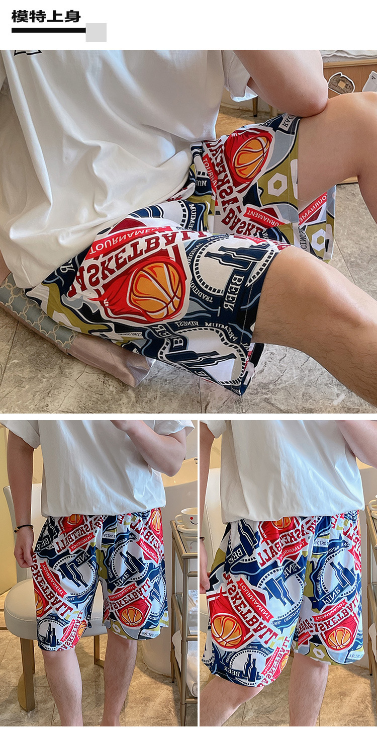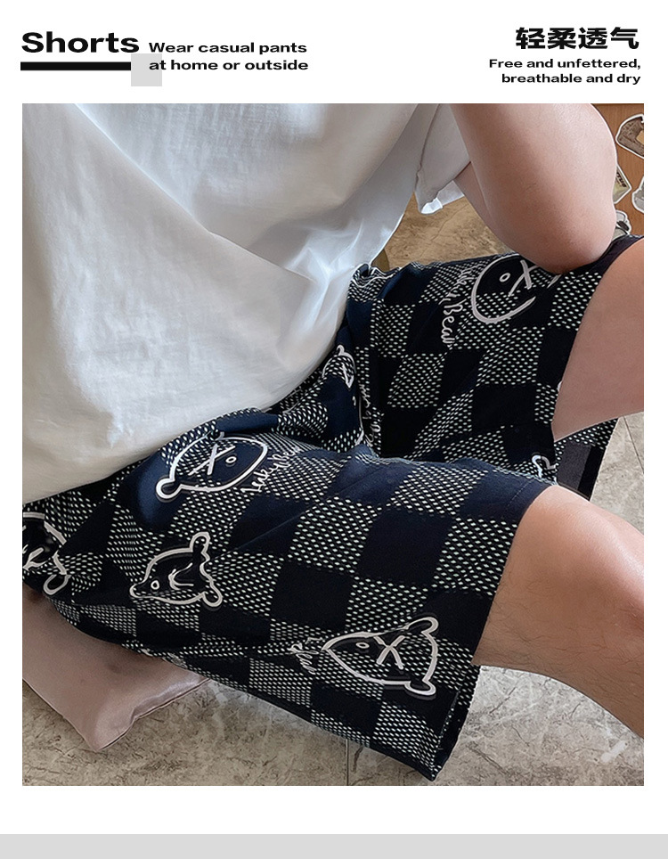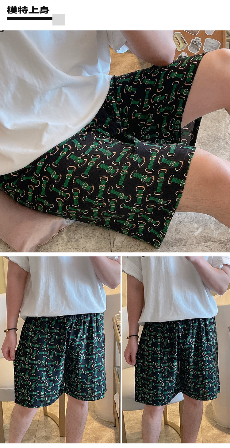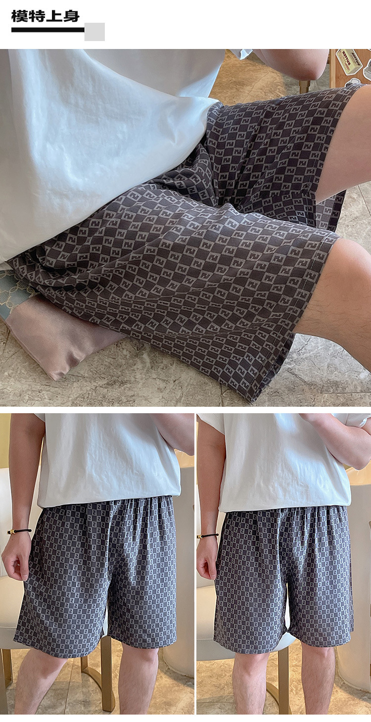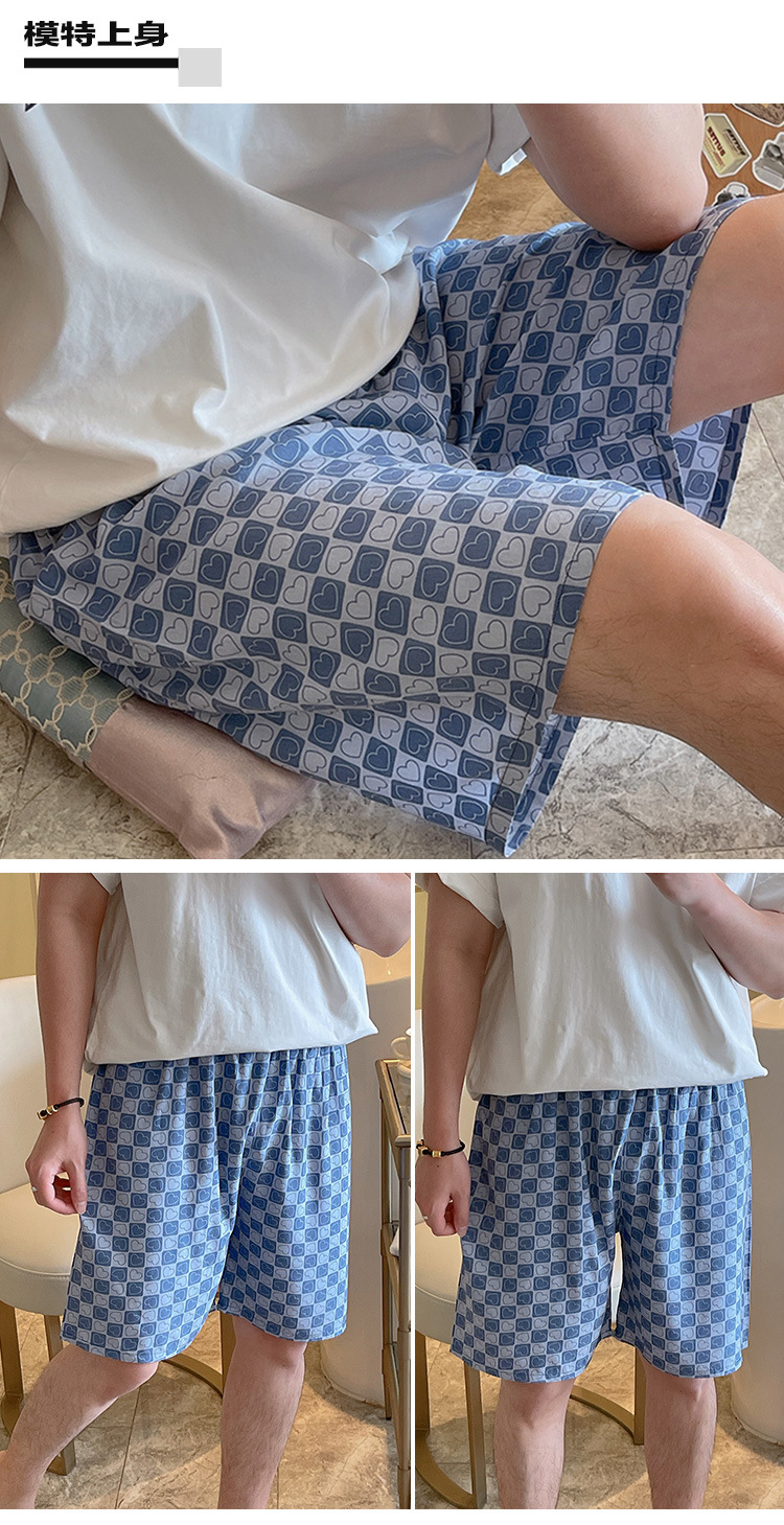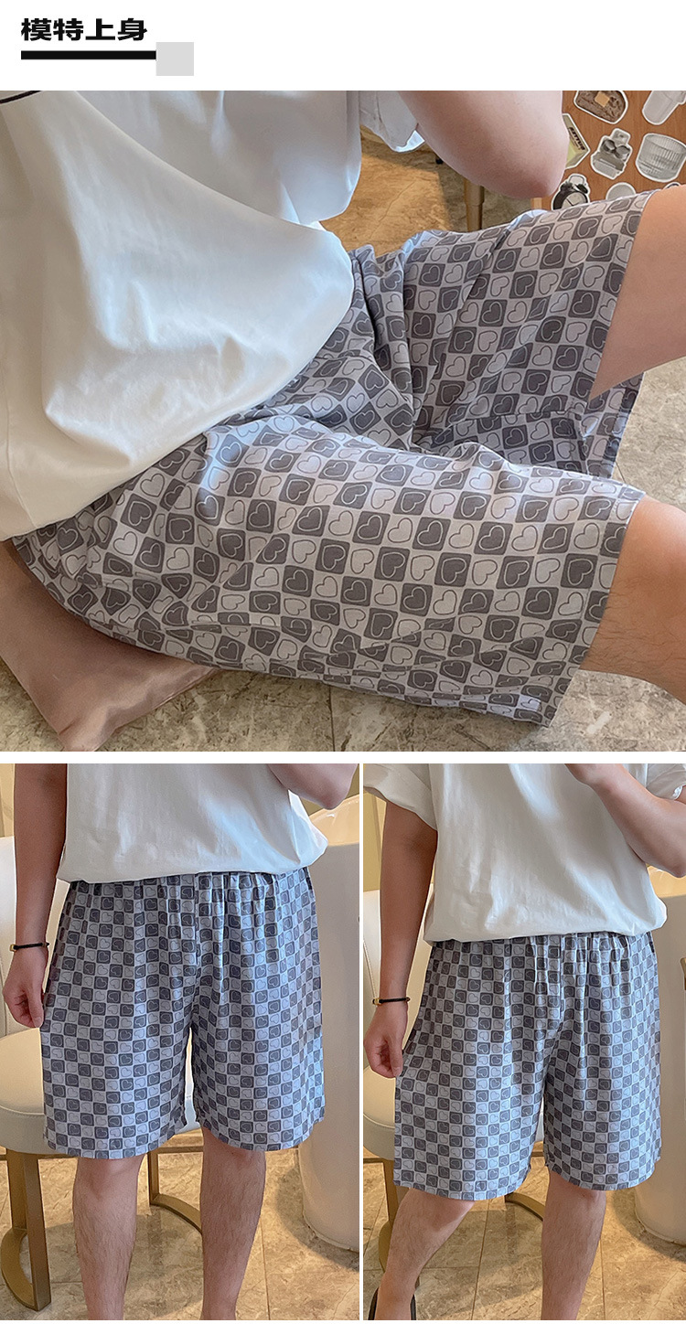 파자마 바지 남성용 코튼 실크 반바지 여름 얇은 홈 바지 느슨한 편지 큰 바지 겉옷 인공 면화 비치 바지