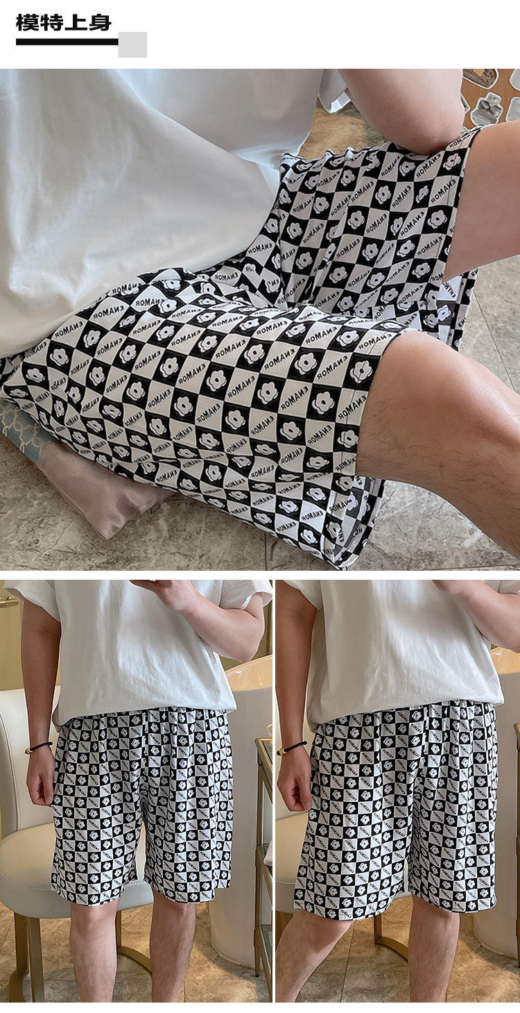 YY 남성 반바지 - 흑백 체크 카멜리아
