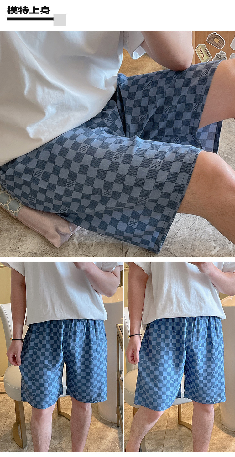 YY 남성 반바지 - 라이트 그레이 체크무늬