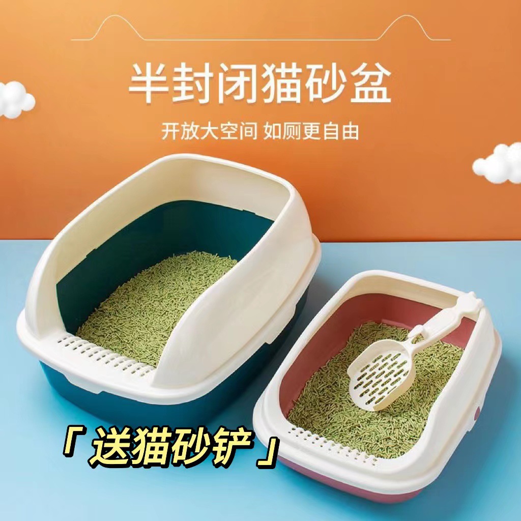고양이 쓰레기 삽 애완 동물 용품 도매로 대형 고양이 쓰레기 상자 대형 반 폐쇄 두꺼운 고양이 화장실 안티 스플래시
