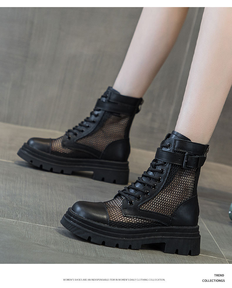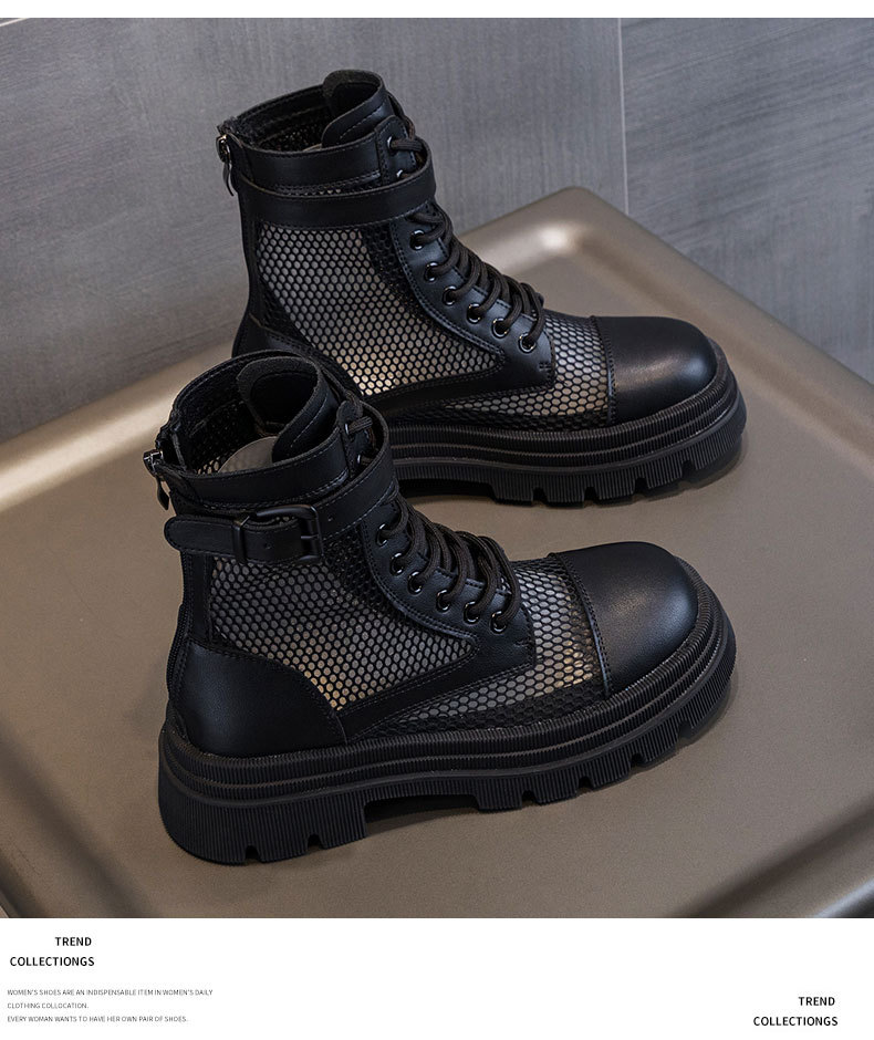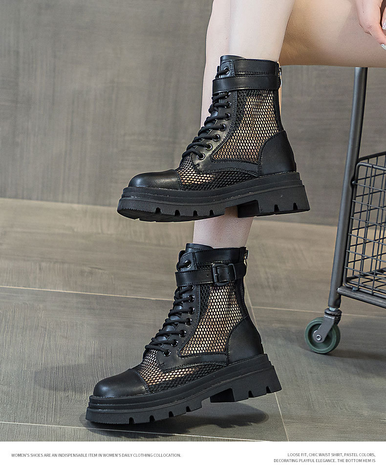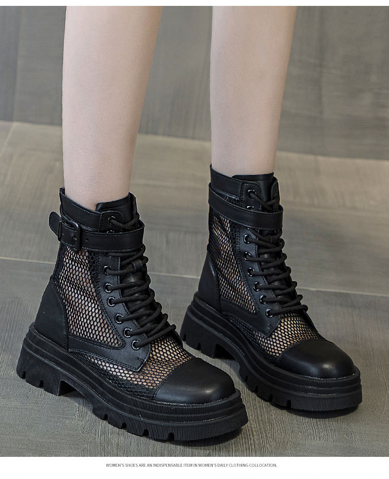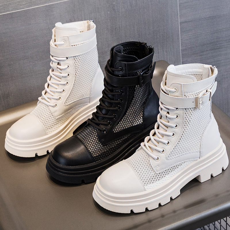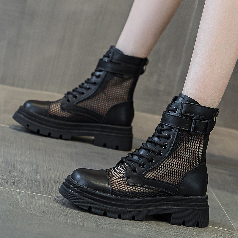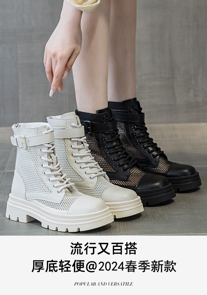 재고 두꺼운 밑창 마틴 부츠 여자 2024 년 여름 새 스타일 메쉬 통기성 쇼트 부츠 여자 올매치 두꺼운 힐 미드 배럴 얇은 부츠