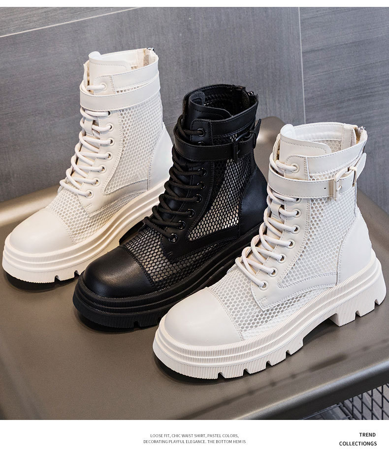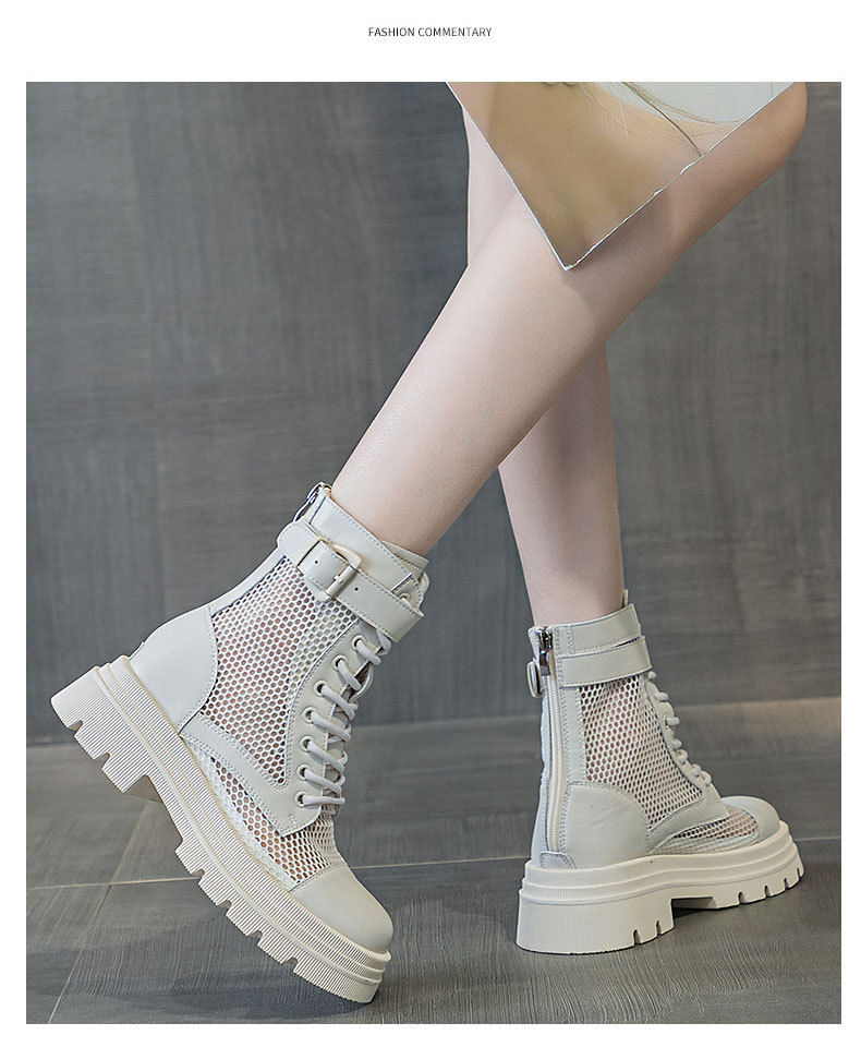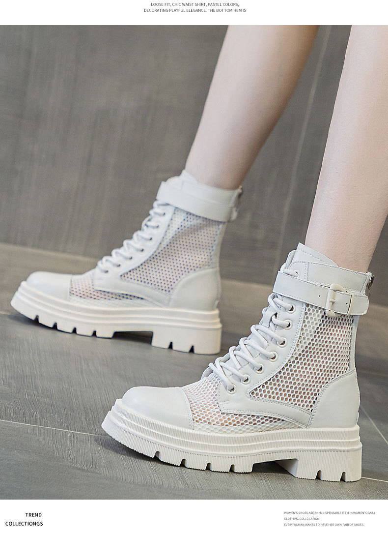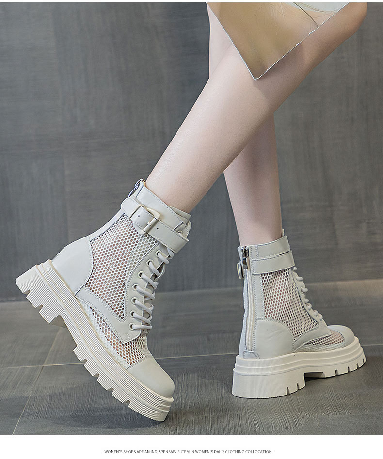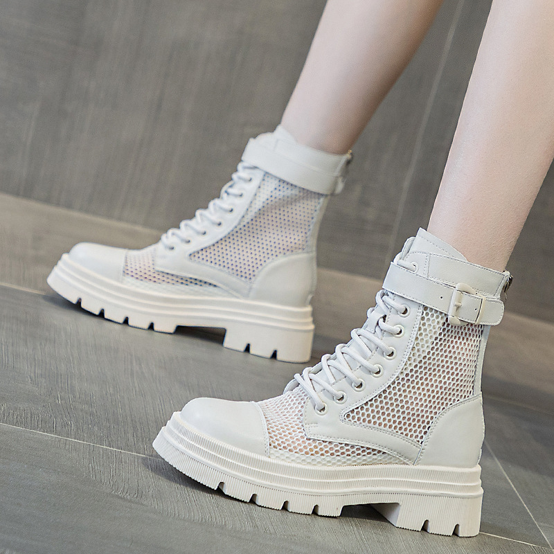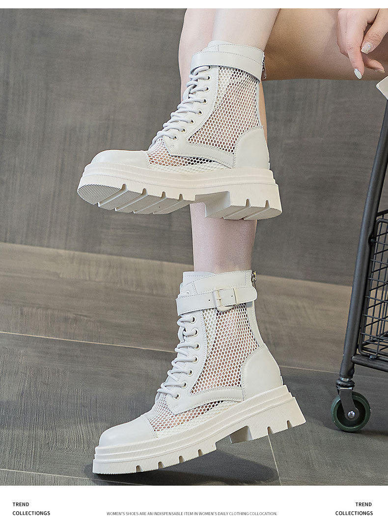 재고 두꺼운 밑창 마틴 부츠 여자 2024 년 여름 새 스타일 메쉬 통기성 쇼트 부츠 여자 올매치 두꺼운 힐 미드 배럴 얇은 부츠