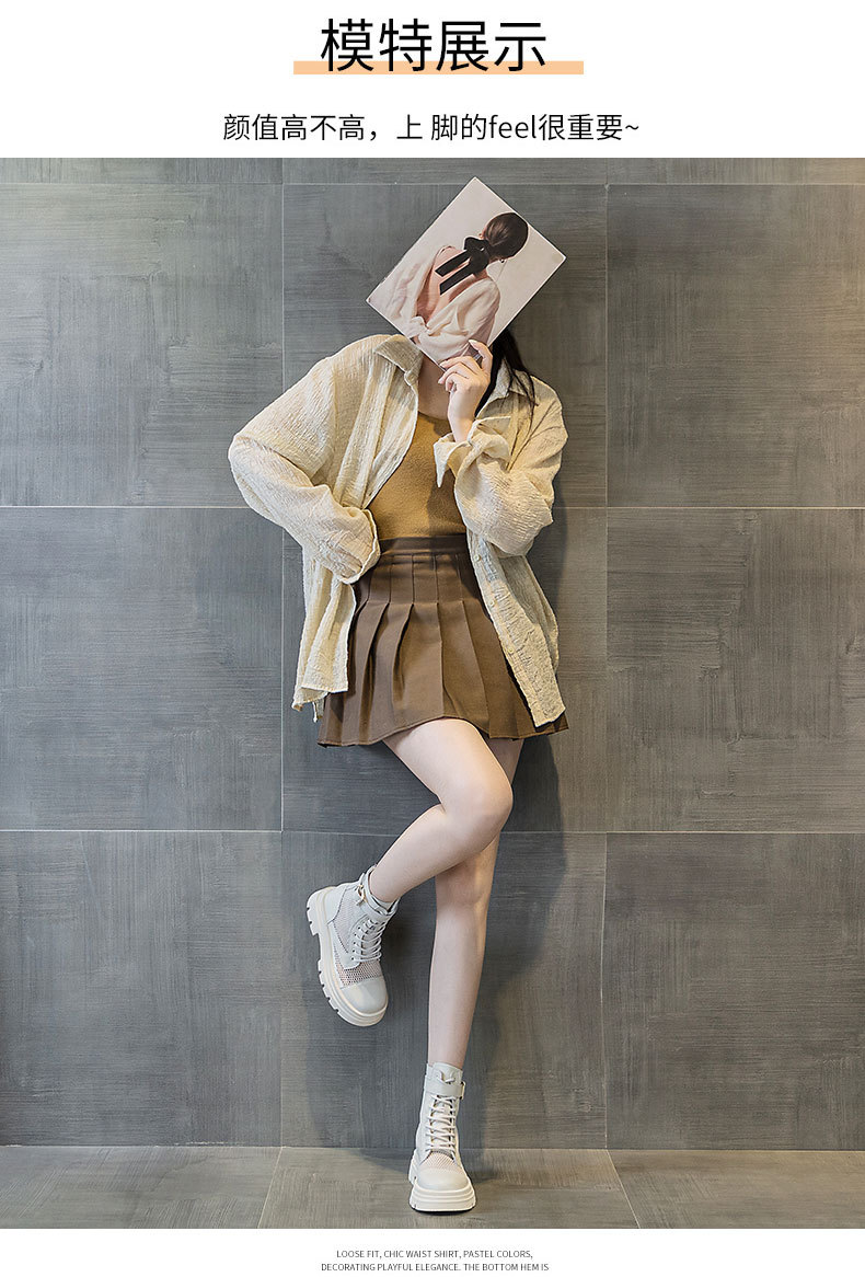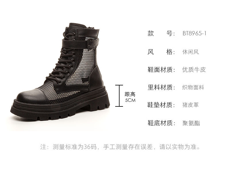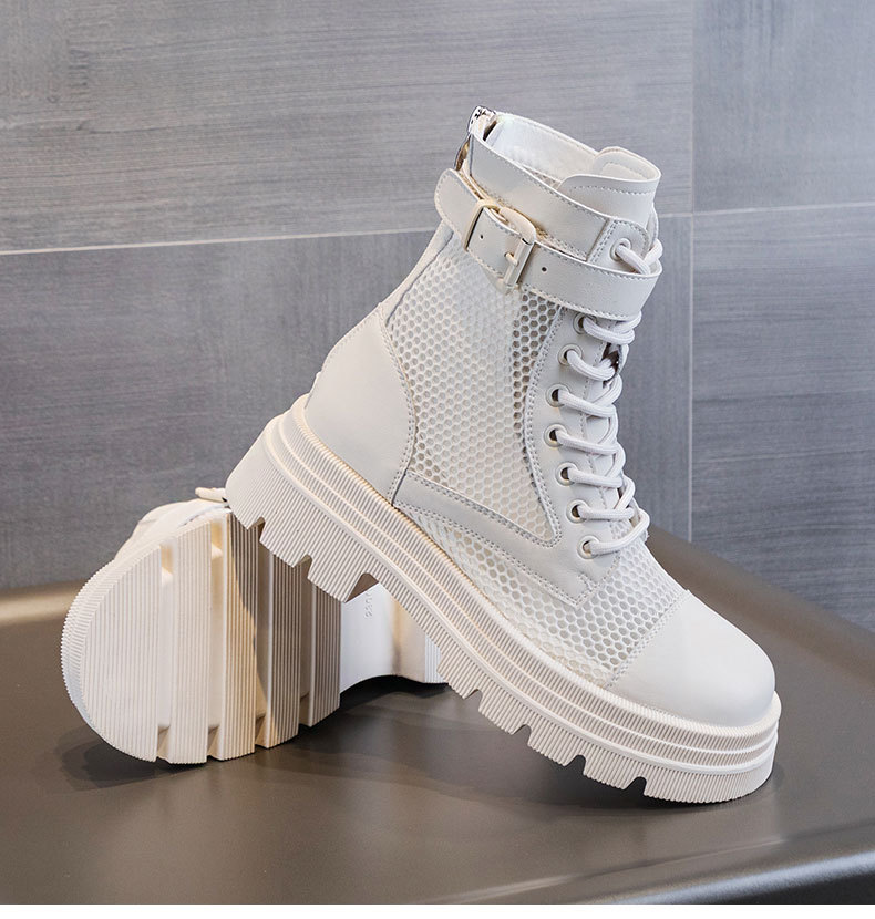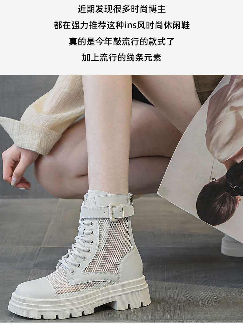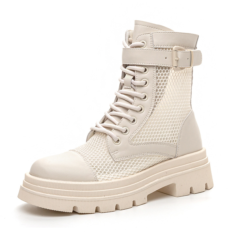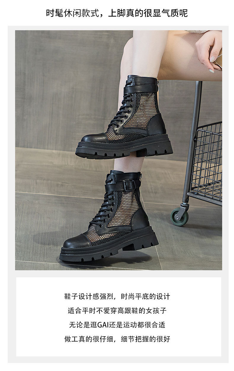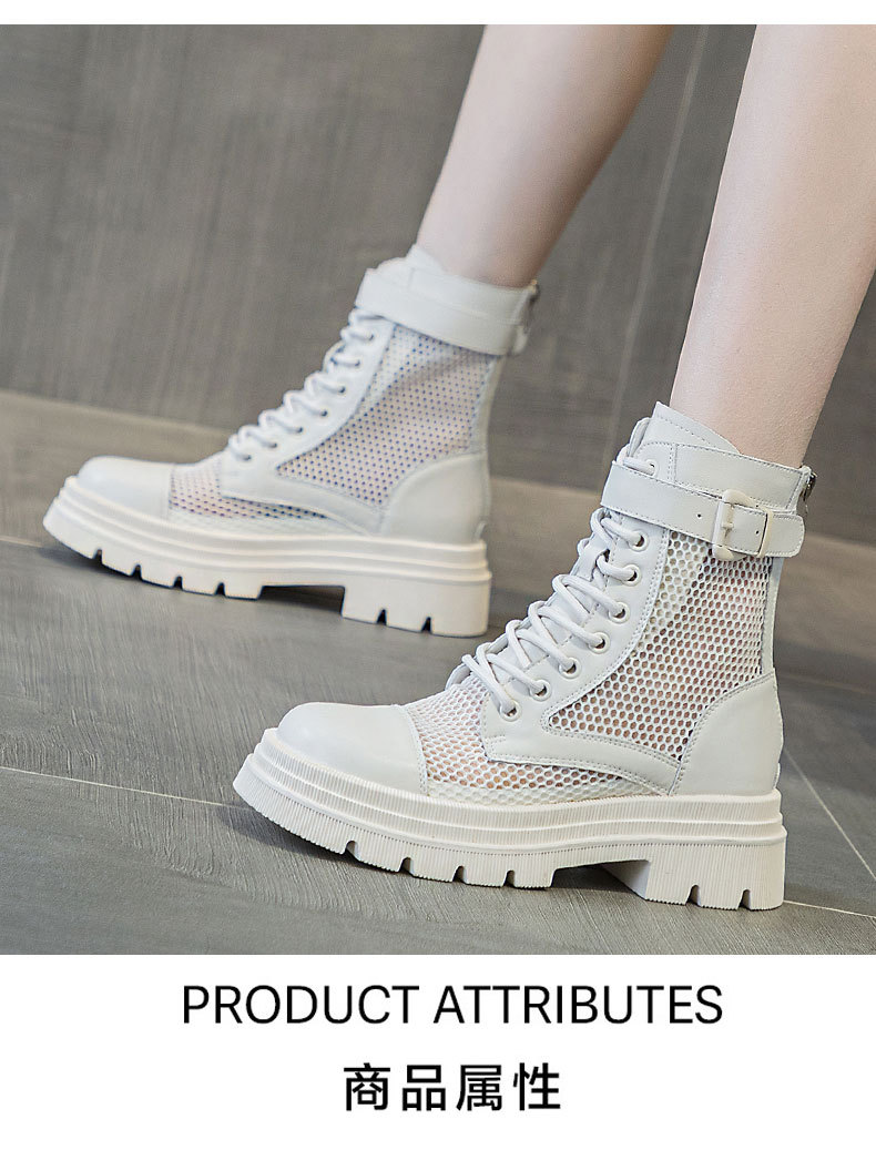 재고 두꺼운 밑창 마틴 부츠 여자 2024 년 여름 새 스타일 메쉬 통기성 쇼트 부츠 여자 올매치 두꺼운 힐 미드 배럴 얇은 부츠