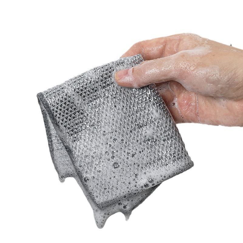 스틸 와이어 식기 세척 천 플래그십 스토어 오일 프리 스틸 와이어 볼 식기 주방 특수 청소 천 양면 실버 실크 모조 강철 실크