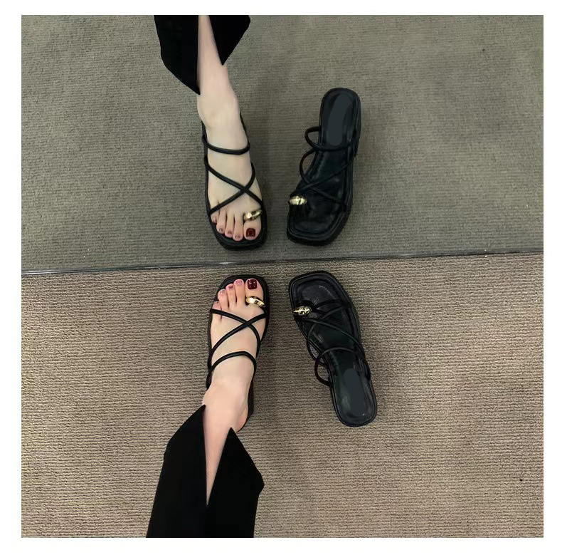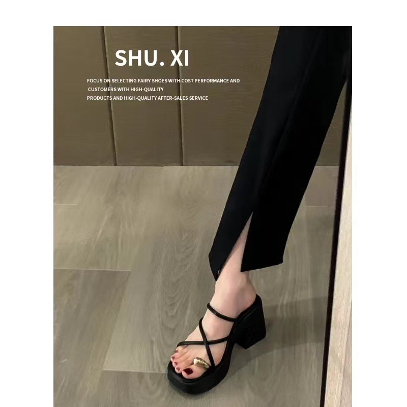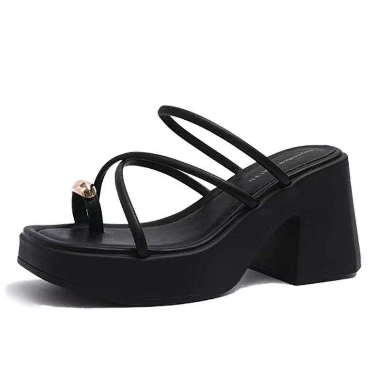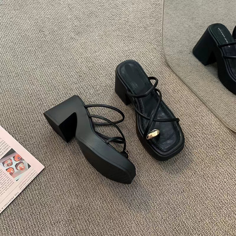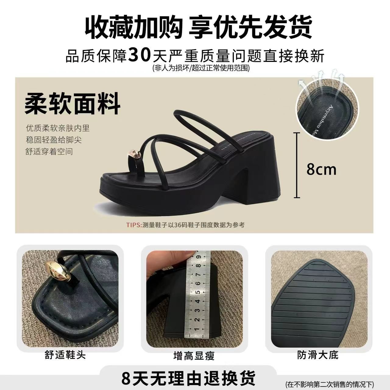 두꺼운 밑창 슬리퍼 여성의 여름 착용 2024 새로운 하이 엔드 느낌 프랑스 아름다운 청키 힐 고조 작은 발 뒤꿈치 샌들