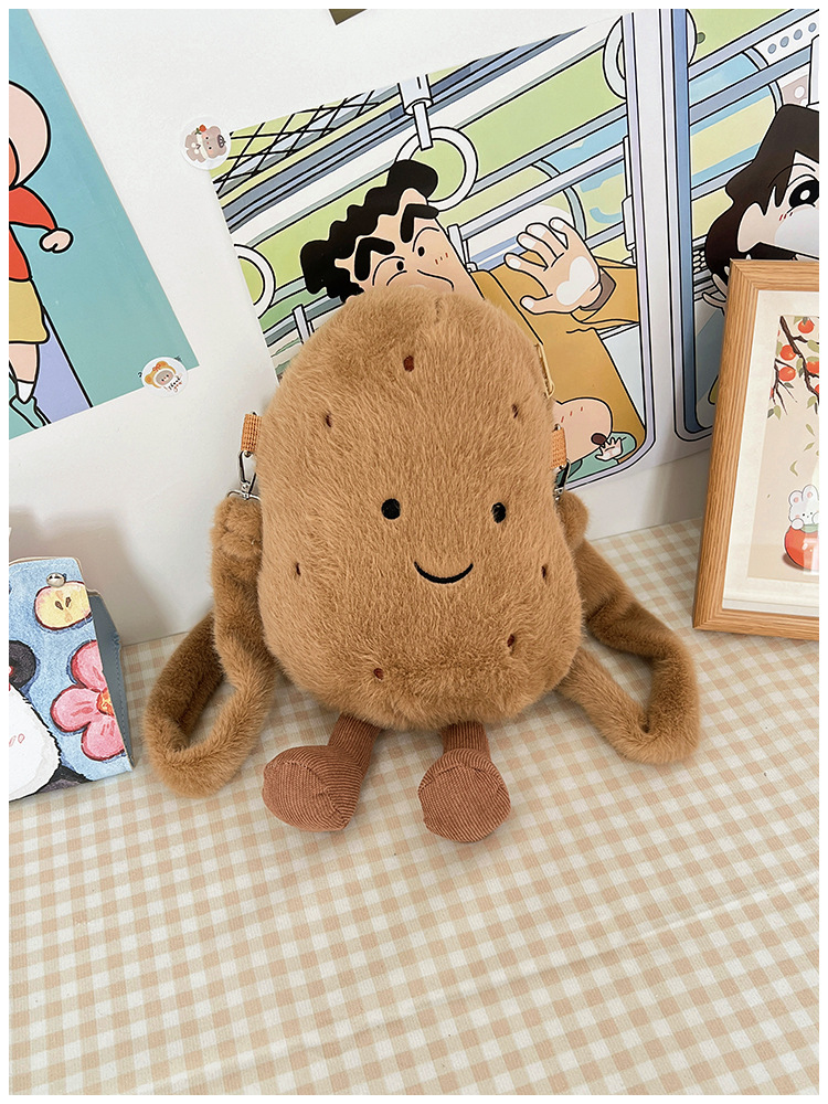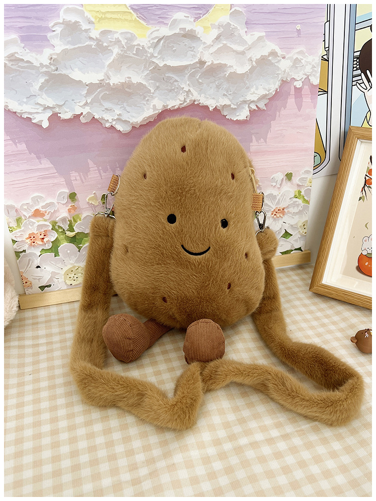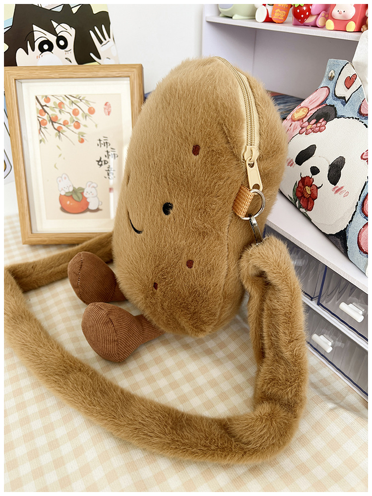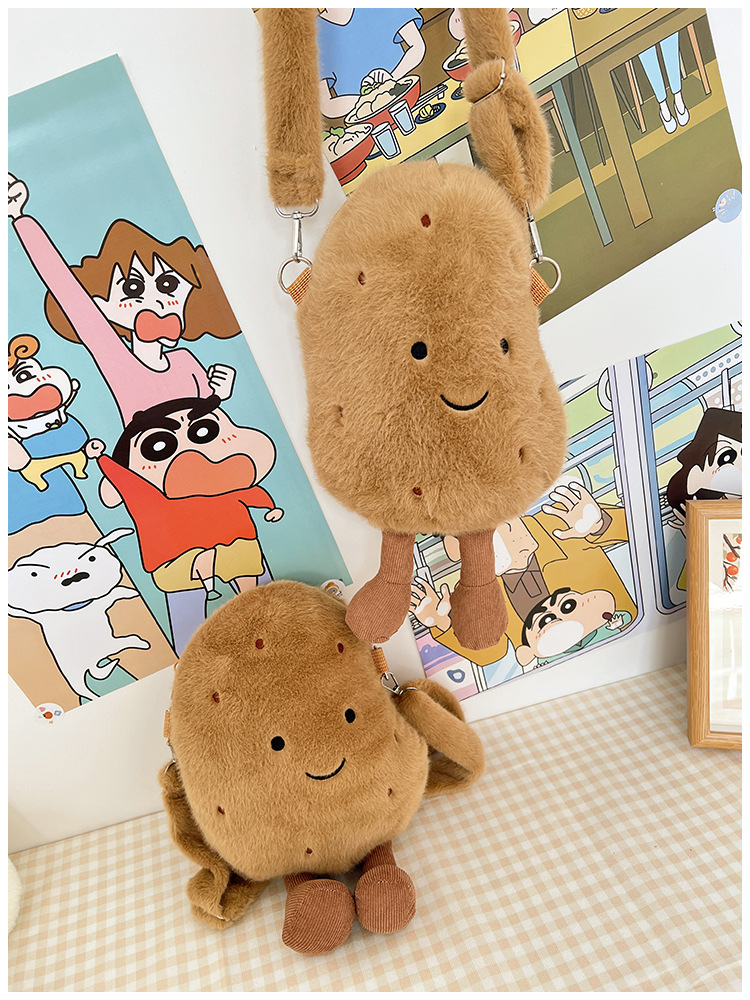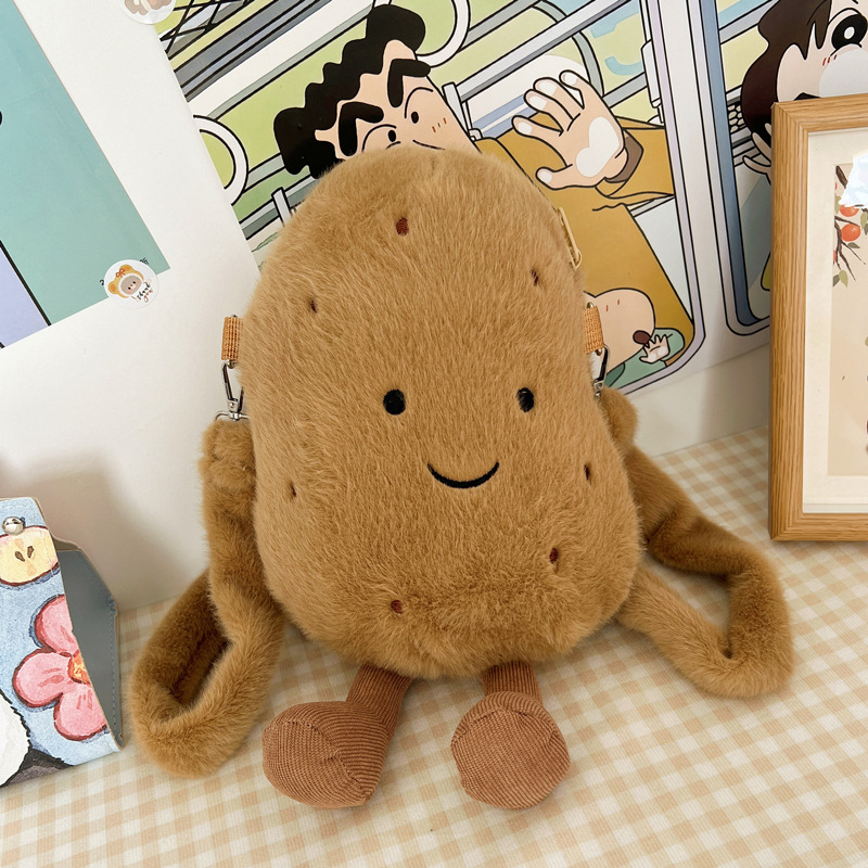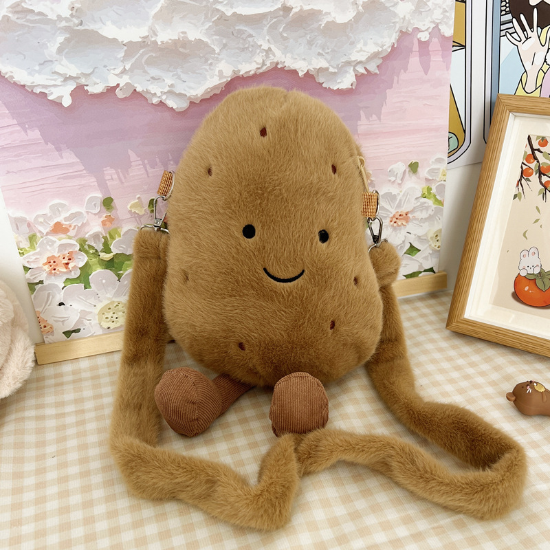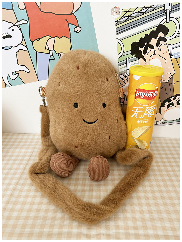 2024 새로운 귀여운 작은 감자 크로스 백 만화 봉제 인형 어깨 가방 인형 동전 지갑 생일 선물
